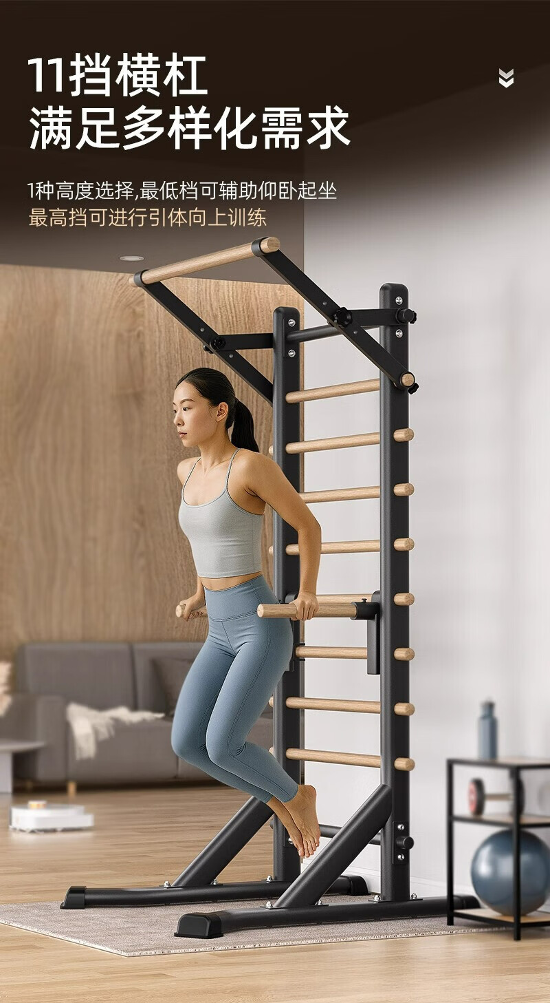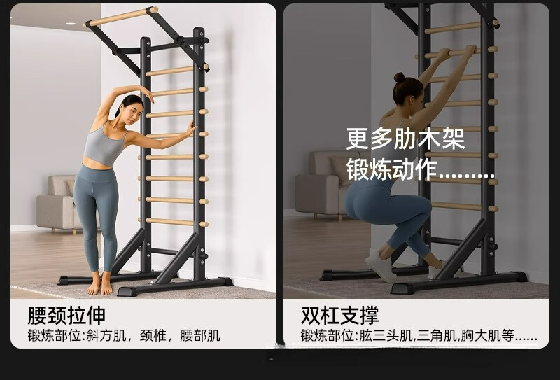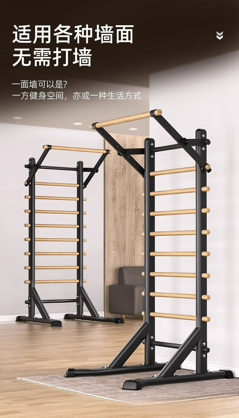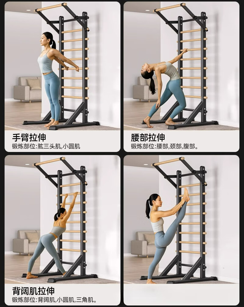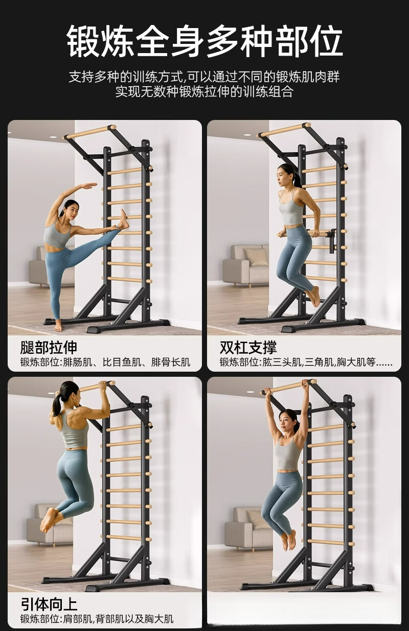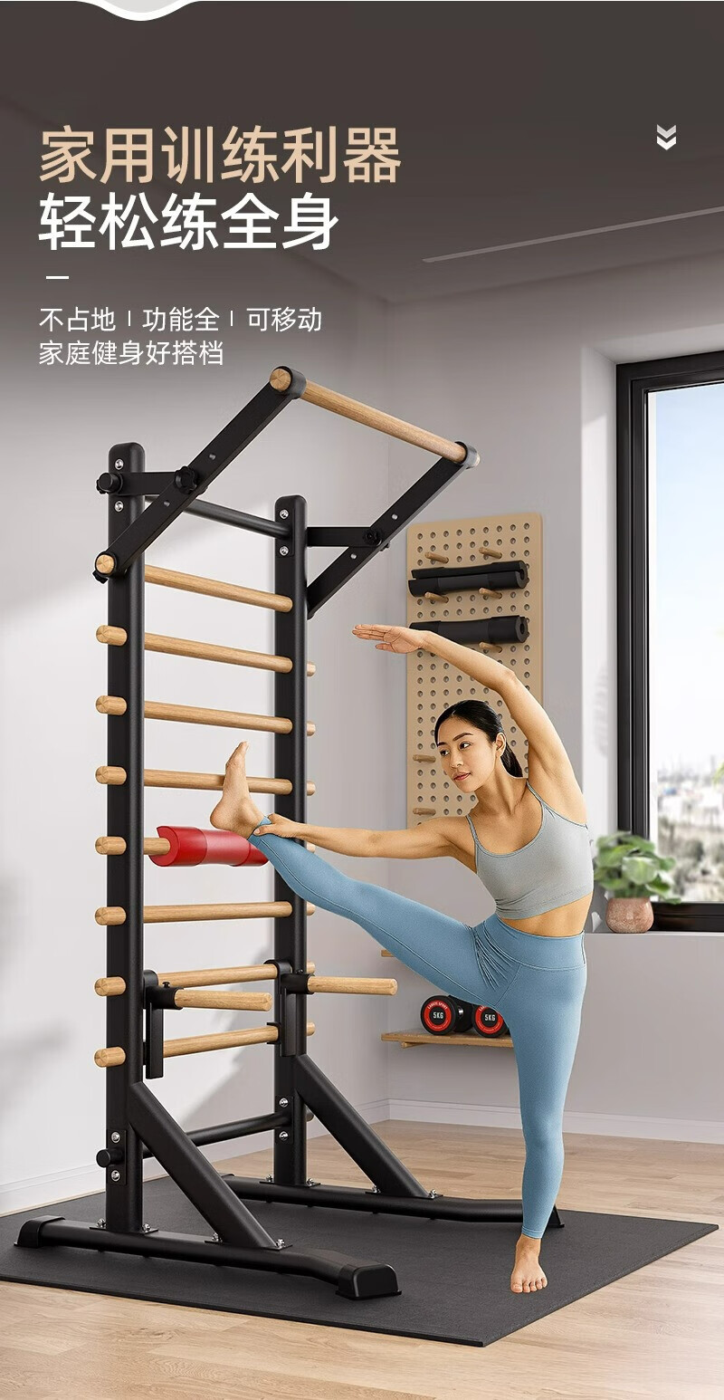 Self-traveling human rib wood frame integrated trainer indoor punch-free household fitness equipment pull-up device dance leg press stretching bag upstairs milk white household horizontal bar + adjustable parallel bars
