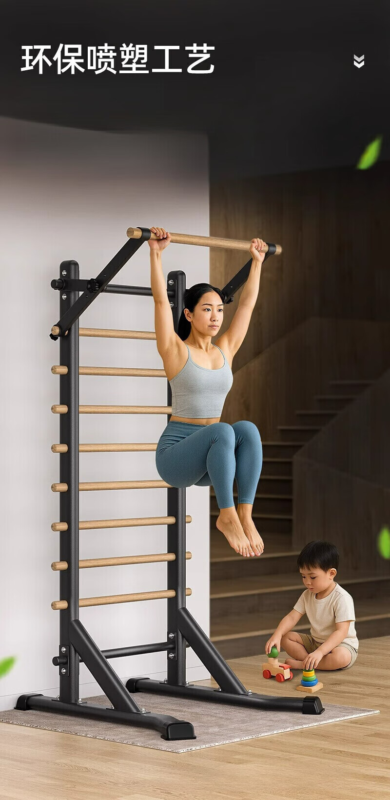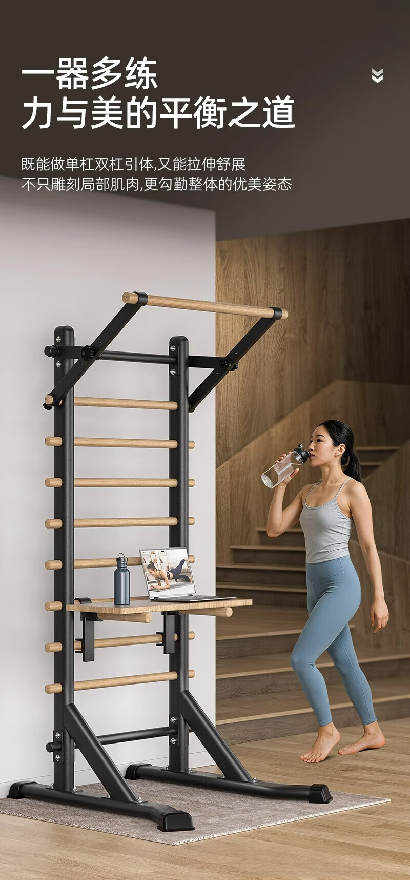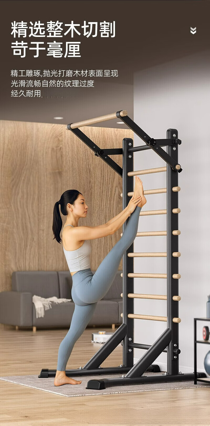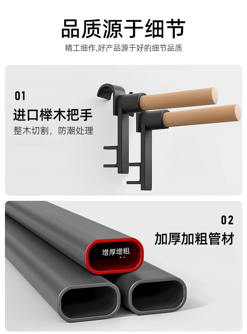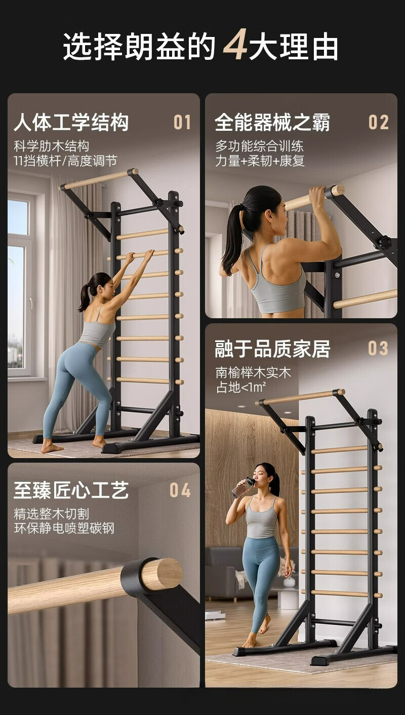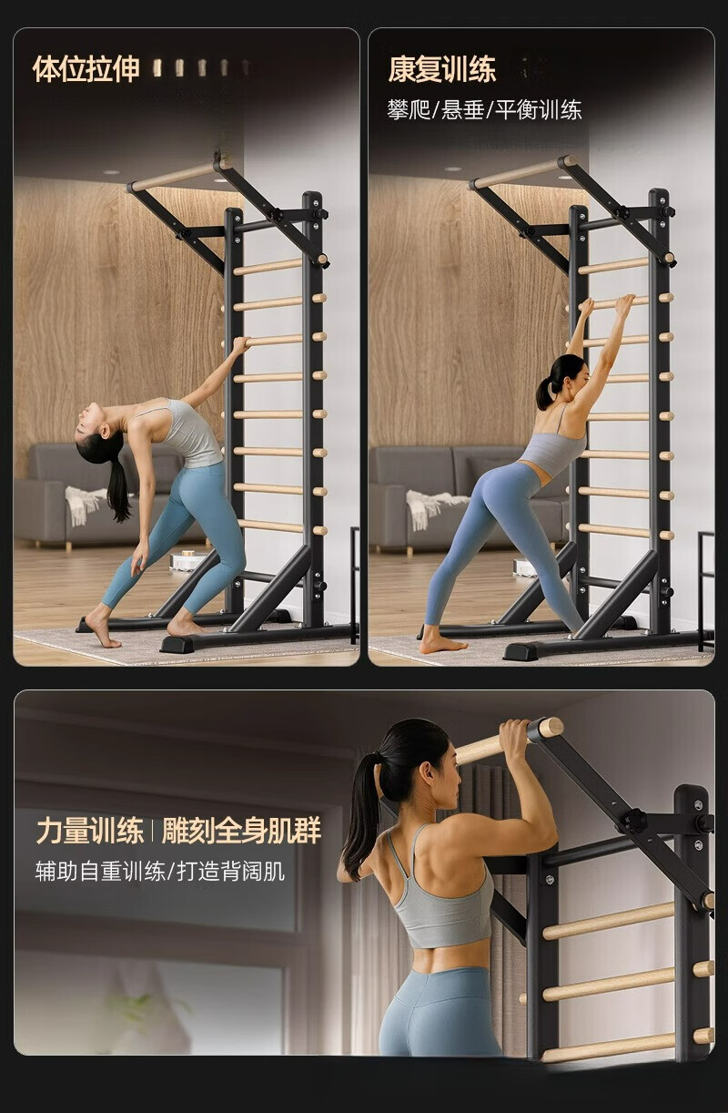 Self-traveling human rib wood frame integrated trainer indoor punch-free household fitness equipment pull-up device dance leg press stretching bag upstairs milk white household horizontal bar + adjustable parallel bars