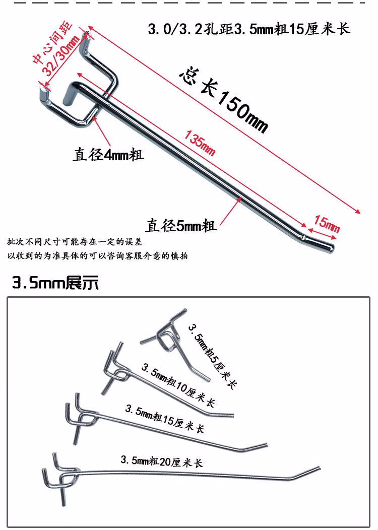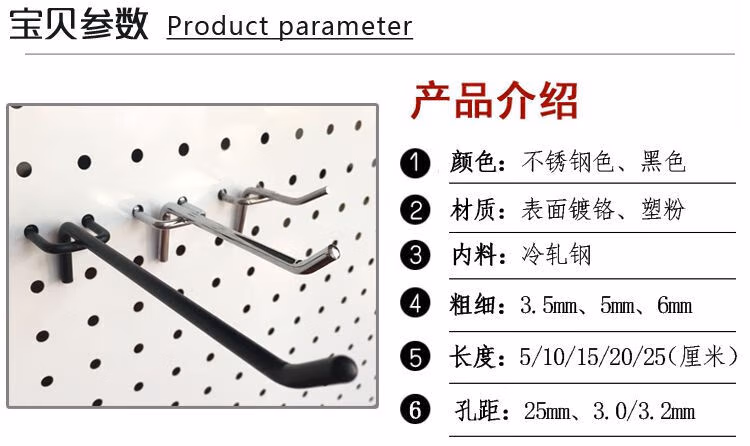 Perforated board hooks, shelf hooks, perforated board hooks, supermarket shelves, round hole trinkets for hanging snacks, display 2.5, 3.2 or 3.0 hole spacing required. Contact customer service for remarks.