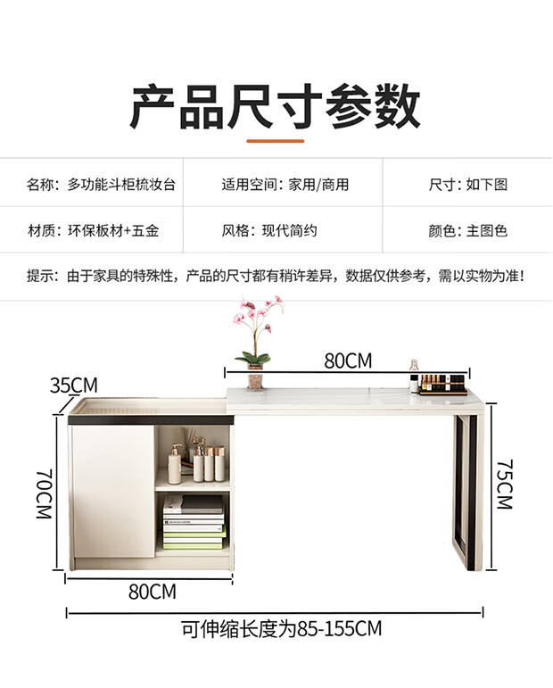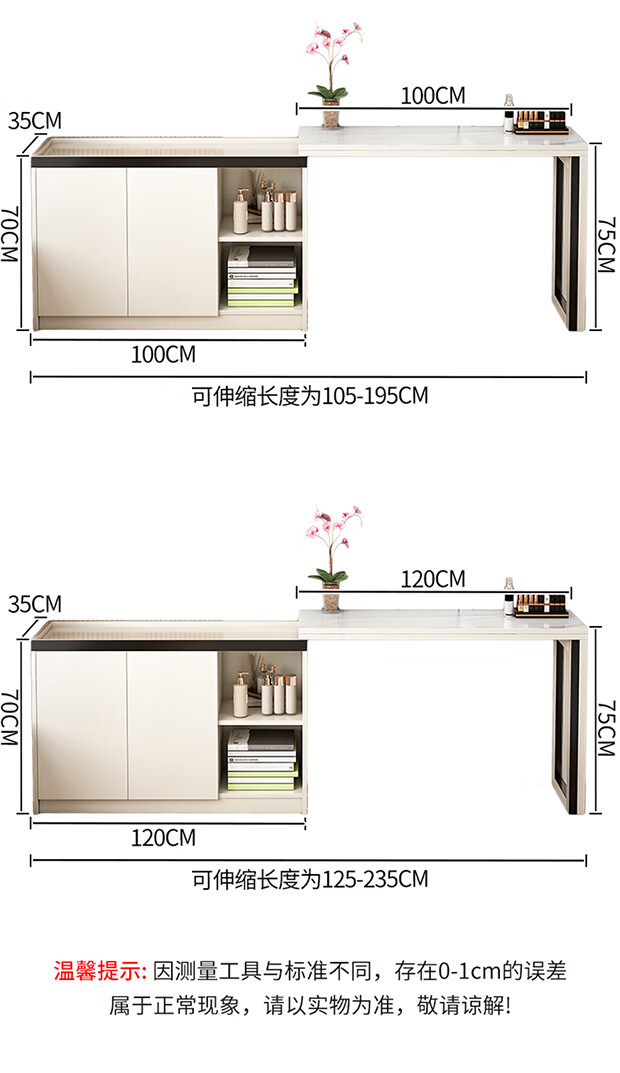 Gujia retractable desk Nordic dining table and sideboard integrated home small apartment space saving two white 80*35*75