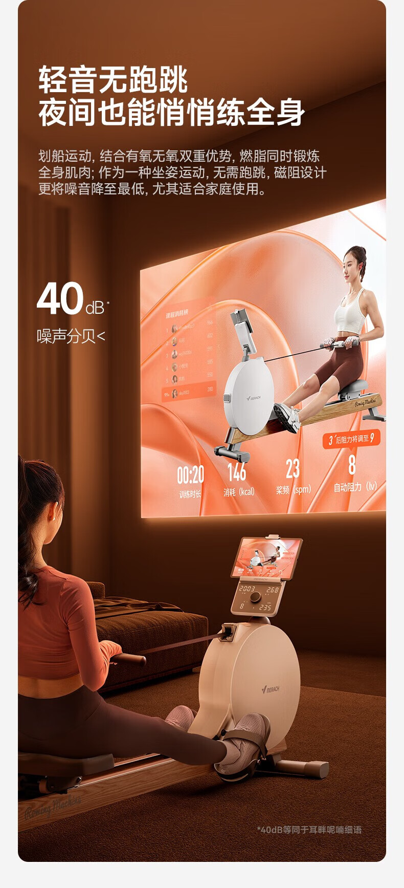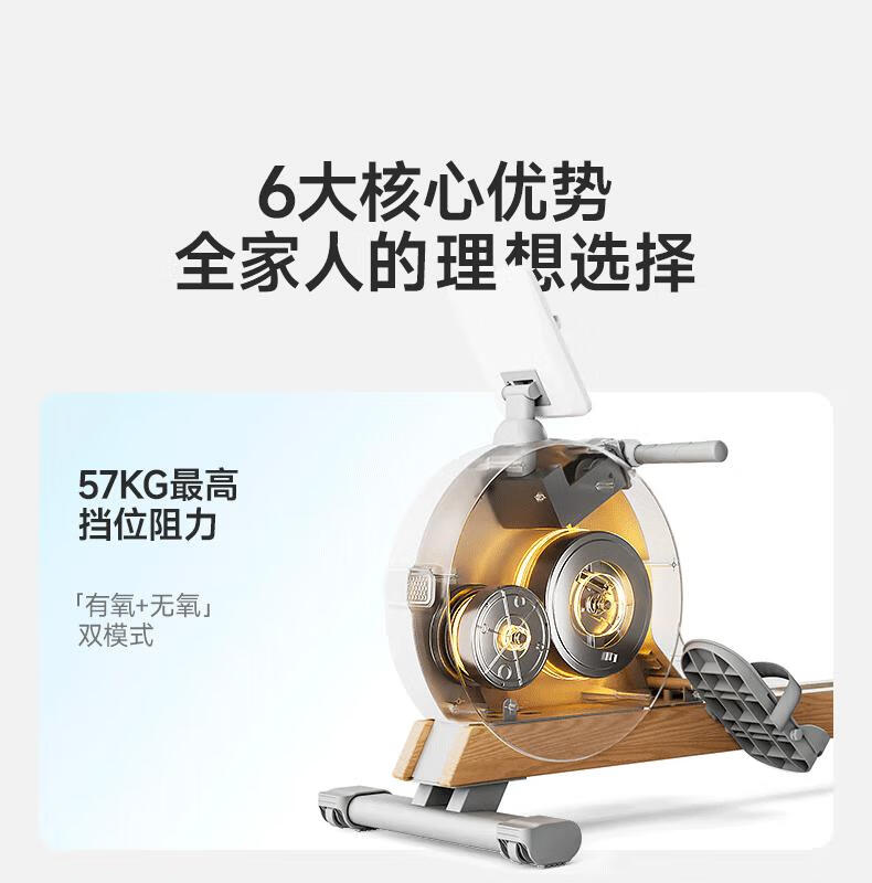 Merrick* Painting Rowing Machine Home Magnetic Resistance Silent Super Fat-Burning Fitness Equipment Comprehensive Trainer Small Boat Sliding Q3 Upgraded Solid Wood Self-Generating Model Four-Window Display