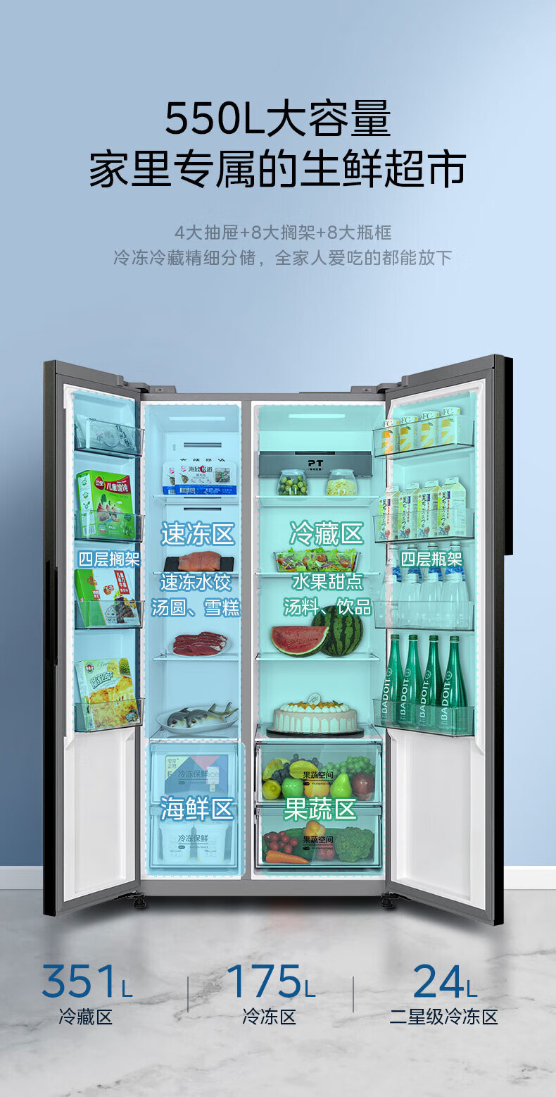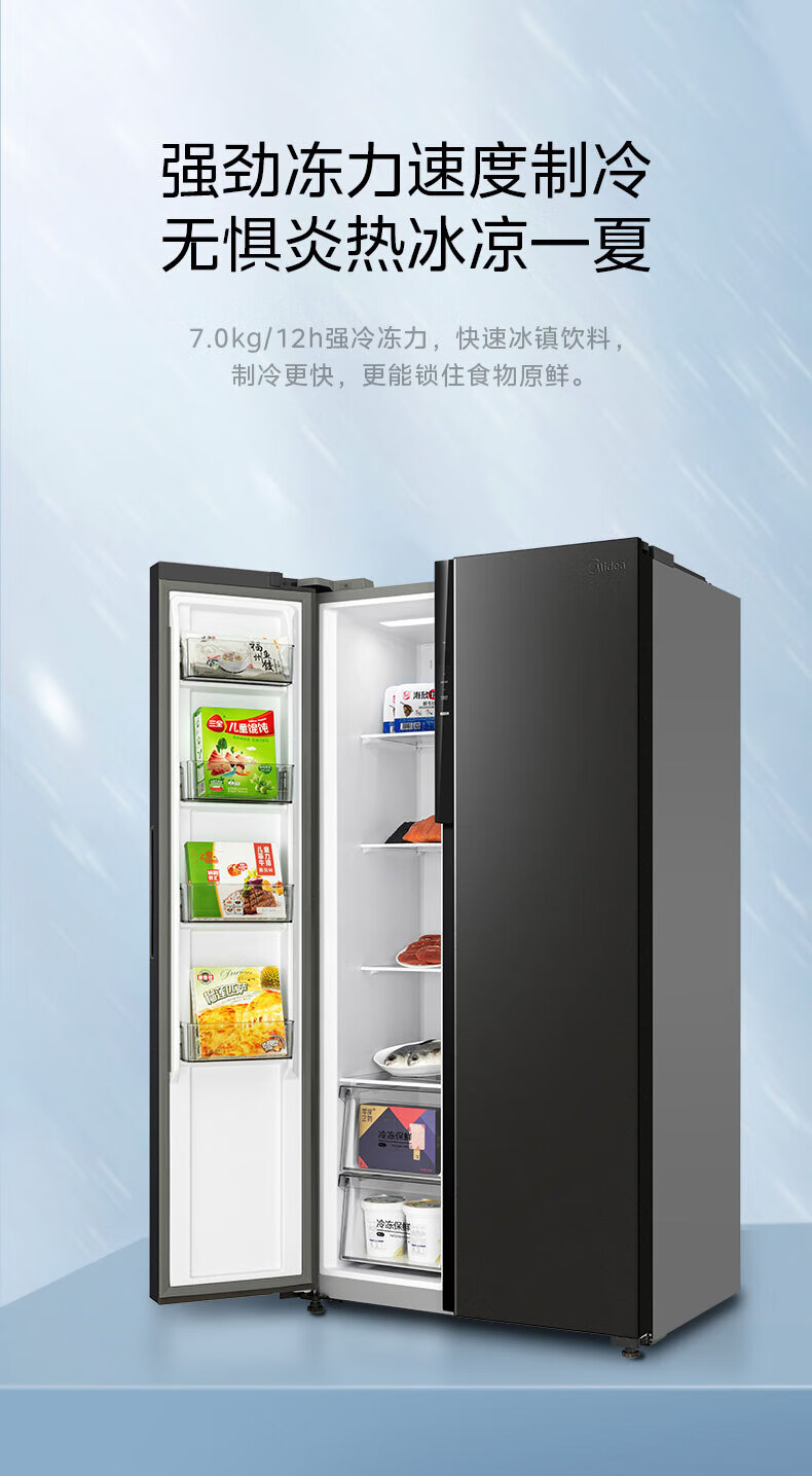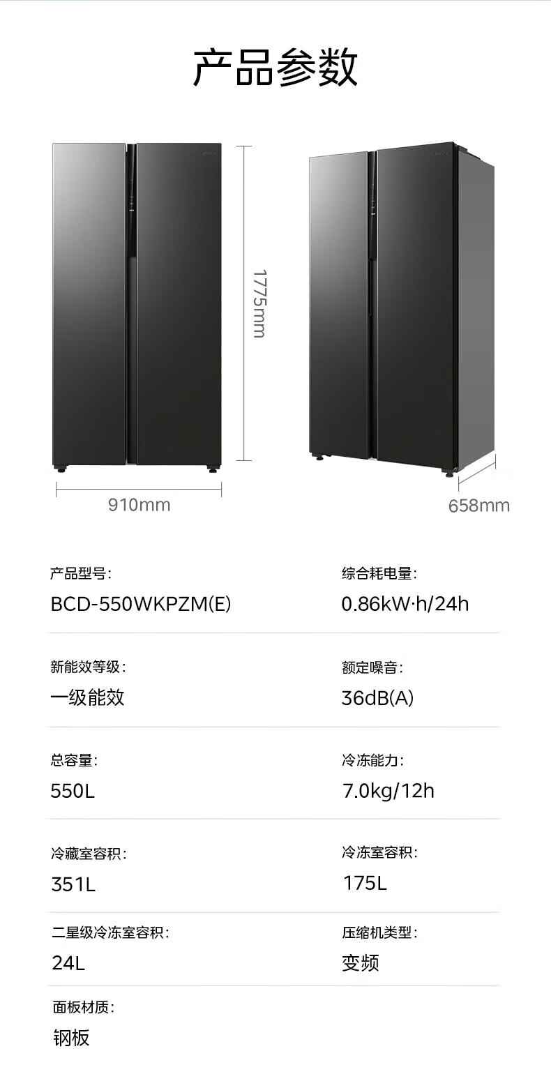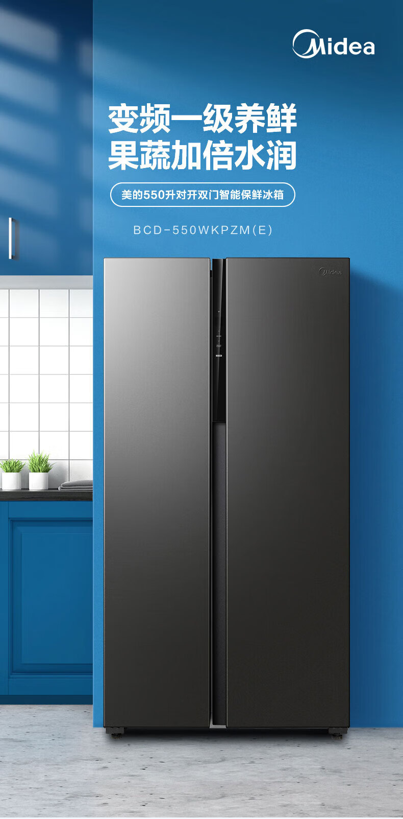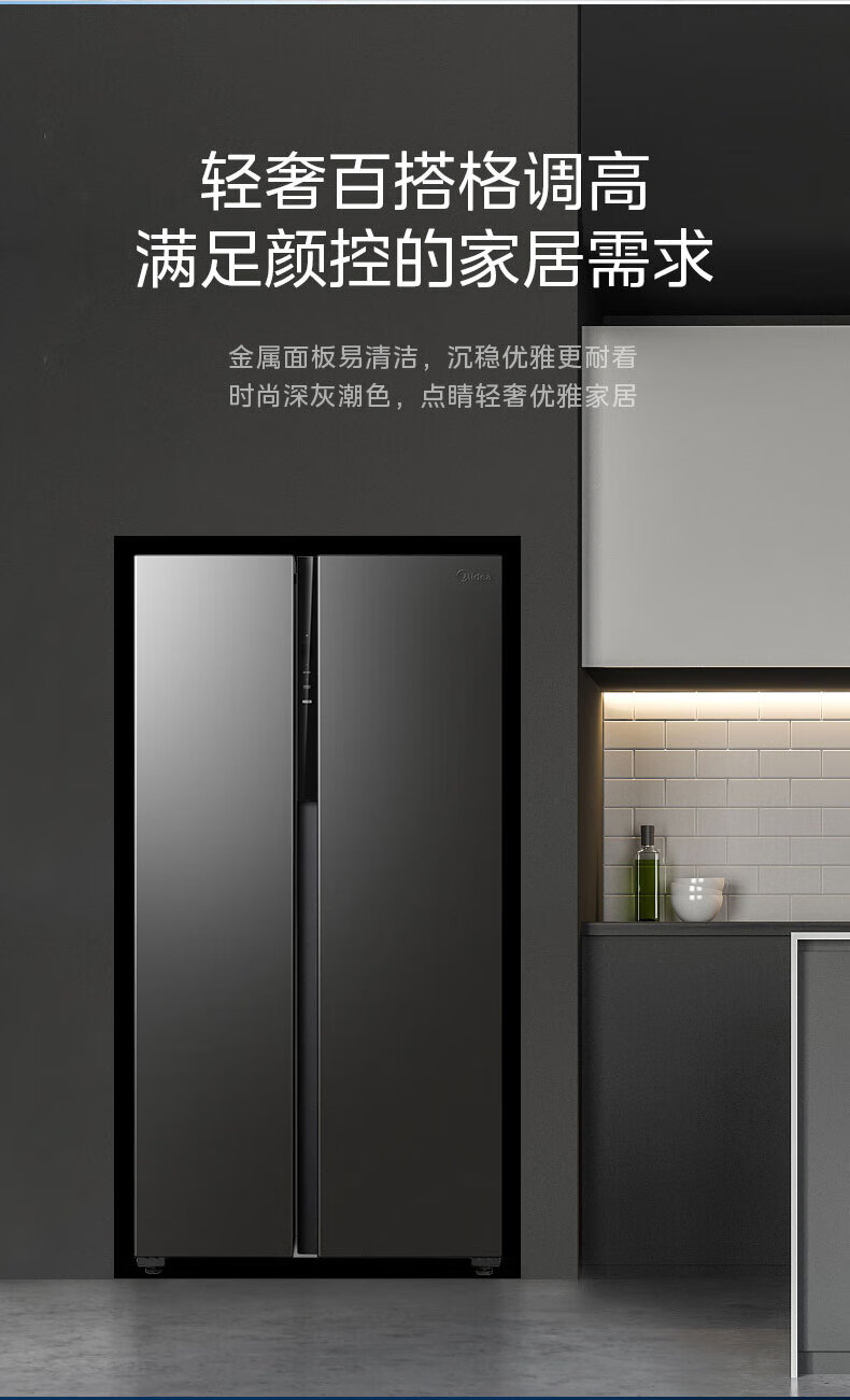 Midea refrigerator double-door double-door first-class energy-efficiency energy-saving frequency conversion air-cooled frost-free large capacity household BCD-550WKPZM (E) Brown 550 liter large capacity fresh storage first-class energy-saving dual frequency conversion