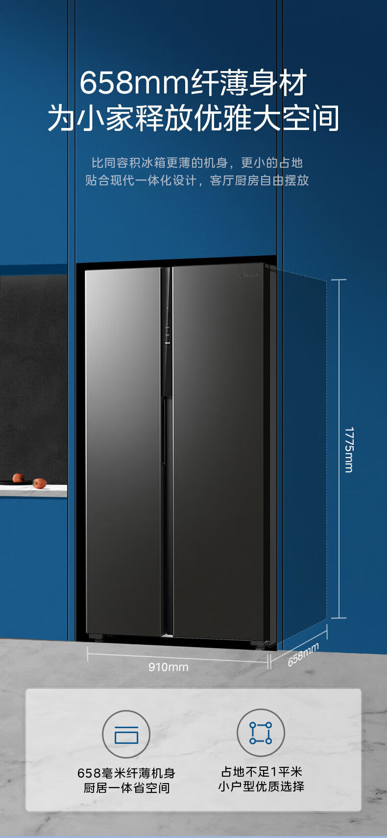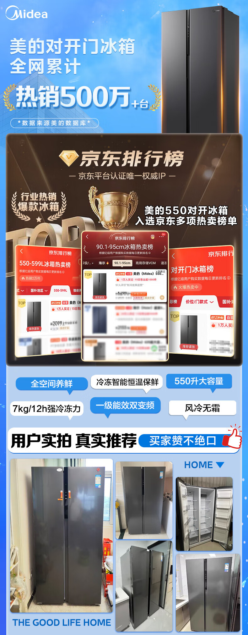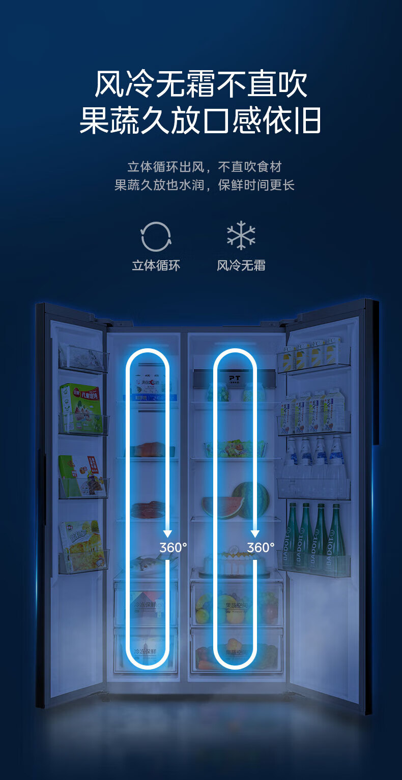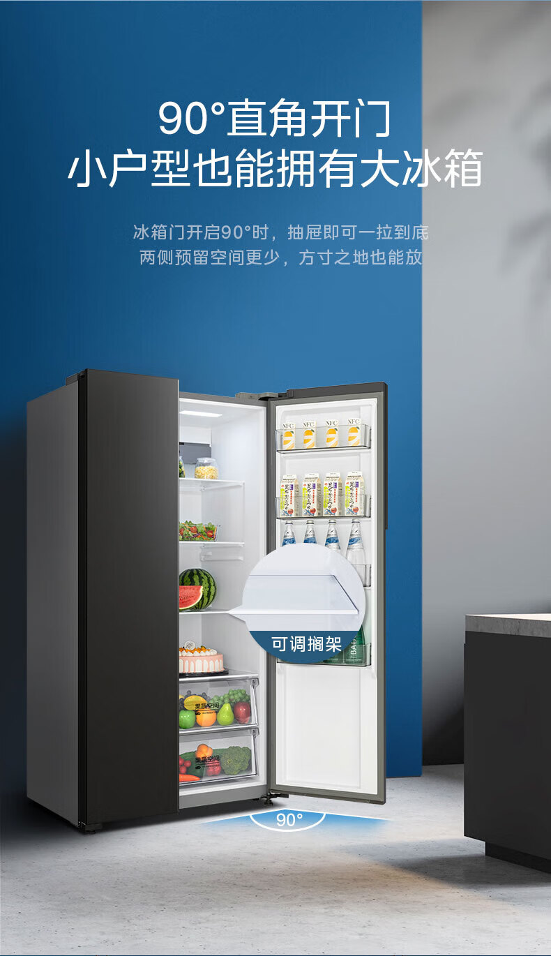 Midea refrigerator double-door double-door first-class energy-efficiency energy-saving frequency conversion air-cooled frost-free large capacity household BCD-550WKPZM (E) Brown 550 liter large capacity fresh storage first-class energy-saving dual frequency conversion