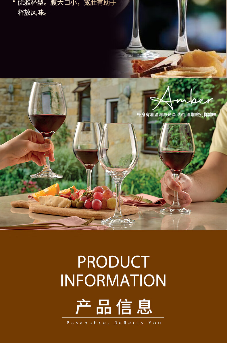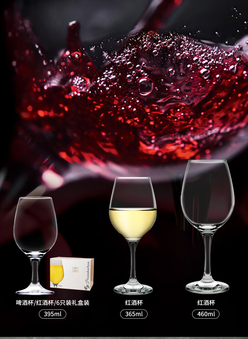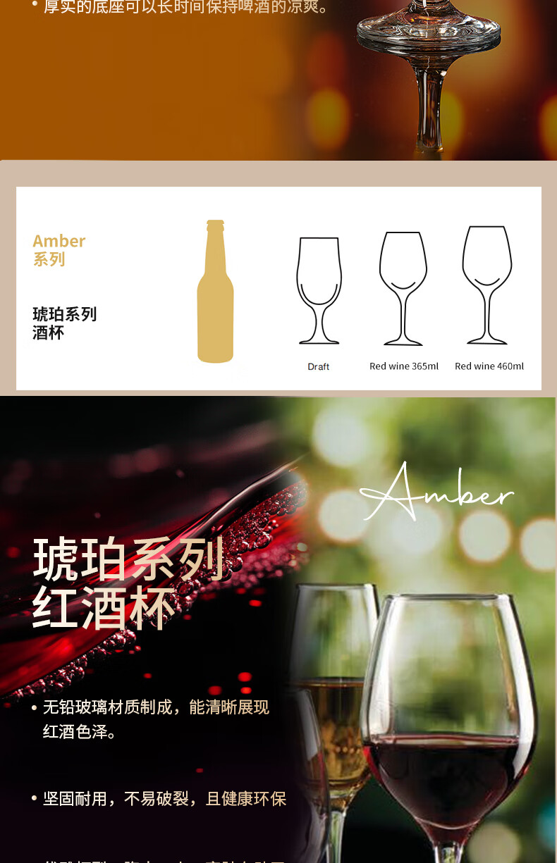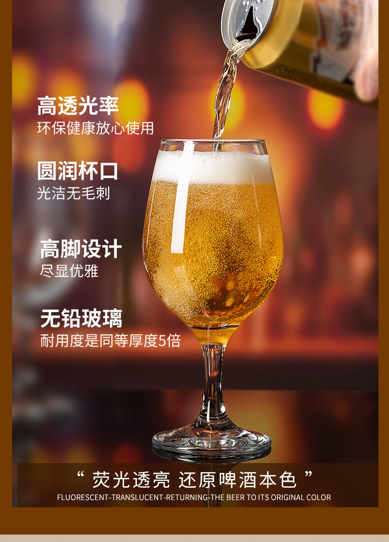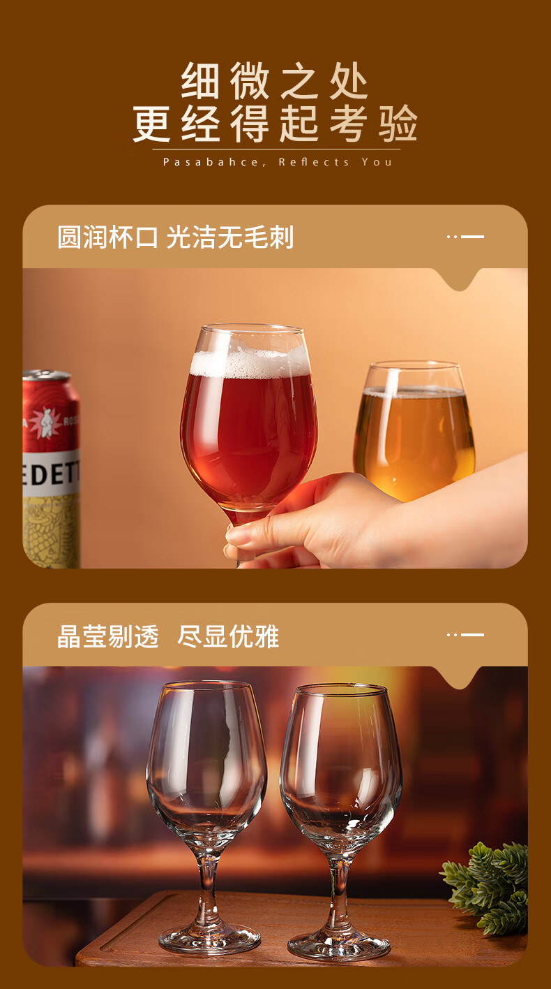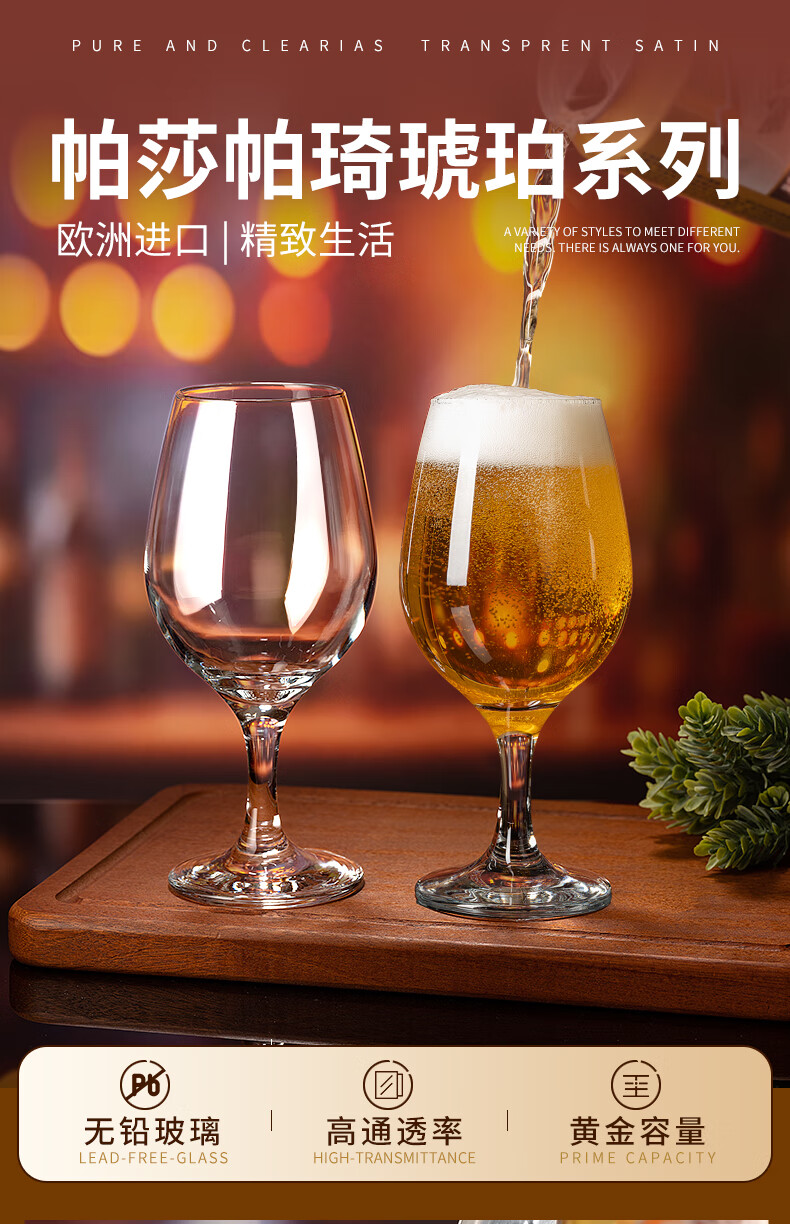 Pasha Paqi imported lead-free craft beer glass glass drink juice cup household wine glass thickened red wine glass wine glass amber goblet 365ml 2 pieces