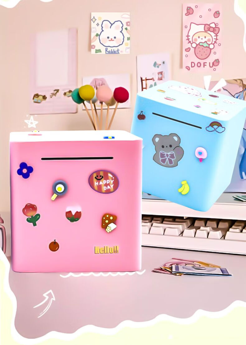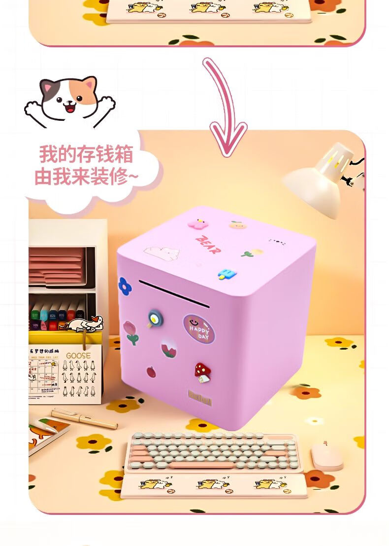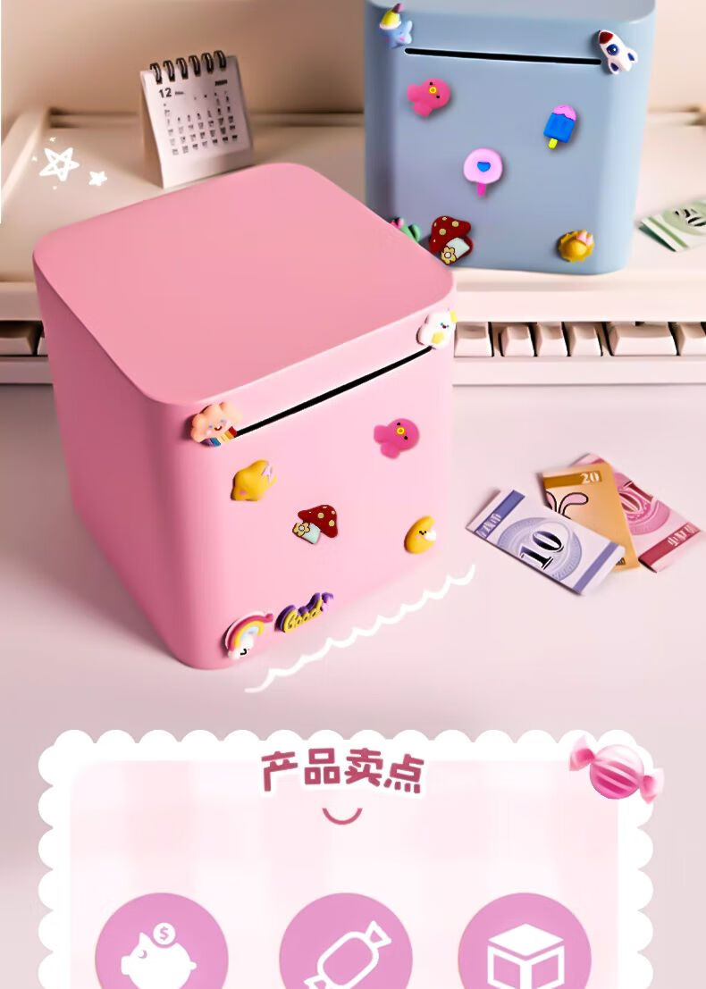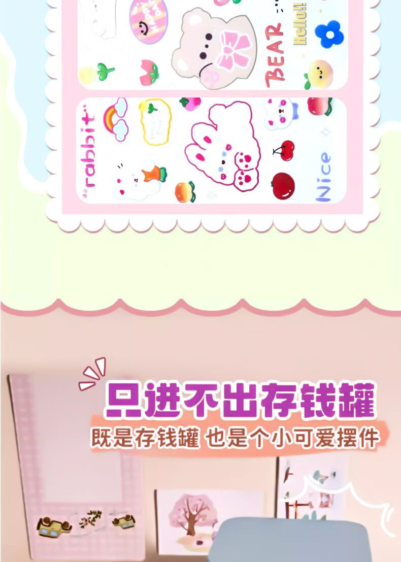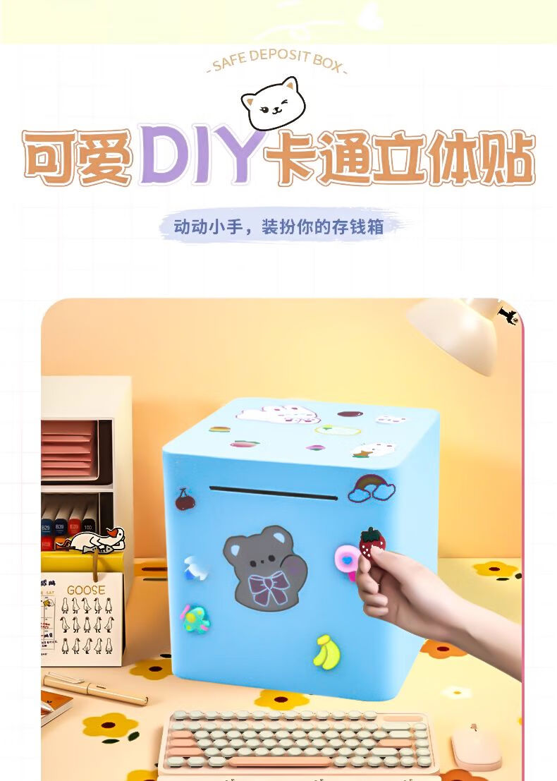 Songce children's piggy bank, large capacity, removable and removable piggy bank, birthday gift for boys and girls, high-looking anti-fall piggy bank, upgraded hidden money withdrawal port - sky blue 20*20cm+sticker+3D patch