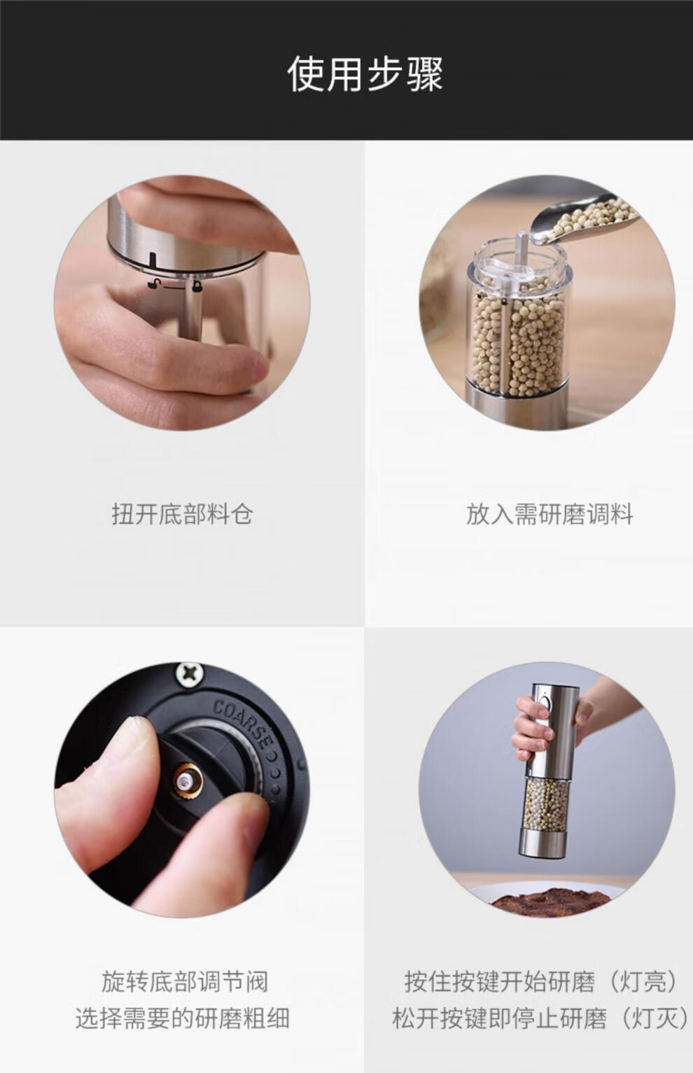 Fat Donglai's same style pepper grinder German electric black grain sea salt white household high-end automatic grinding god purchase German precision grinder fine powder + fast grinding + easy to clean 60 days of battery life