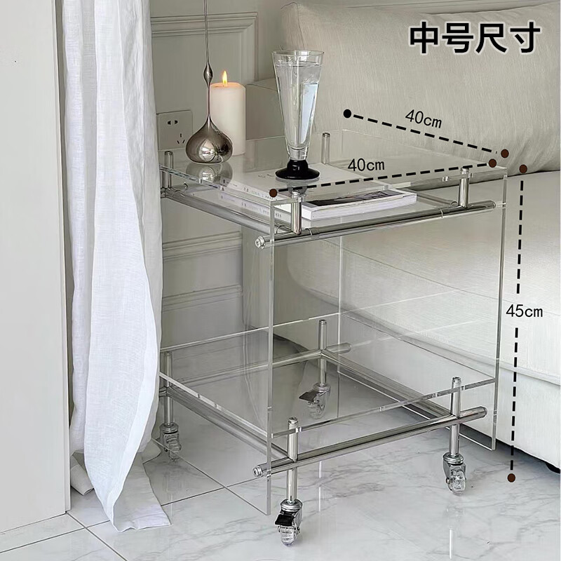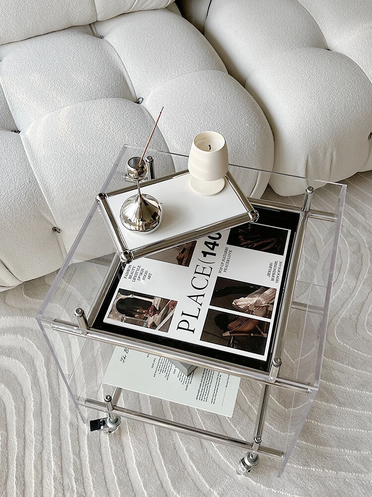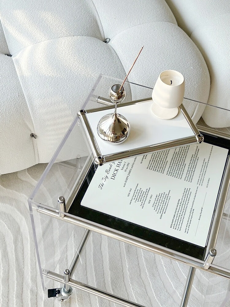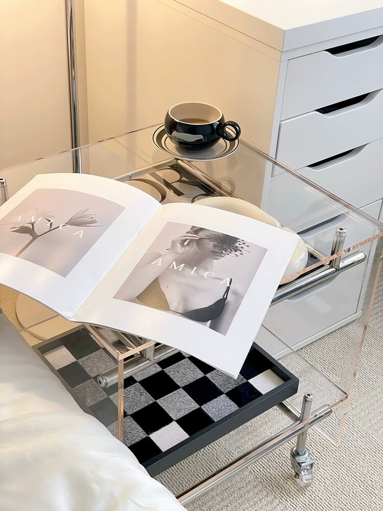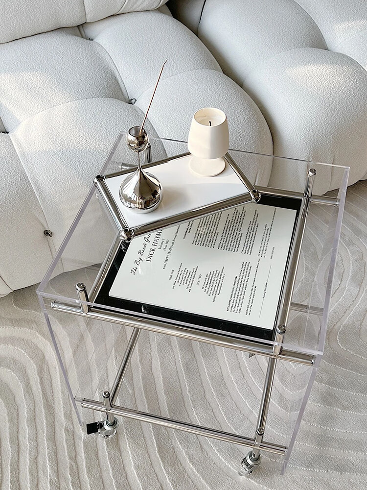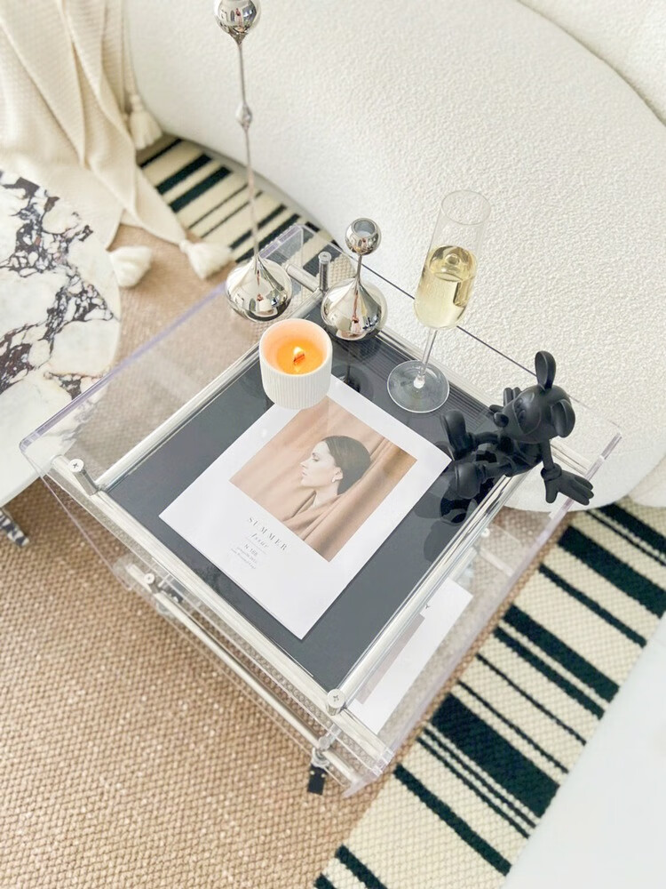 FEDDIES Nordic Acrylic Small Coffee Table Mobile Cart Light Luxury High-end Mid-Autumn Style Bauhaus Bedside Table Sofa Side Table Black Bezel Medium Size Free 2 Decorative Paper Cards Assembly