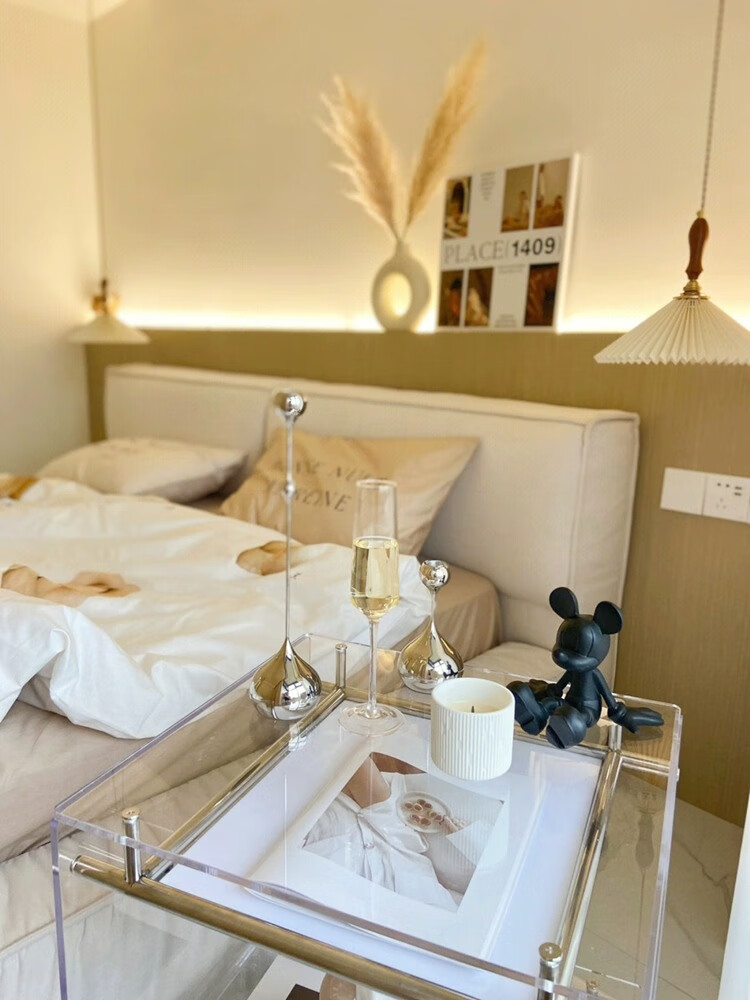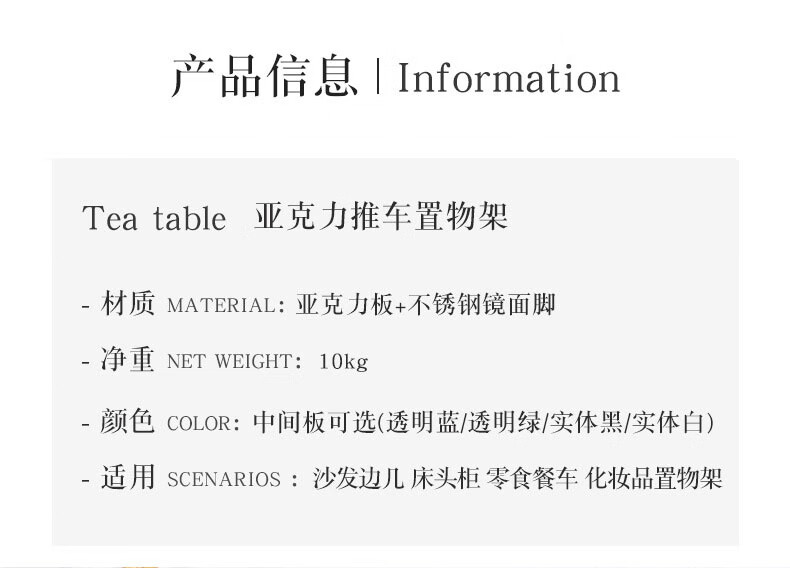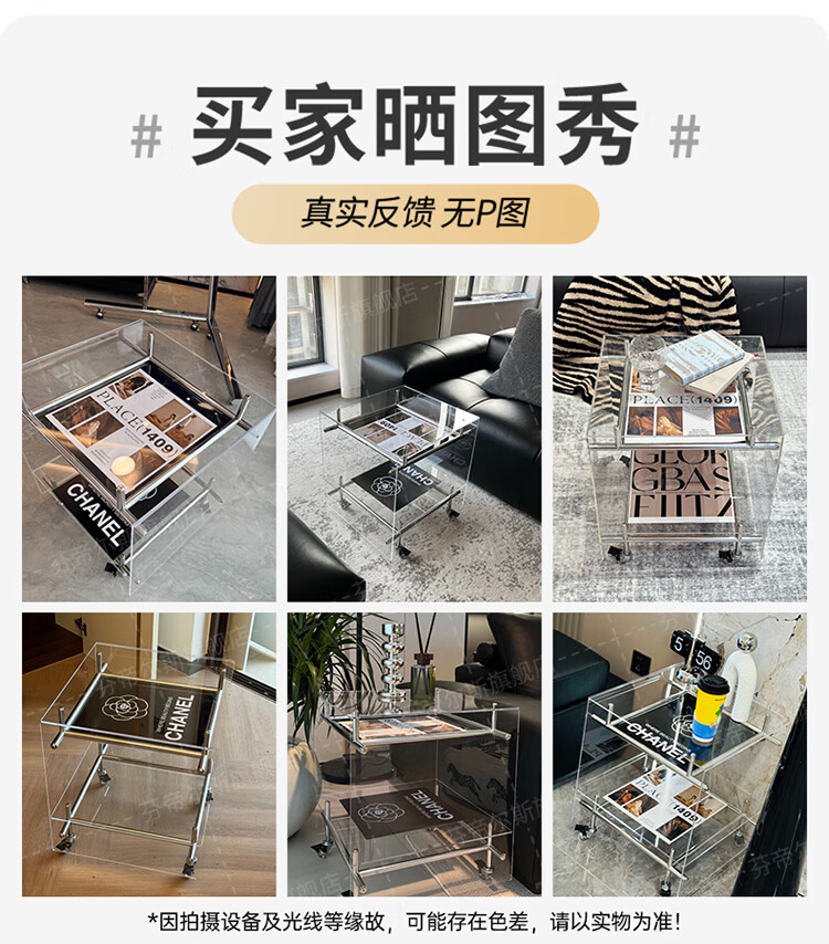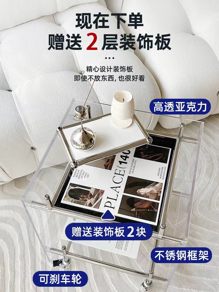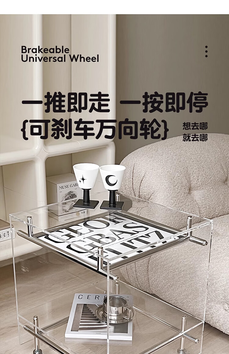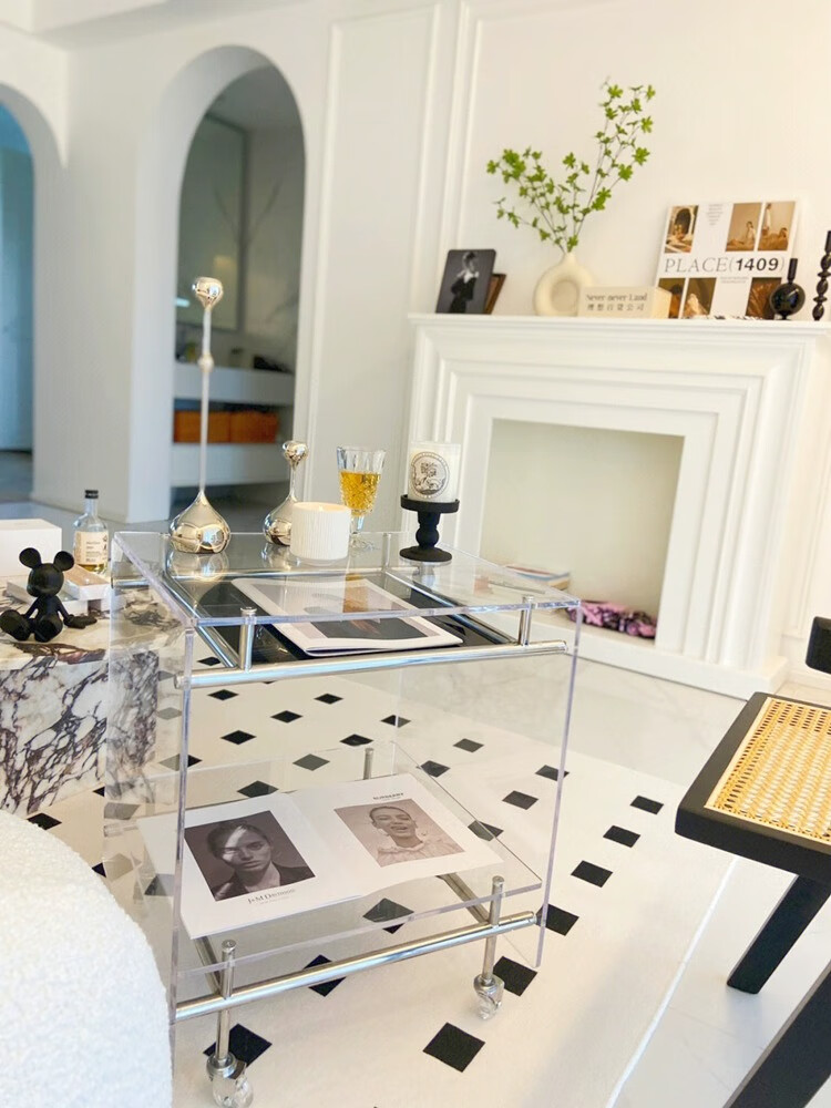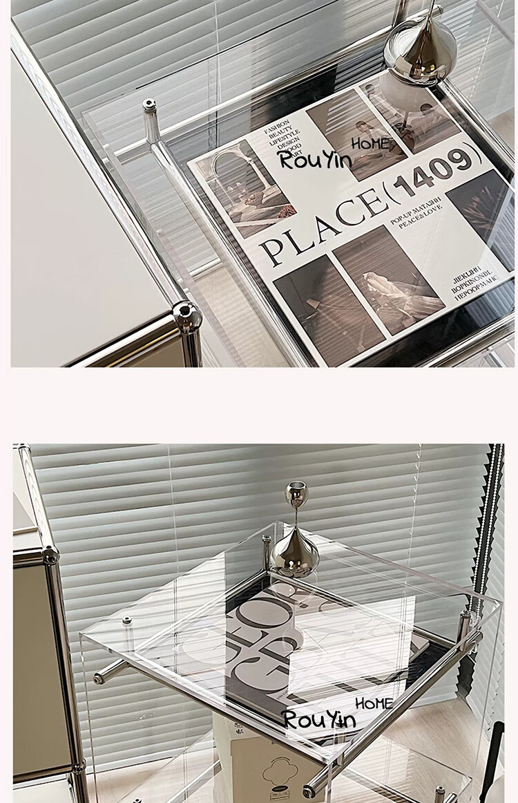 FEDDIES Nordic Acrylic Small Coffee Table Mobile Cart Light Luxury High-end Mid-Autumn Style Bauhaus Bedside Table Sofa Side Table Black Bezel Medium Size Free 2 Decorative Paper Cards Assembly