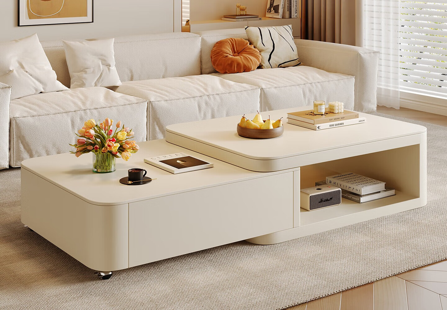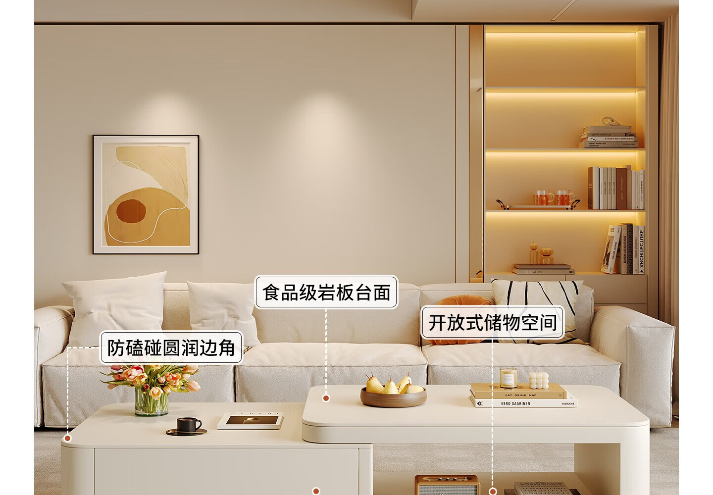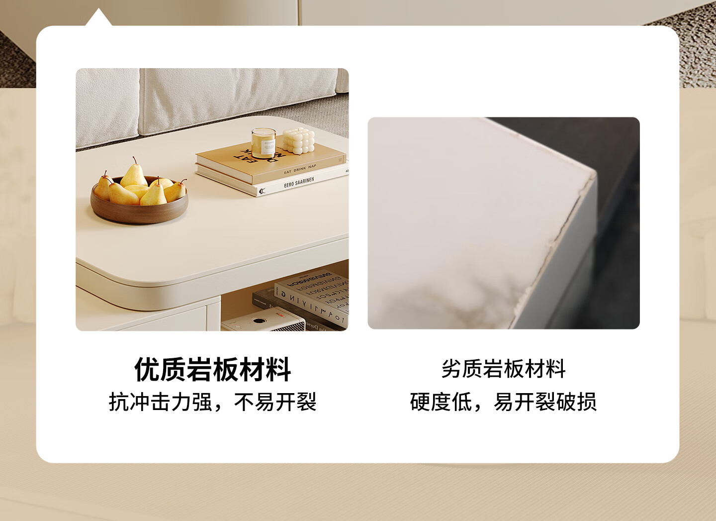 Home Fragrance Dream retractable slate coffee table living room household large and small apartment coffee table table movable cream style modern small table tea table pure white slate retractable coffee table 80*60*40cm