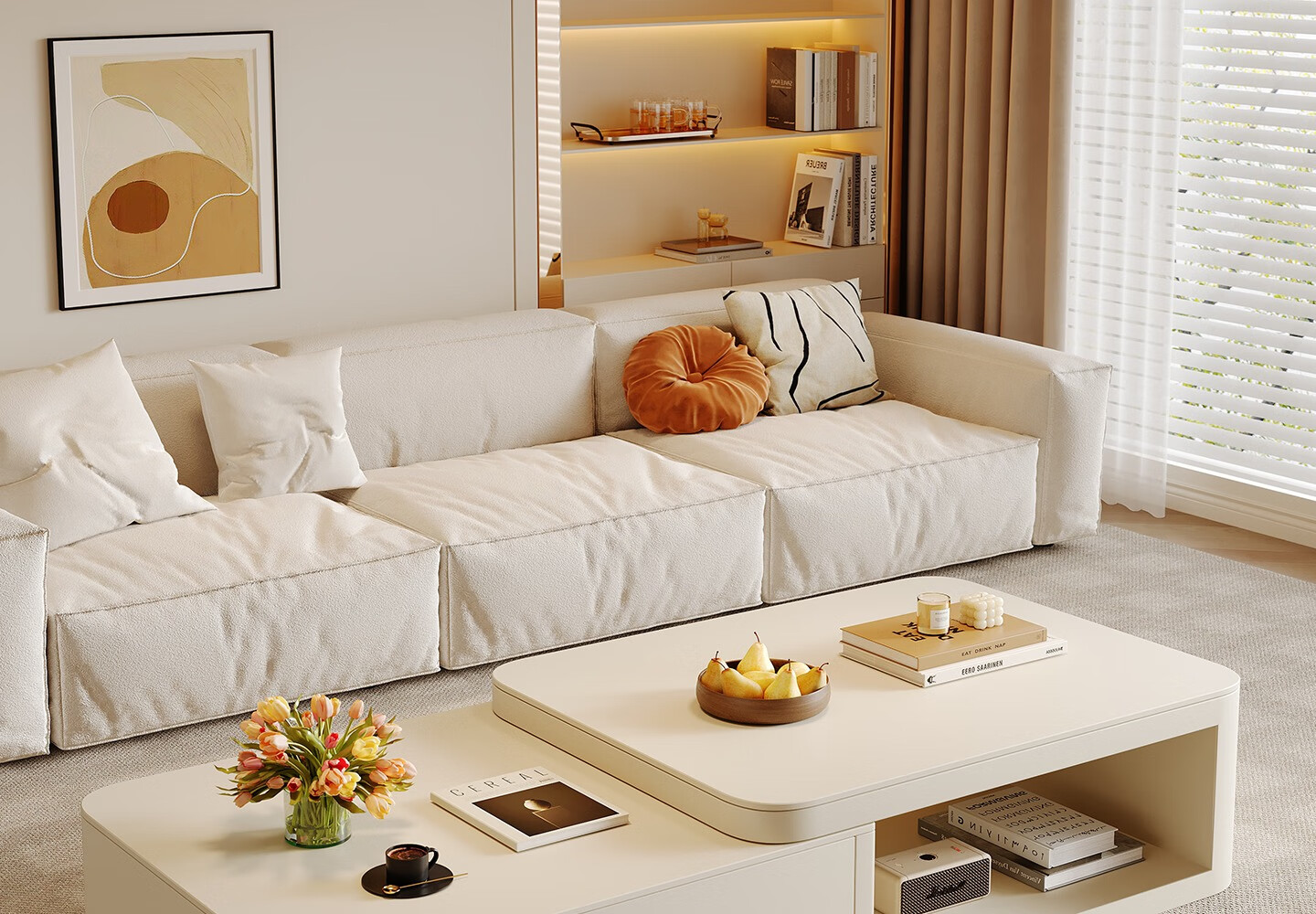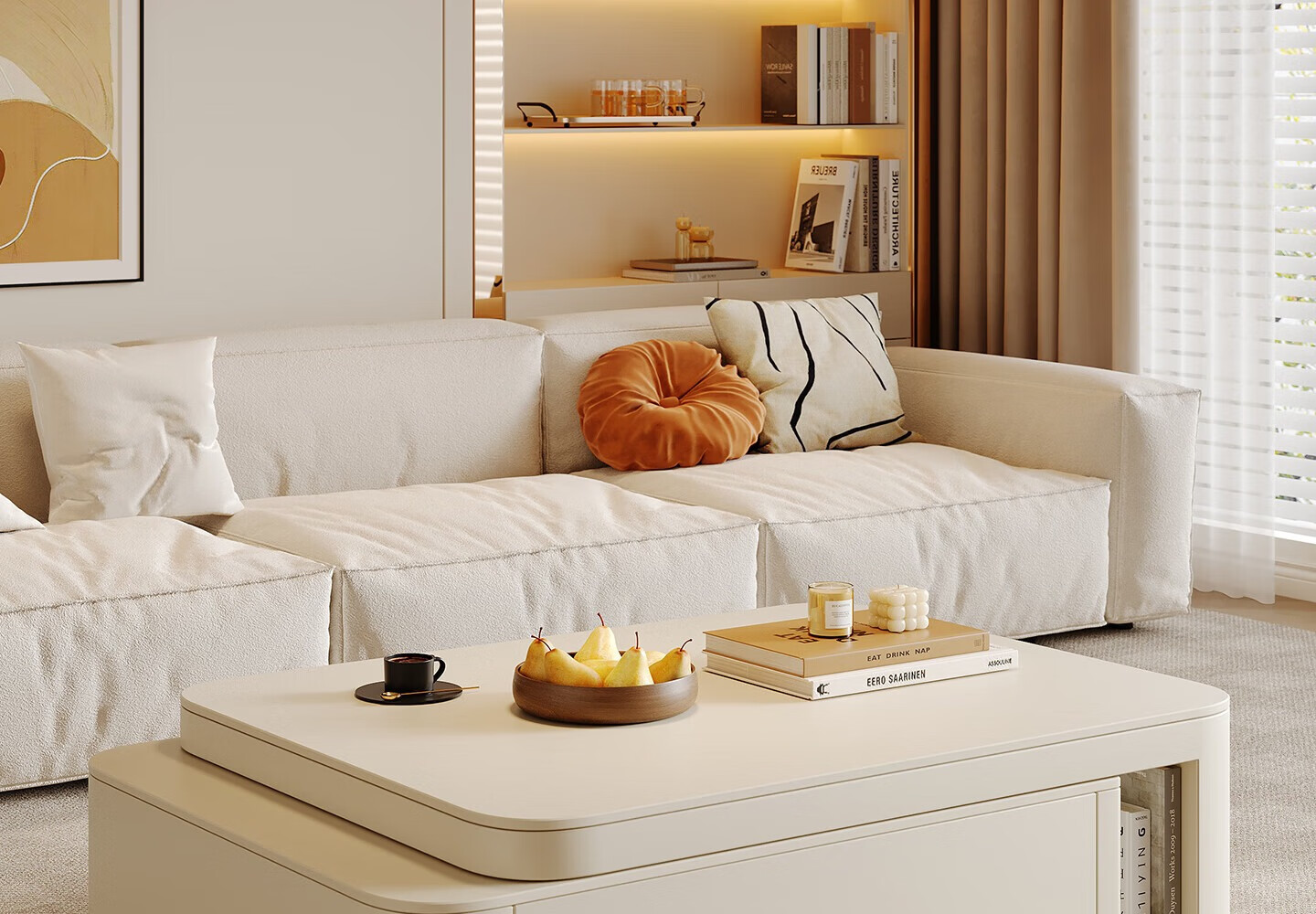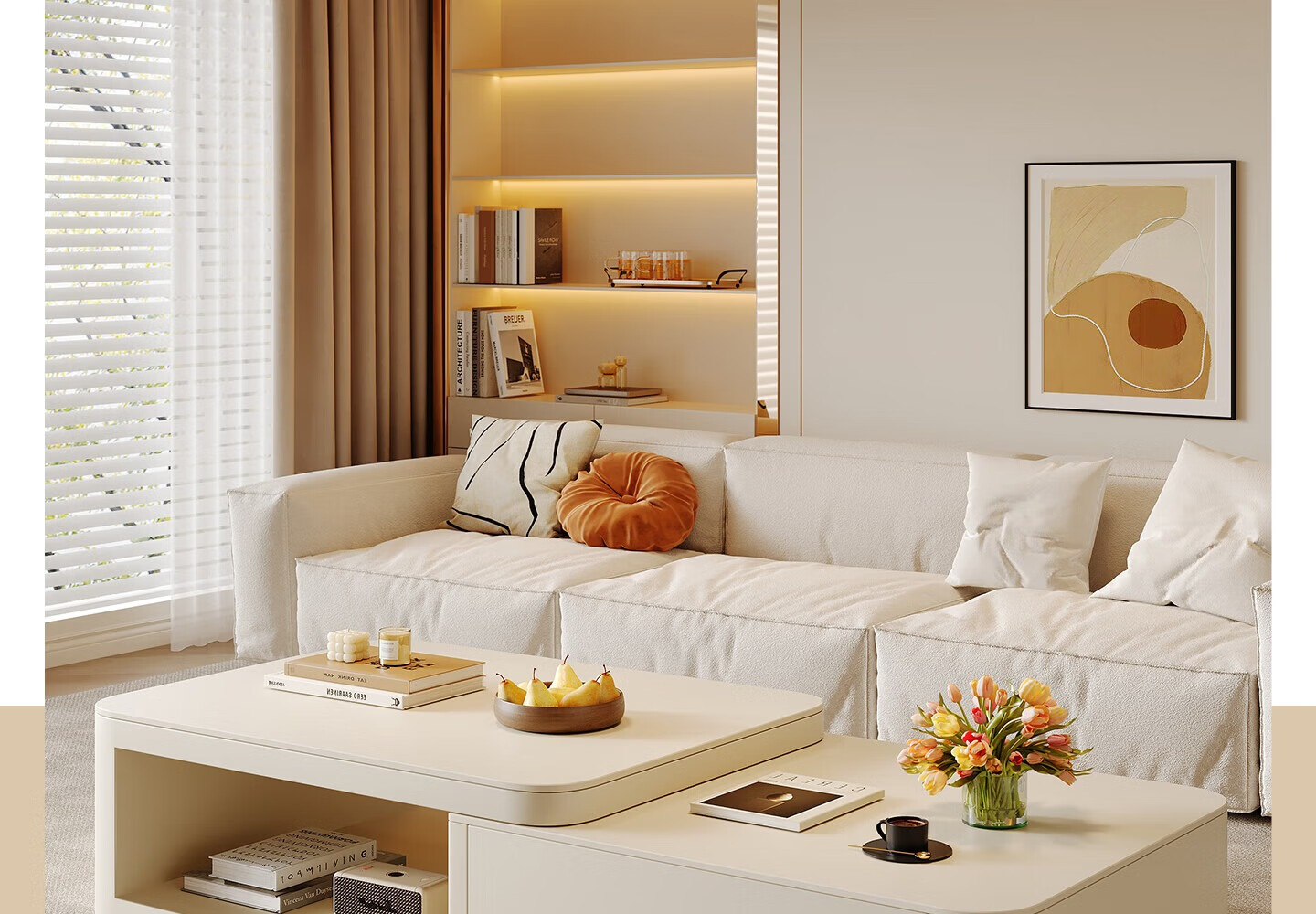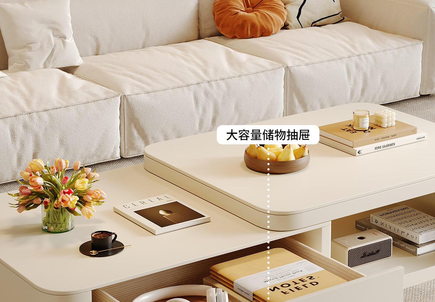 Home Fragrance Dream retractable slate coffee table living room household large and small apartment coffee table table movable cream style modern small table tea table pure white slate retractable coffee table 80*60*40cm