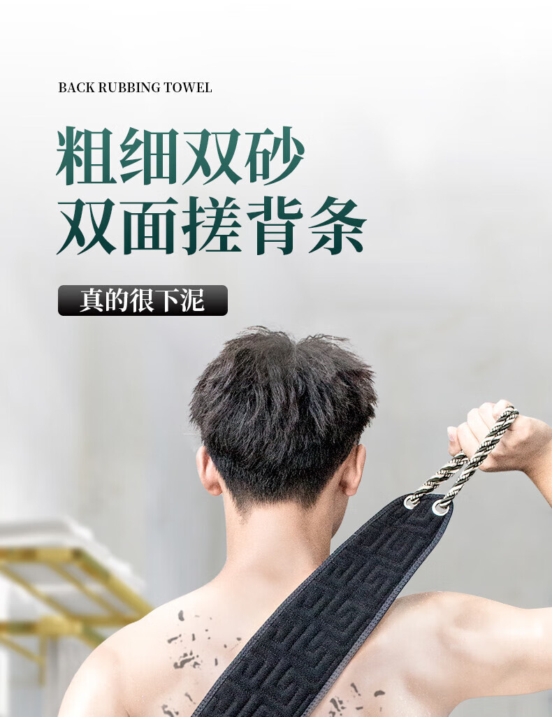 Ruoyu men's special bath towel, bath towel, strong mud rubbing artifact, household back rubbing long back bathing gloves, 1 pack, widened and thickened, black