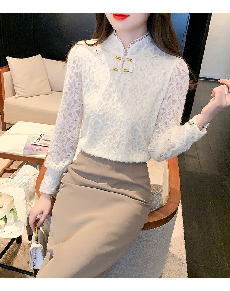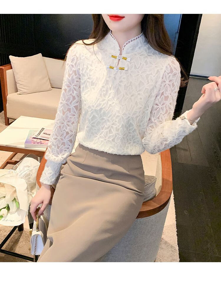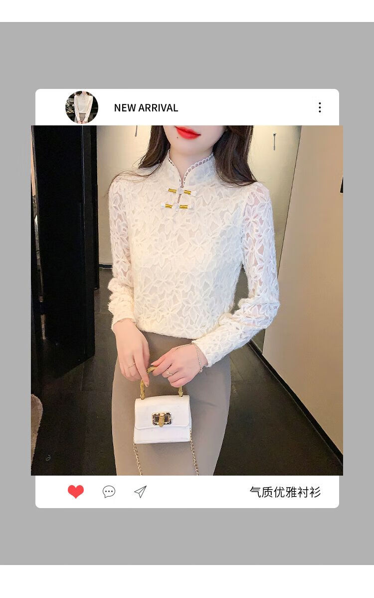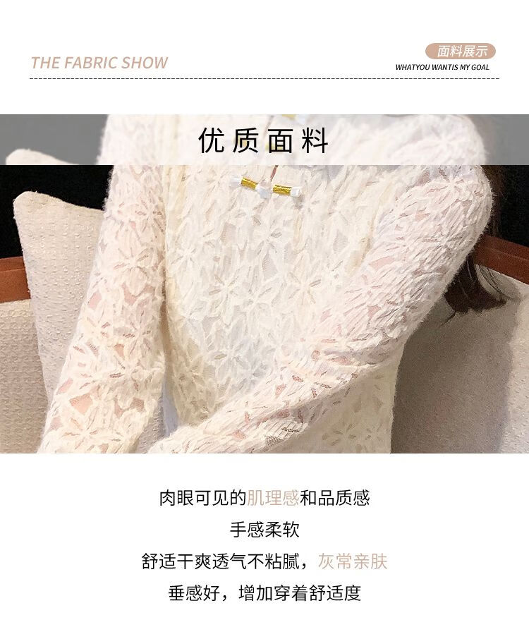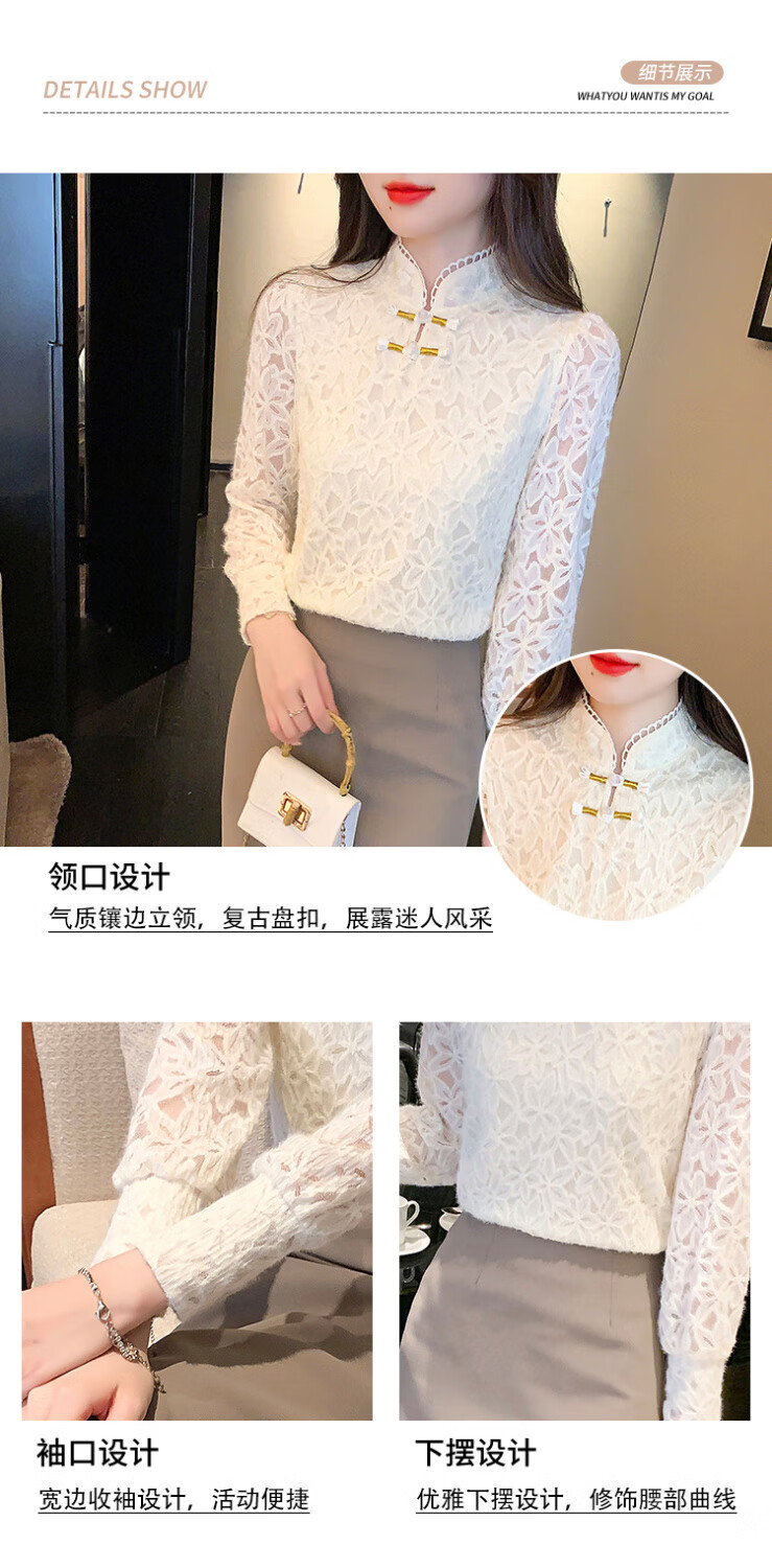 Pierre Cardin lace bottoming shirt for women 2025 autumn and winter new style new Chinese style plus velvet thickened buckle western style inner top for women apricot full body plus velvet S recommended 80-90 pounds