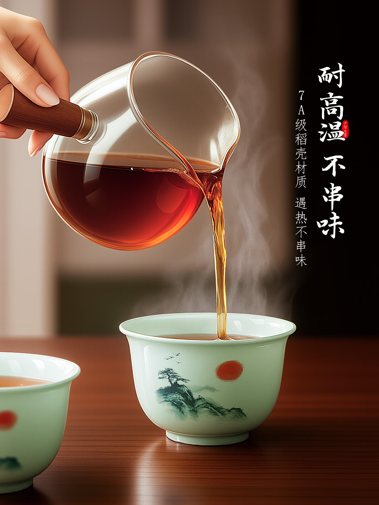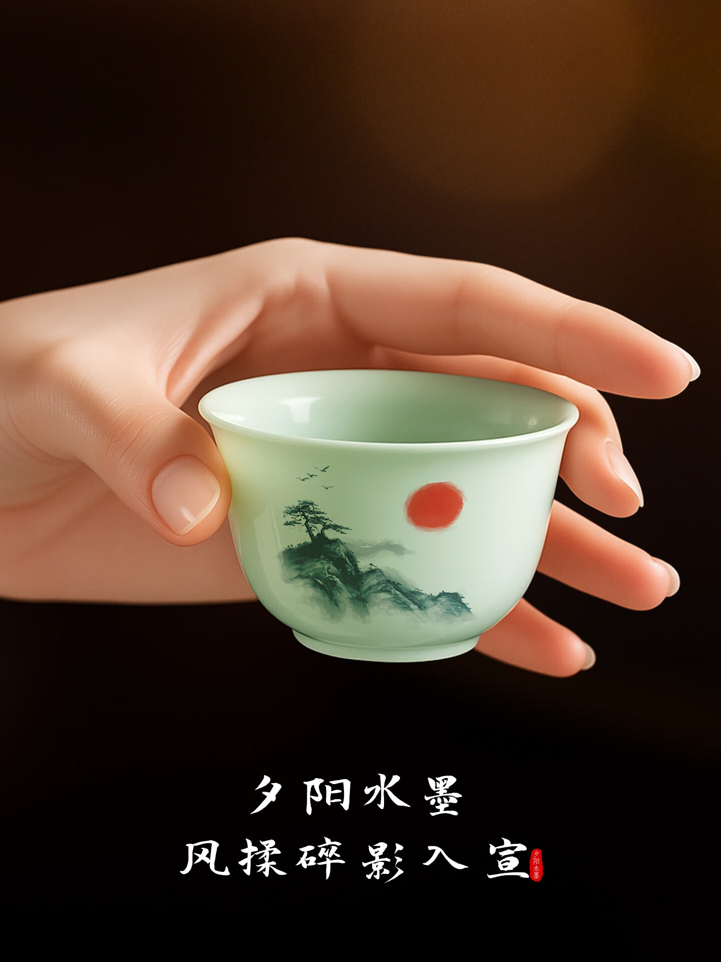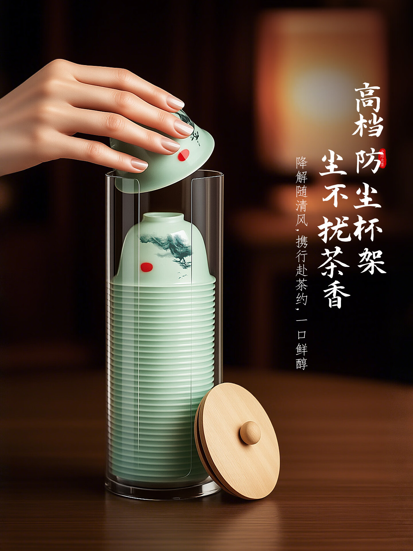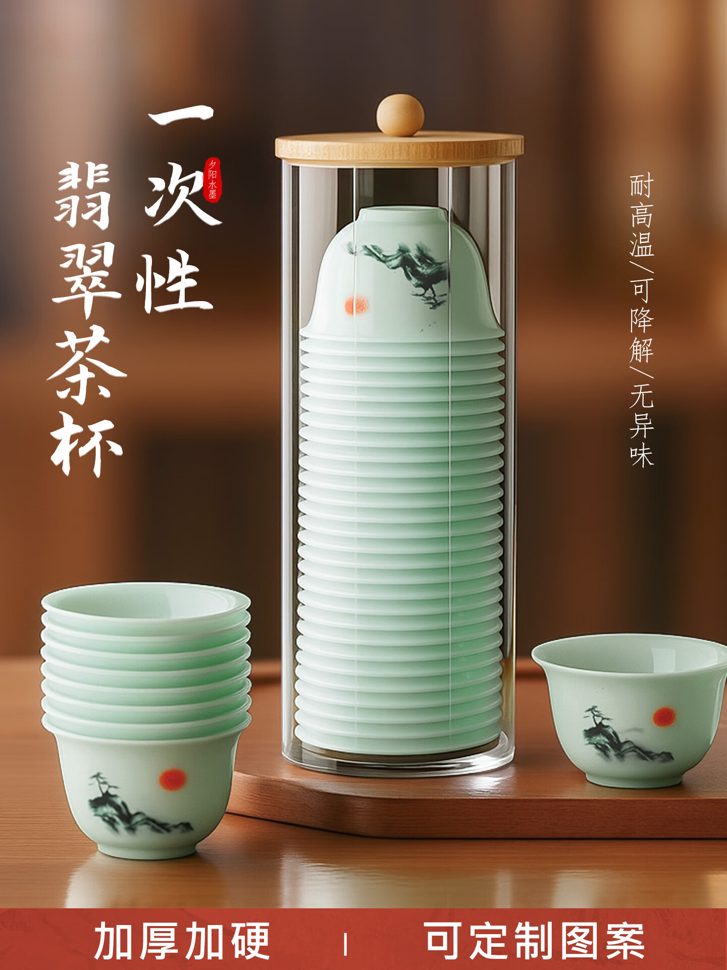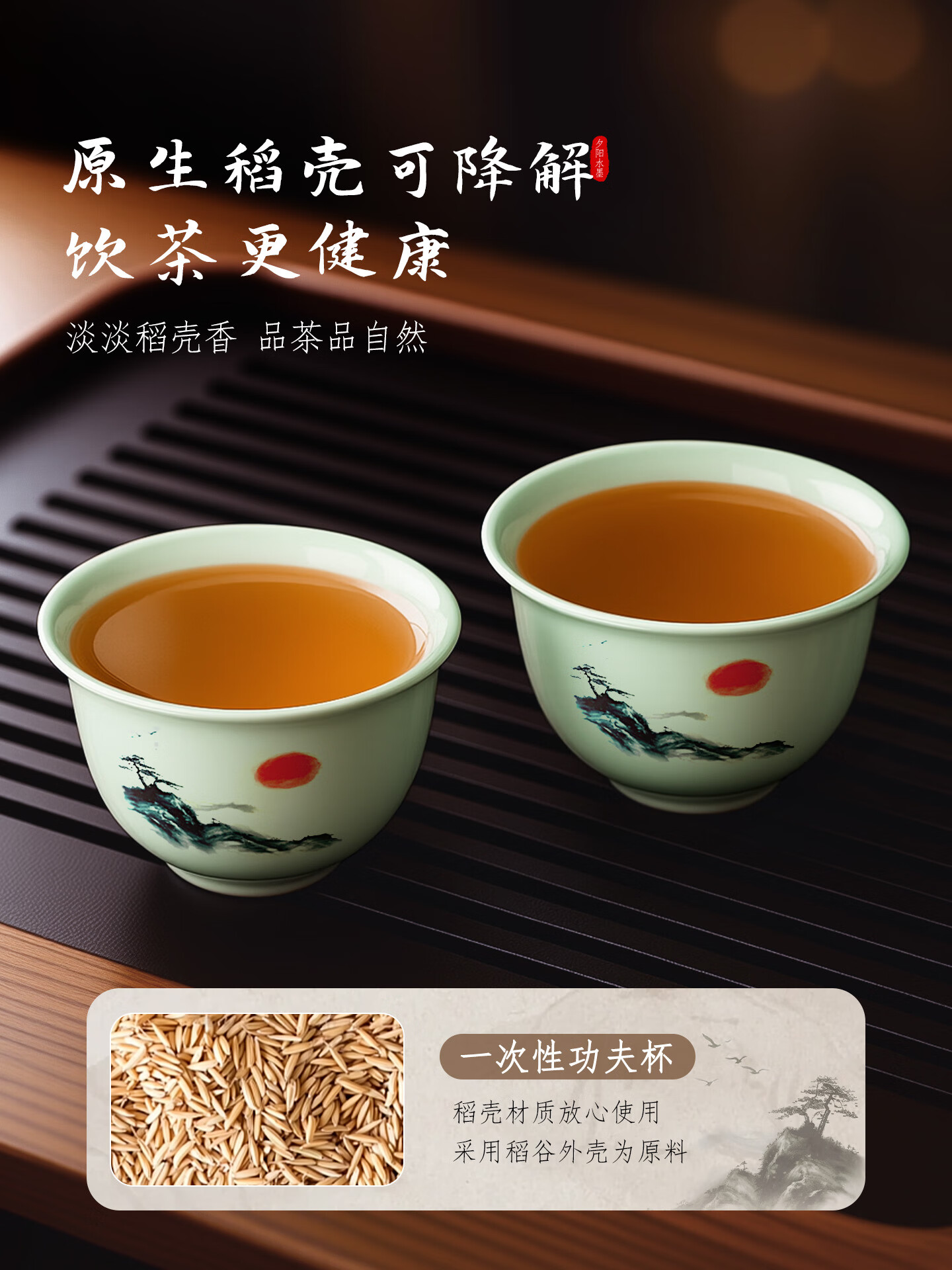 Boyin Rice Husk Disposable Emerald Green Kung Fu Tea Cup Portable Tea Set for Home Hospitality High-end Tea Cup High Temperature Resistant Sunset Ink Rice Husk Thickened Kung Fu Tea Cup 500 pieces + high-end cup holder set