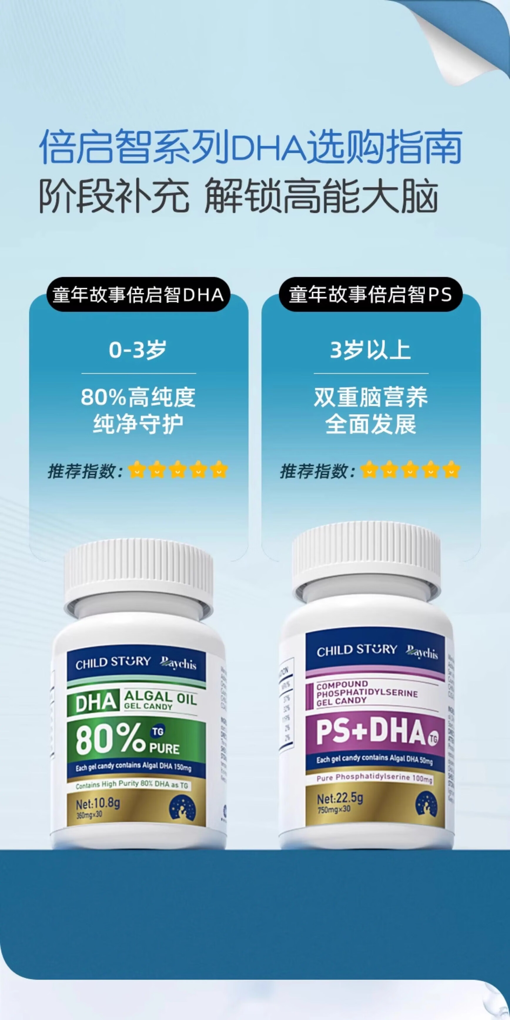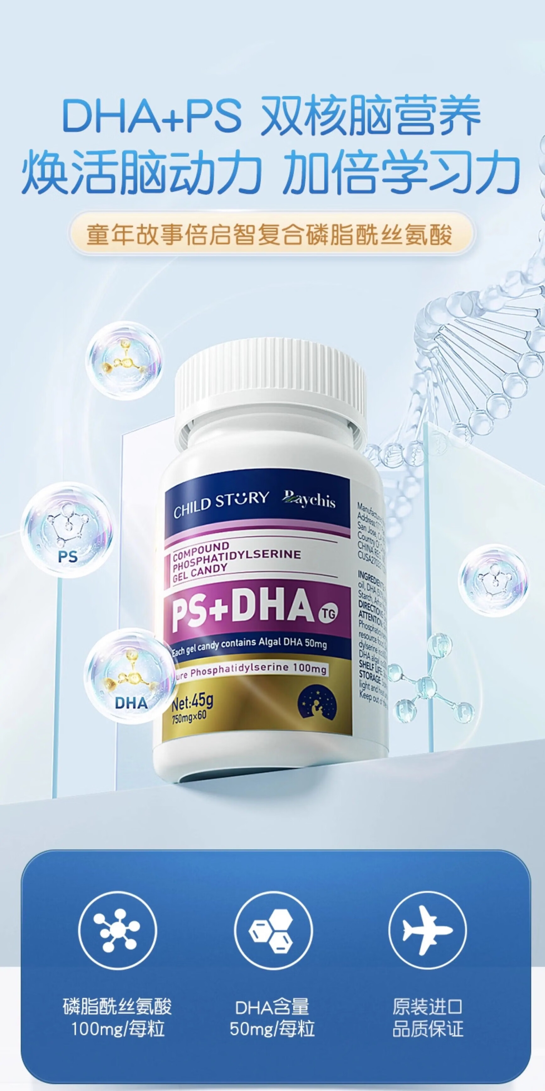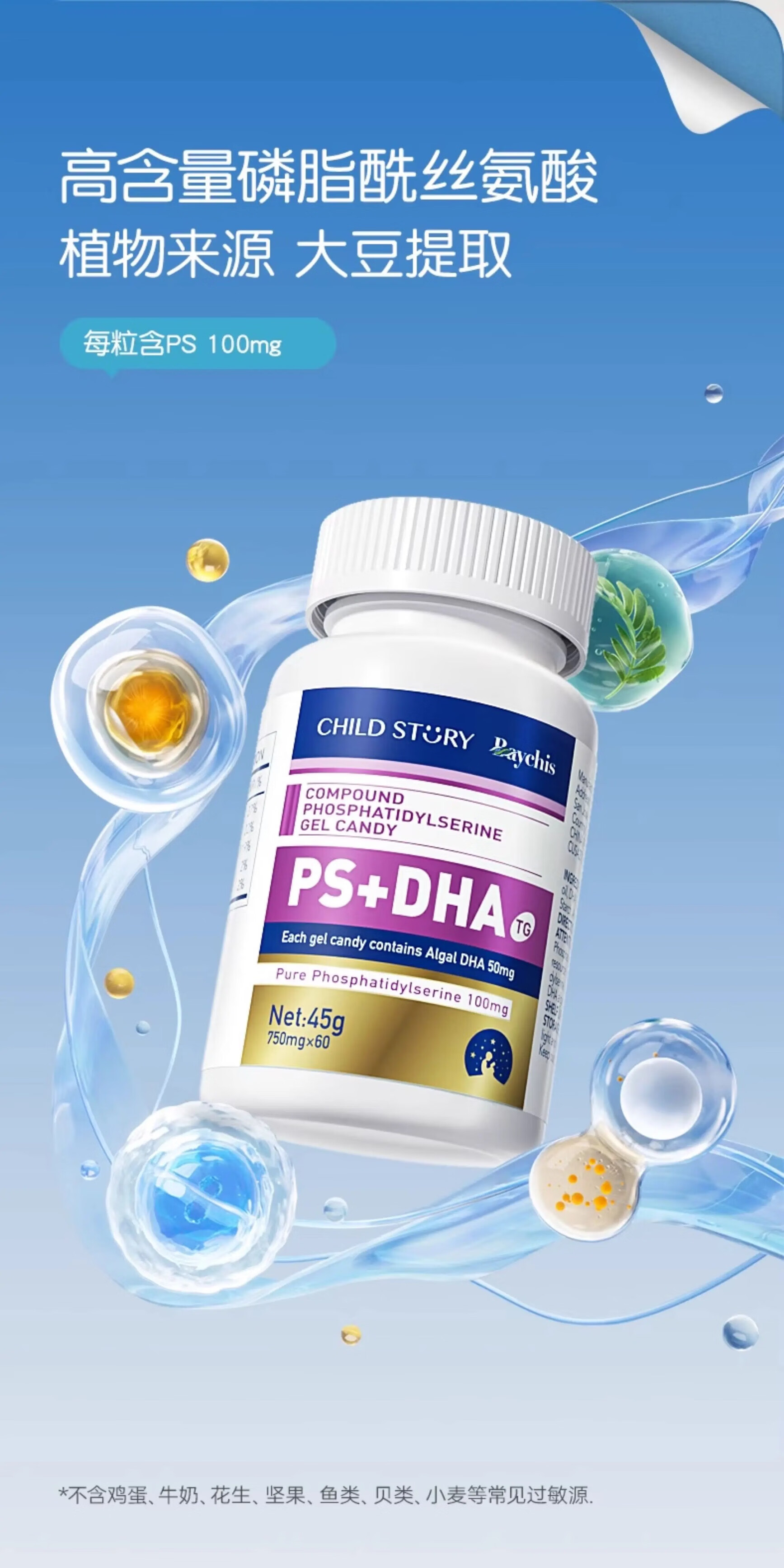 Childhood Story Compound Phosphatidylserine DHA+PS Gel Candy 60 capsules Children and Adults DHA Algae Oil + PS 60 capsules*1 box