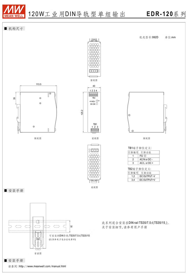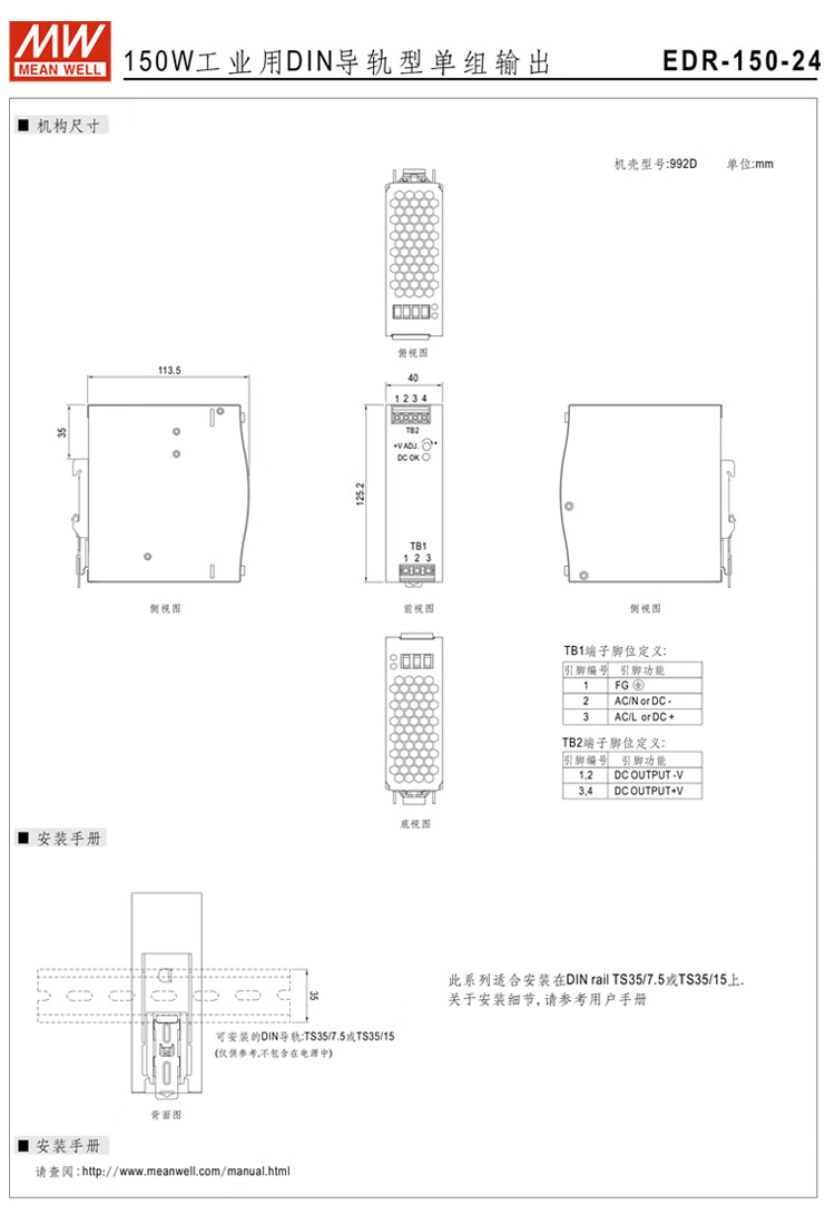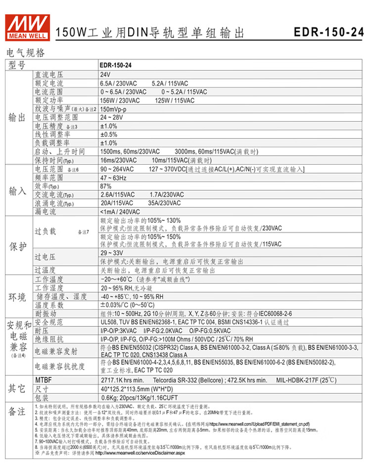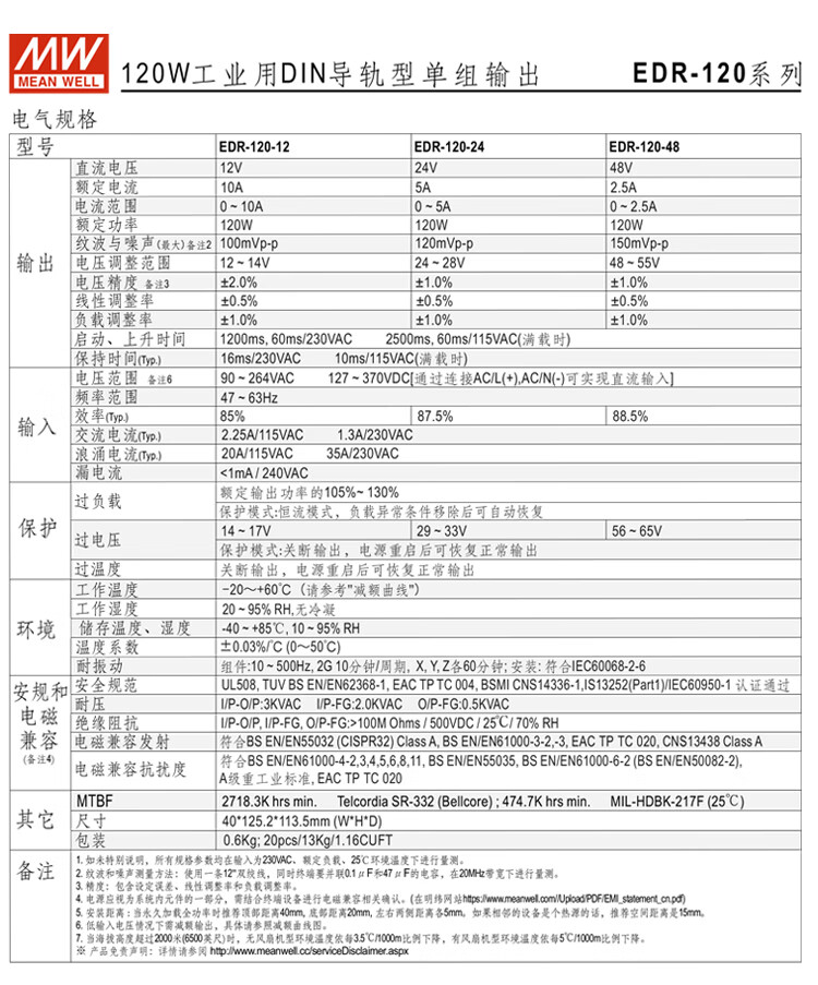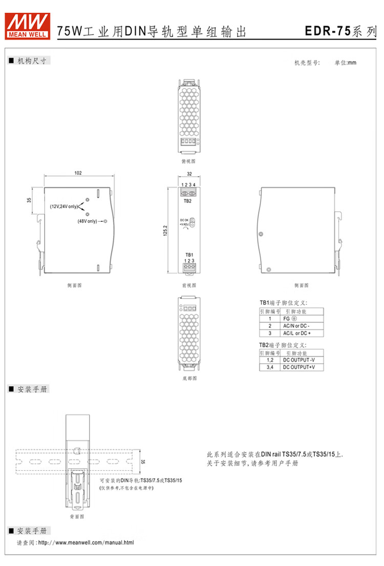 MEAN WELL switching power supply rail model EDR75W/120W/150W EDR-75-12 | 12V 6.3A