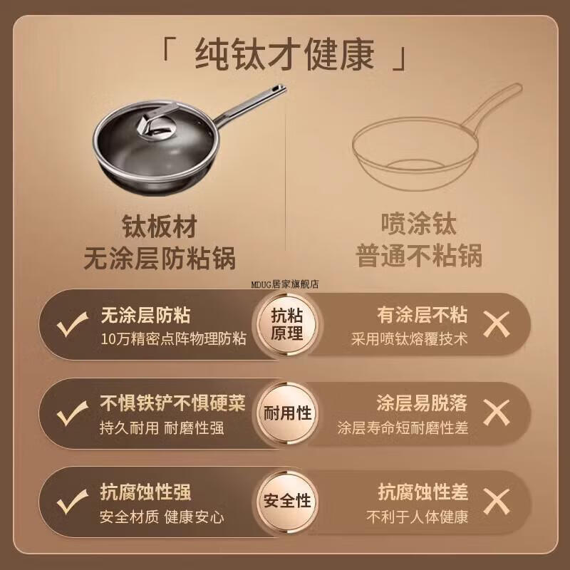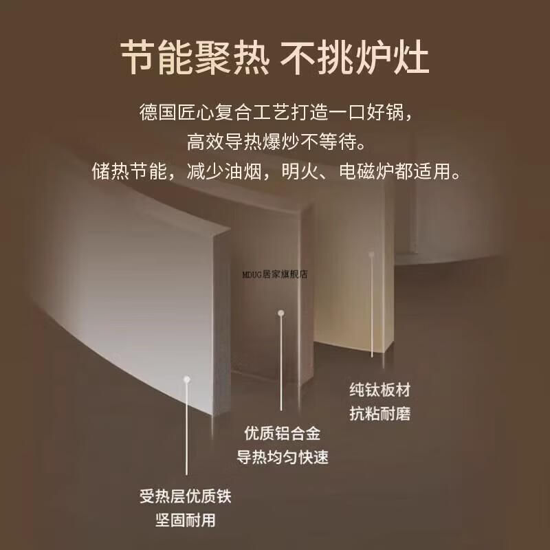 MDUG Germany imported high-quality pure titanium uncoated non-stick wok frying pan soup steamer milk pot 32cm pure titanium wok + 28cm pure titanium frying pan