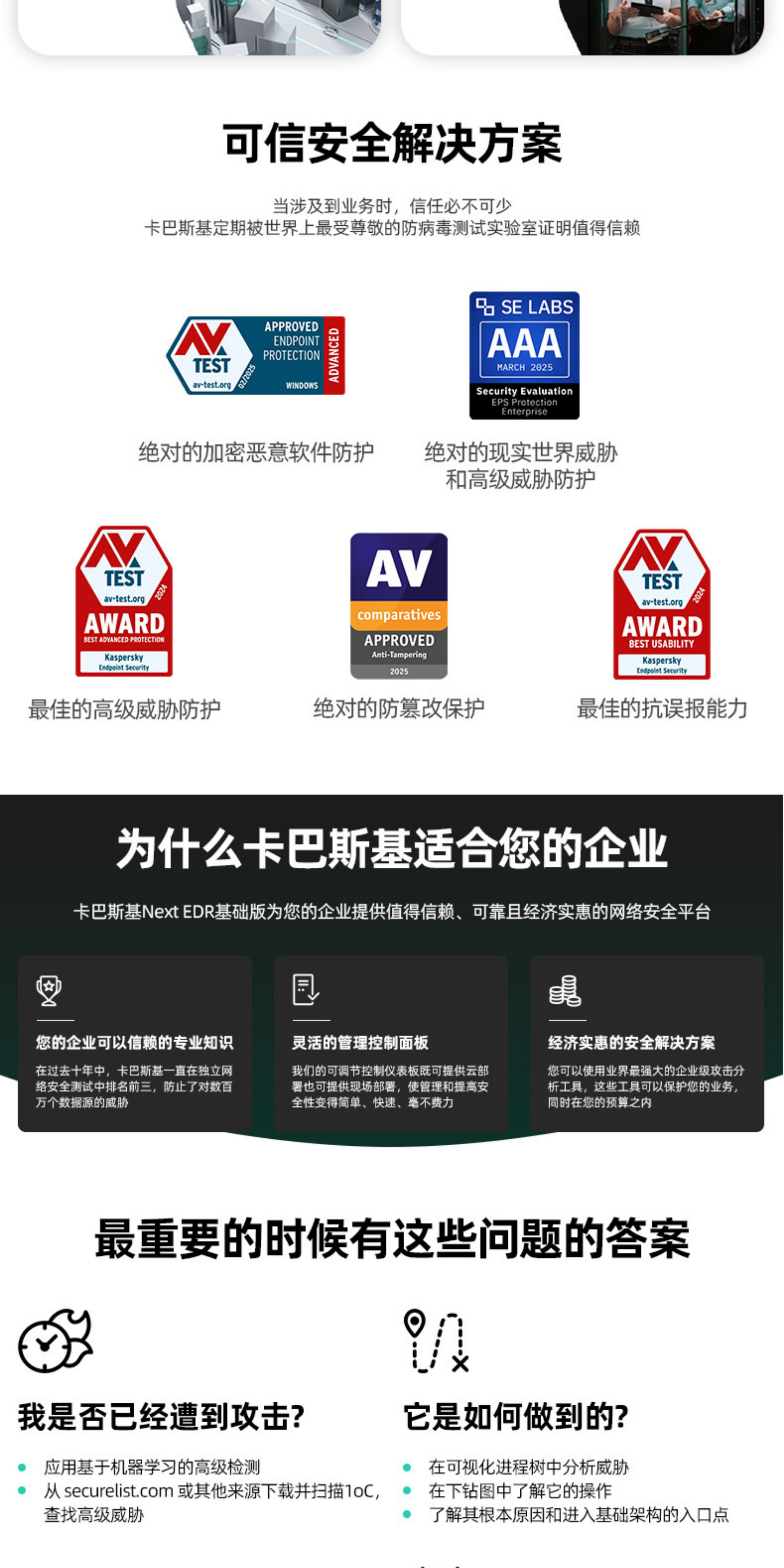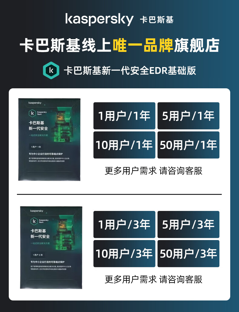 Kaspersky EDR basic version Next generation security solution for small and medium-sized enterprises 1 user 3 years, etc. Subscription to VIP server anti-virus software basic version 1 user 1 year