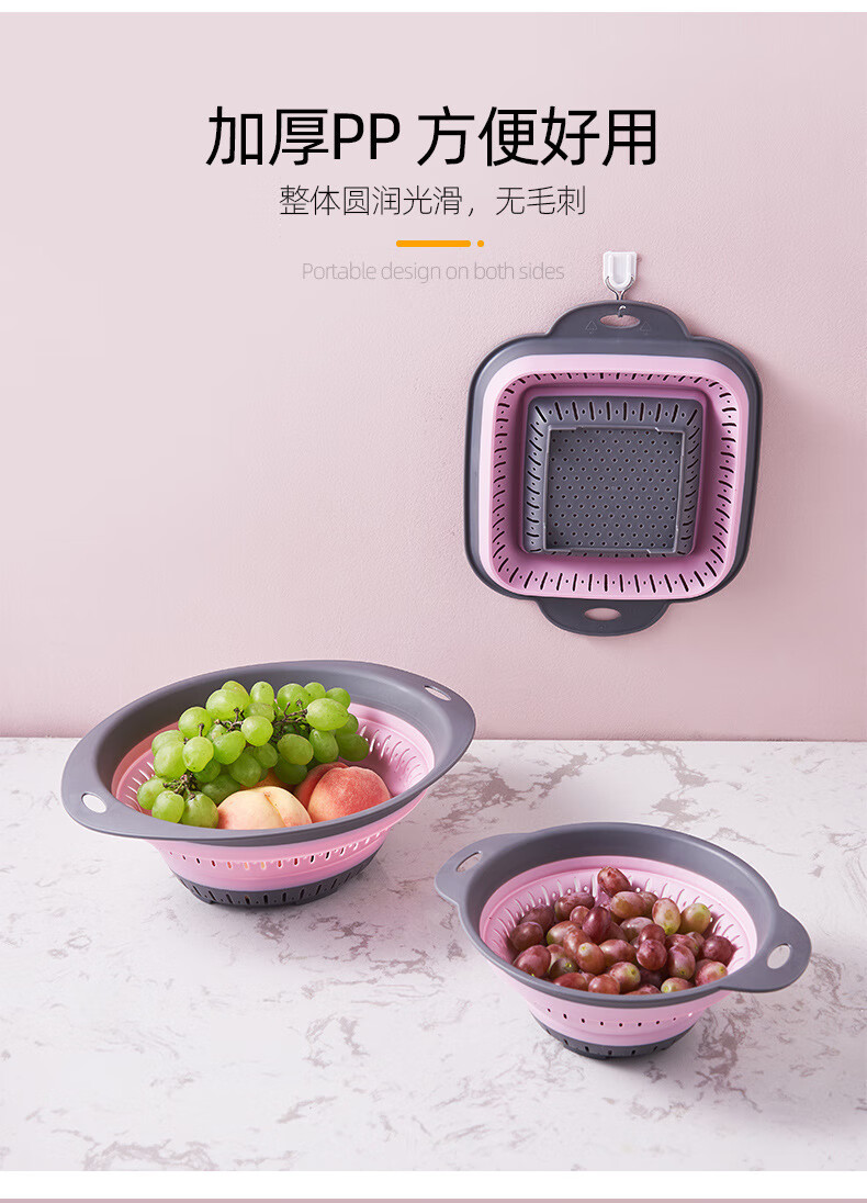 PUEINE fruit drain basket tea tray drain pipe factory direct supply spot simple and fashionable kitchen hanging fruit basket for washing vegetables oval pink (large size)
