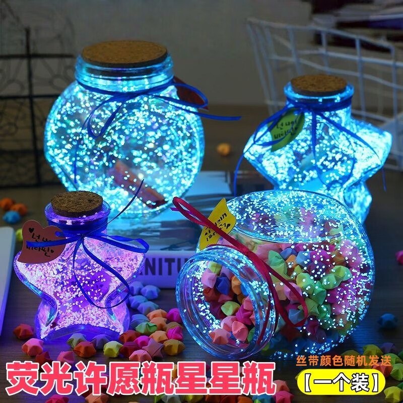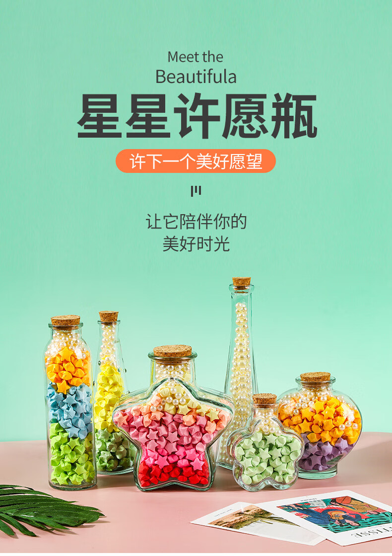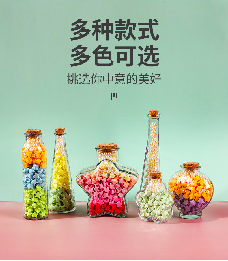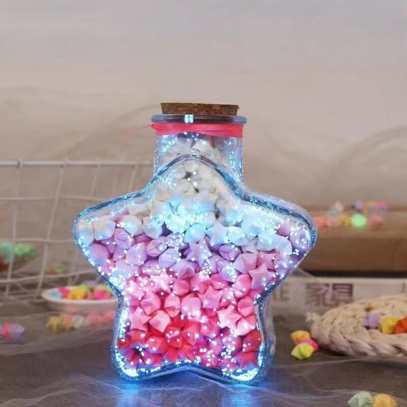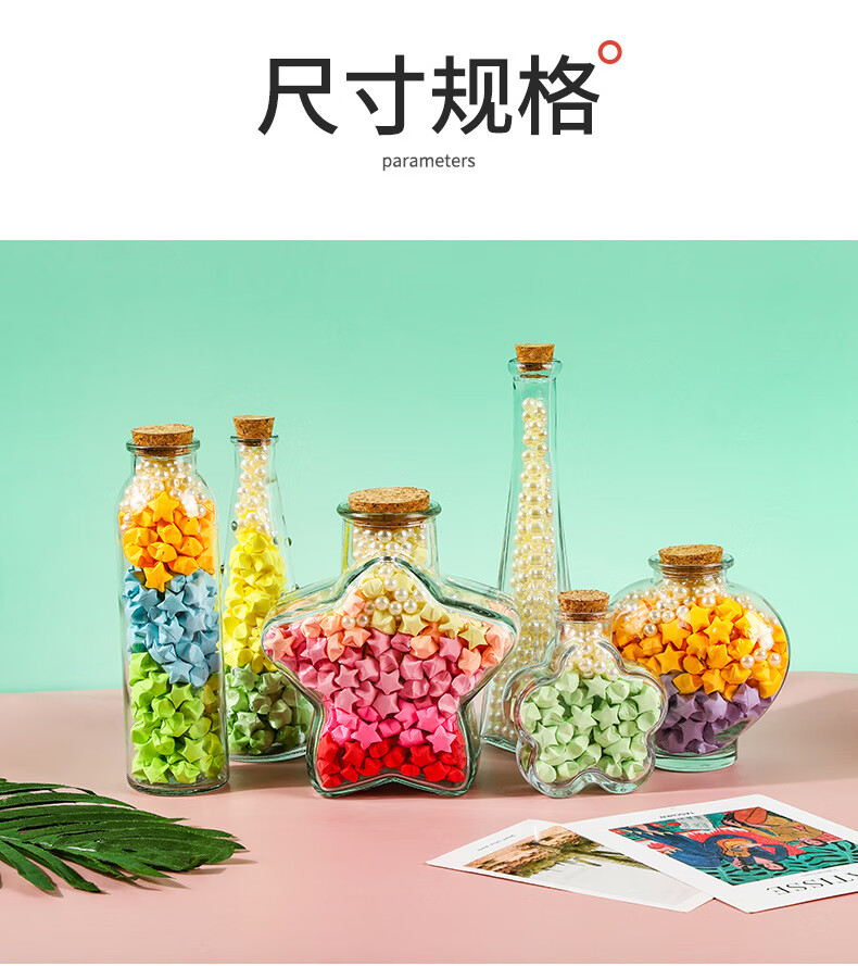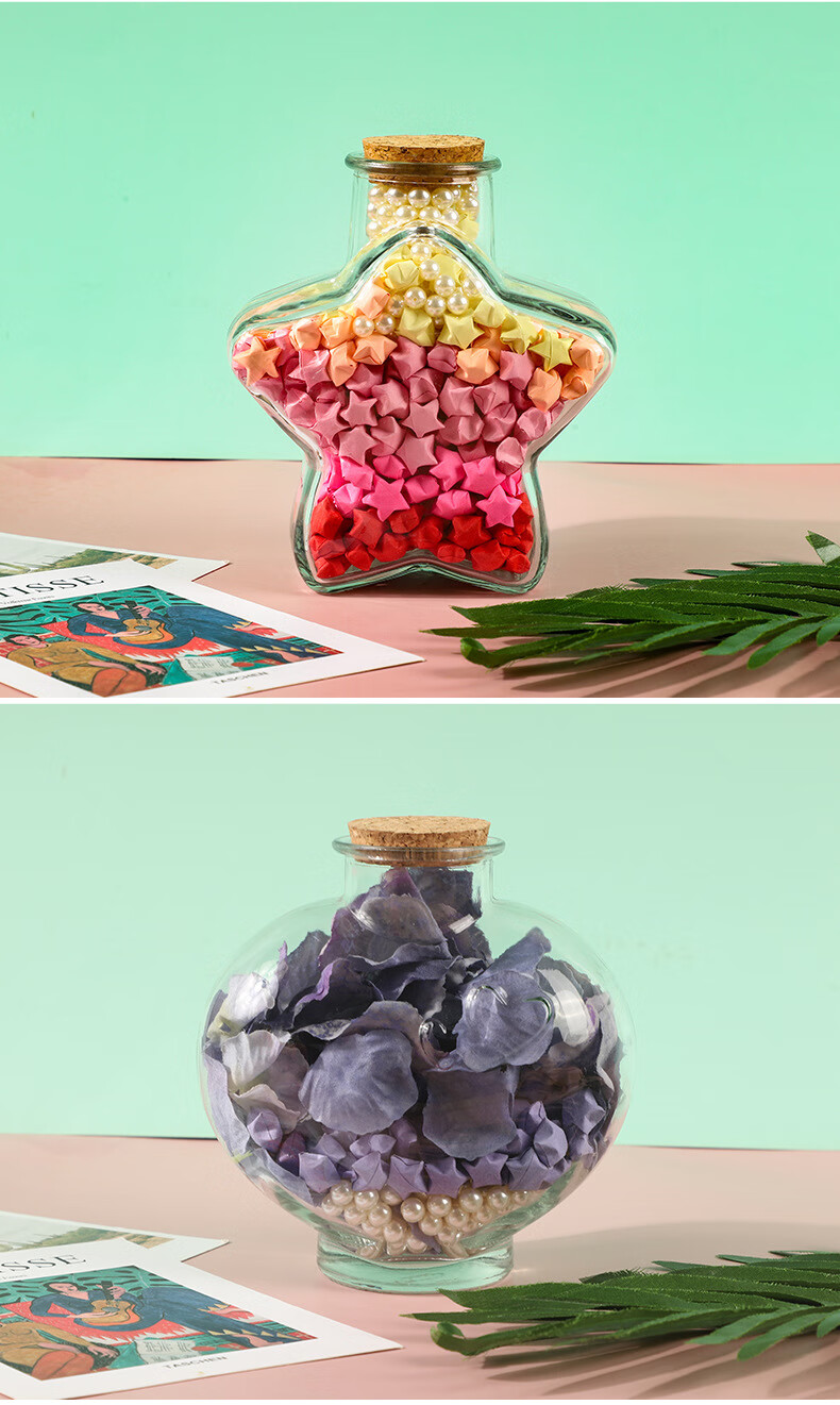 New Year Creative Glass Wishing Bottle Ocean Bottle Lucky Star Bottle Drift Bottle Rainbow Bottle Transparent Shell Bottle Student Gift Christmas Tree Wishing Bottle-Plastic Style Set