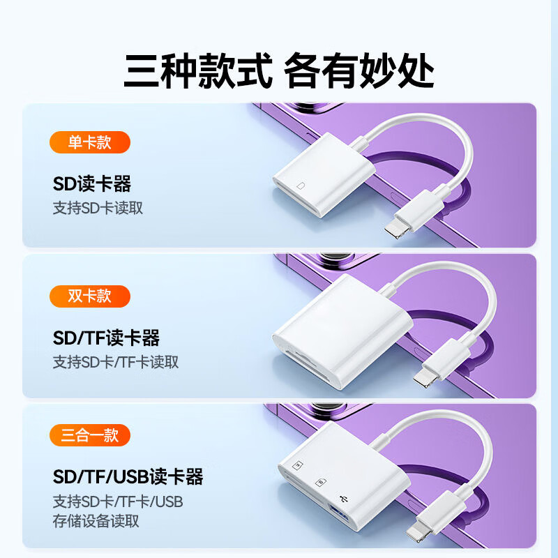 All-in-one card reader SD/TF card U disk CCD camera card suitable for Apple Huawei Samsung tablet Xiaomi Android series type-c interface can read SD/TF/U disk
