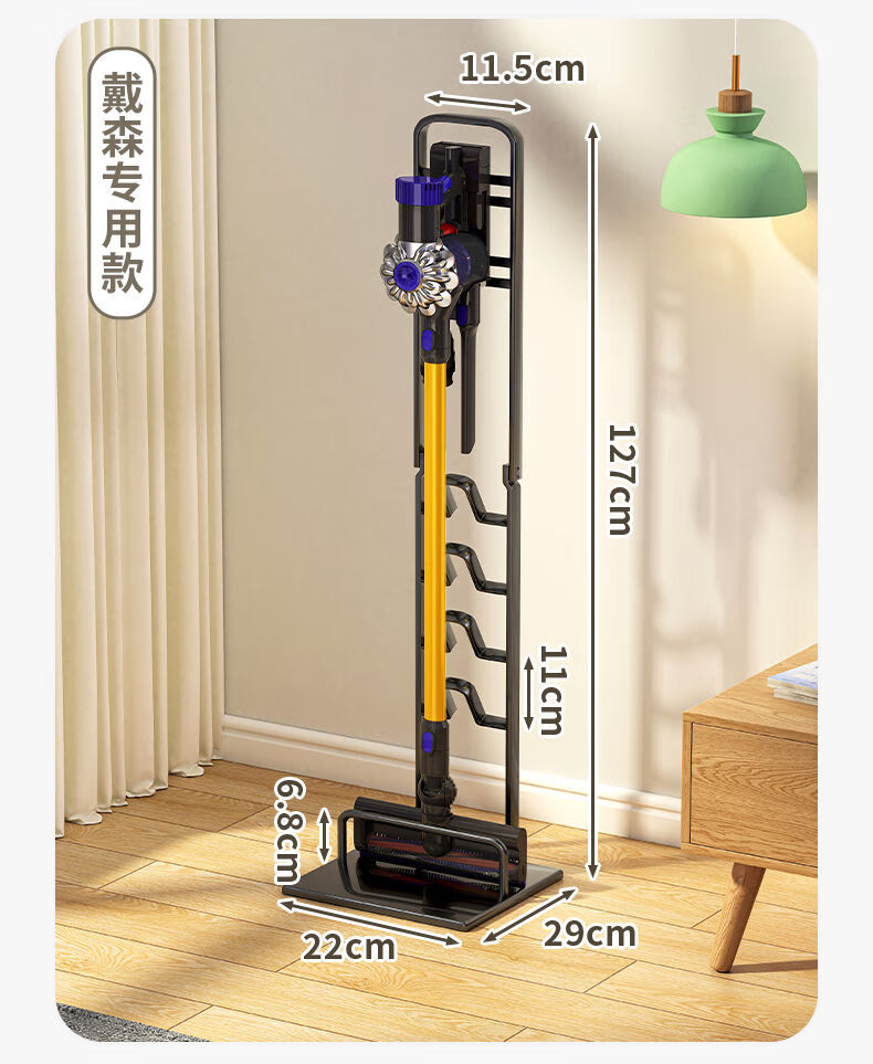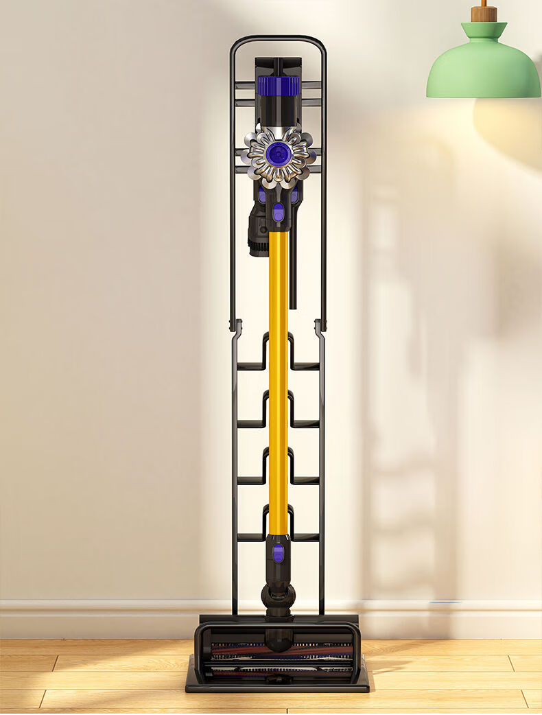 Danlan Dyson vacuum cleaner stand v8v12 hanger household rack storage rack load-bearing punch-free layered home grid triangle style - black