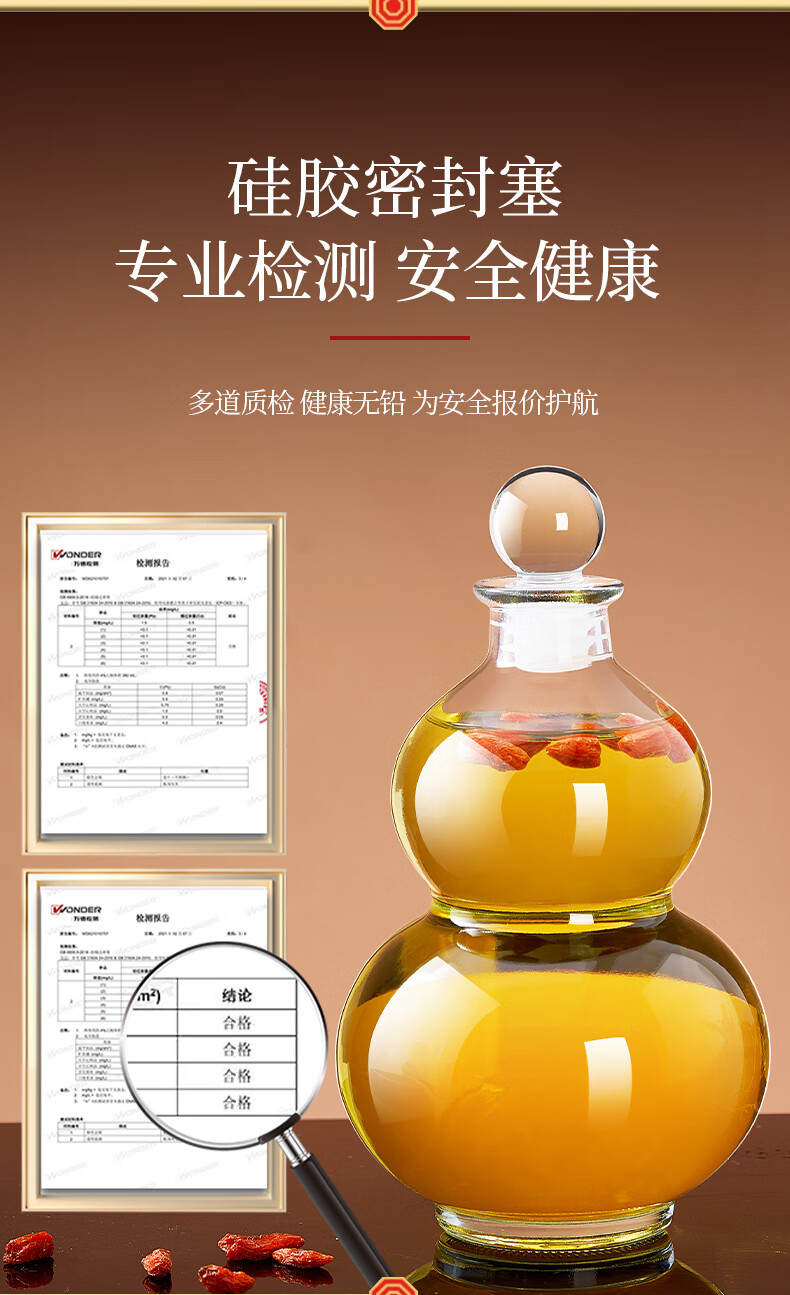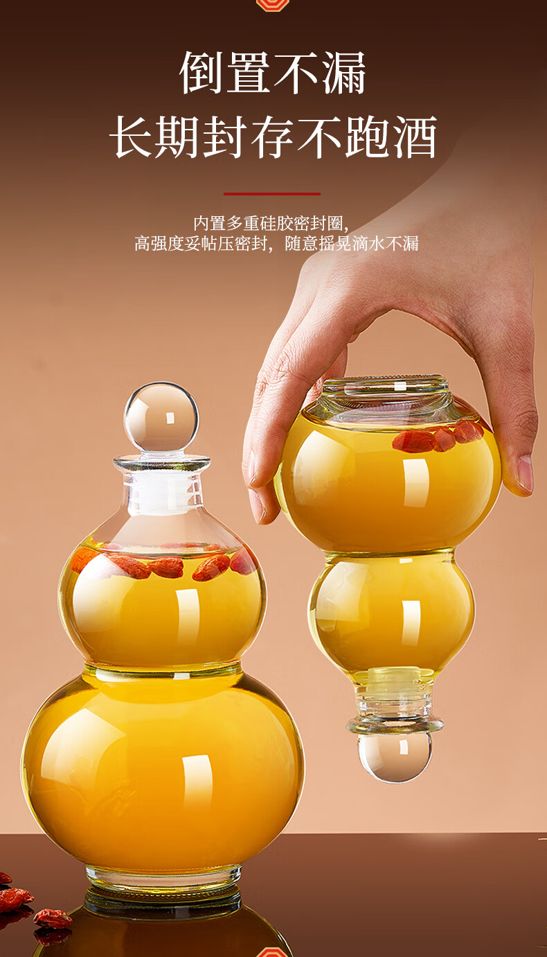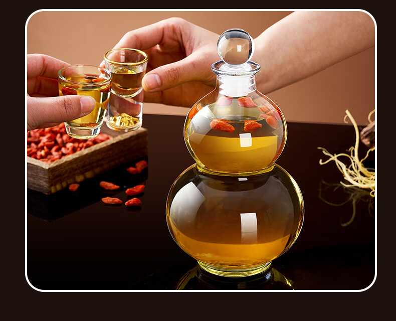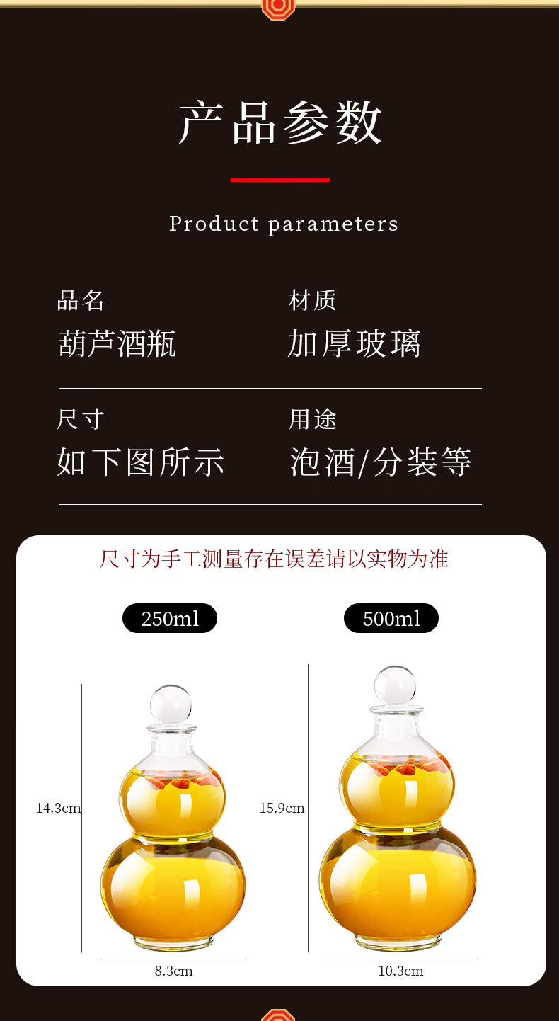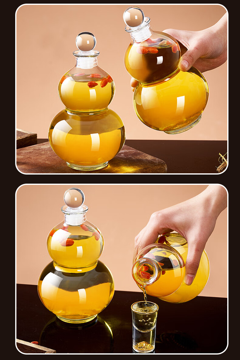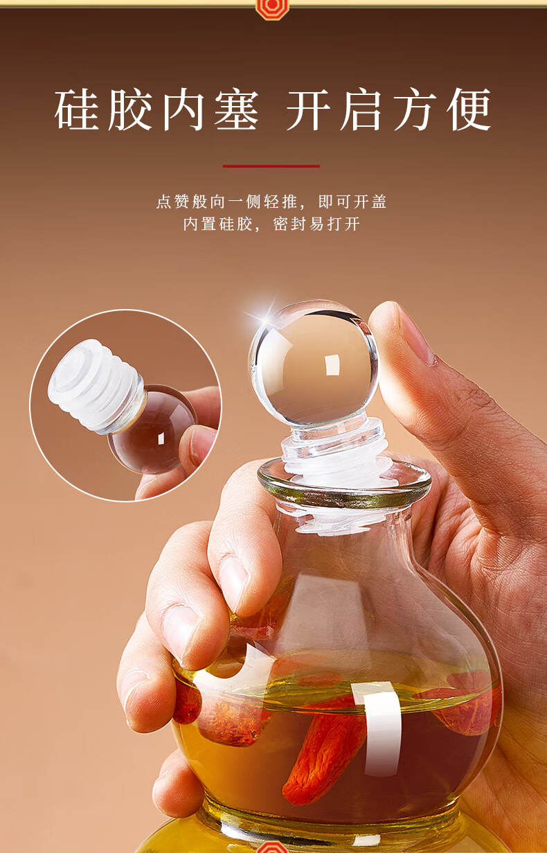 Quark glass wine bottle, empty bottle, long-term soaking wine, white wine pot, wine storage, sealed food-grade storage wine packaging container, wooden cover, 500ml, two packs, funnel