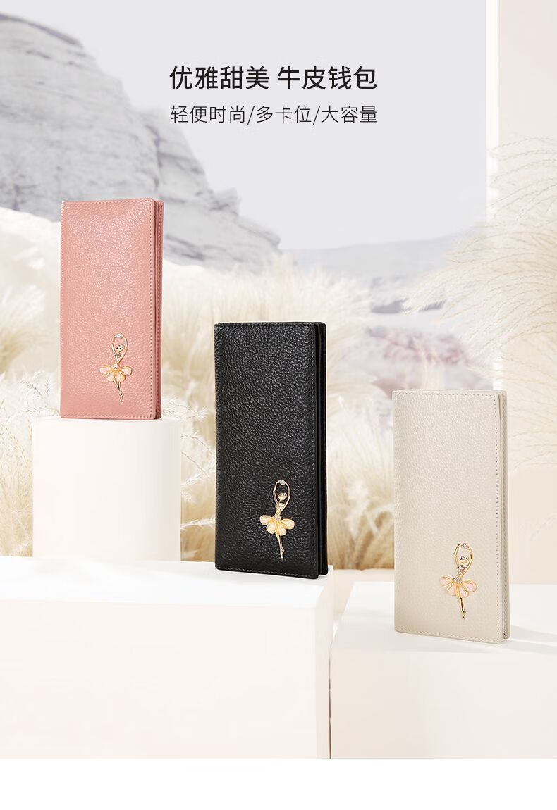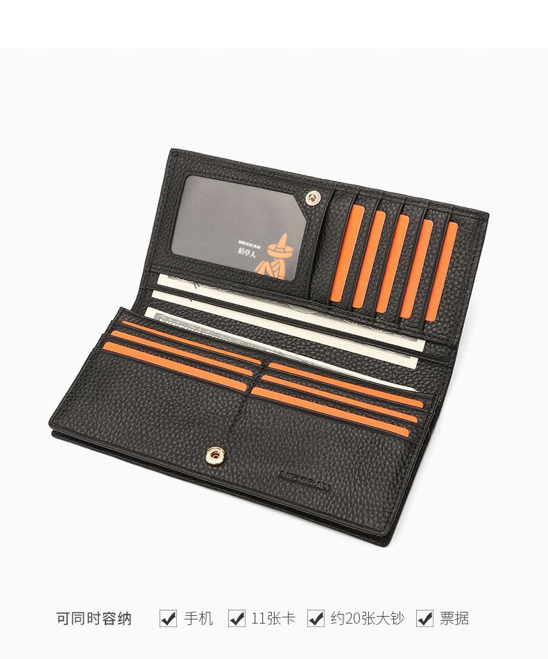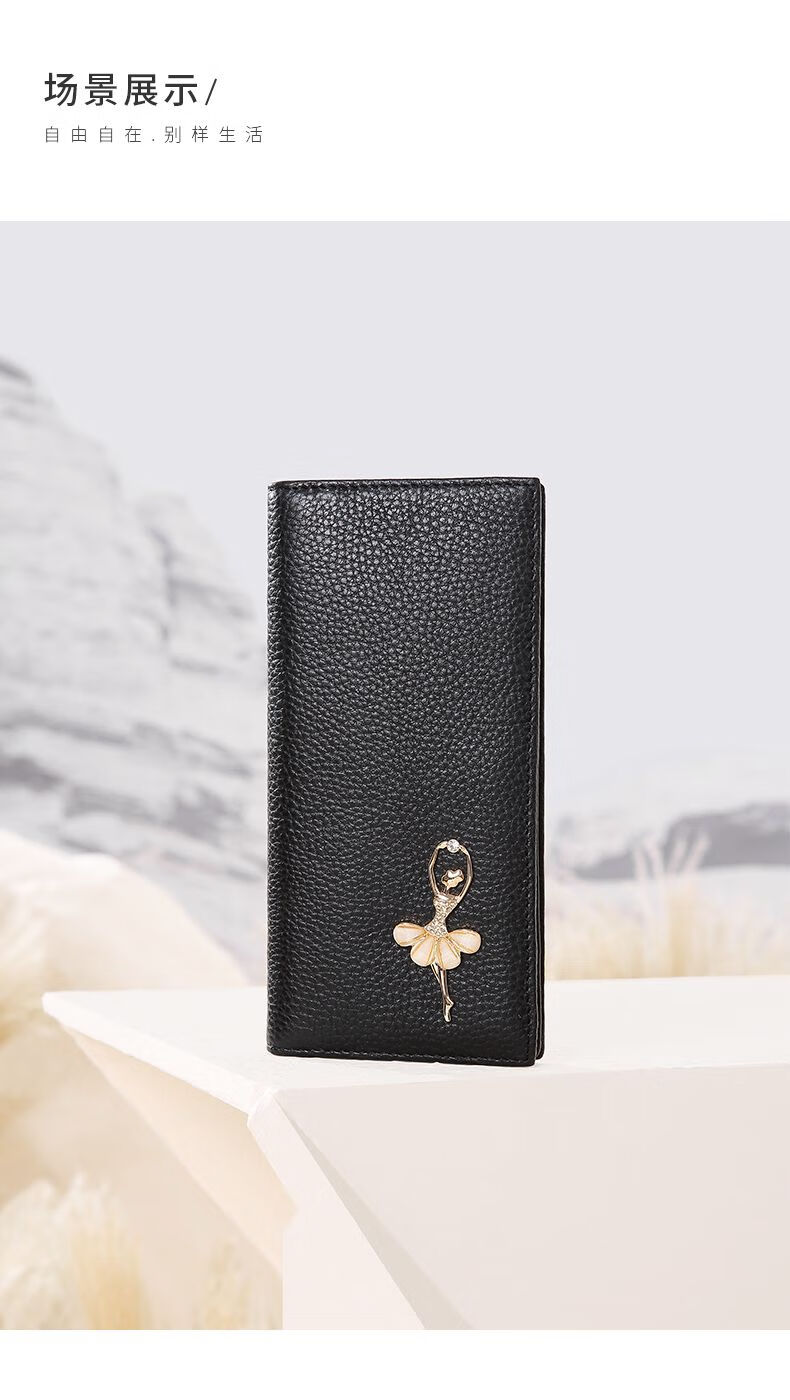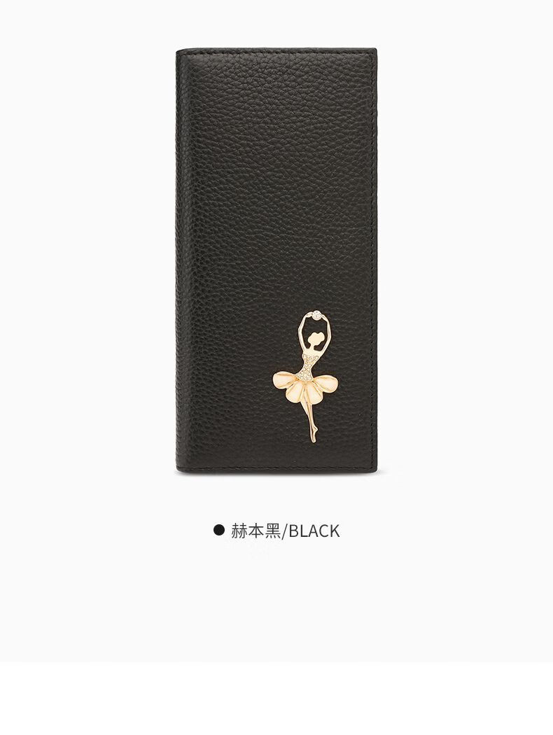 Scarecrow Wallet Women's New Genuine Leather Coin Wallet Style Women's Clutch Exquisite Long Wallet Card Holder Black