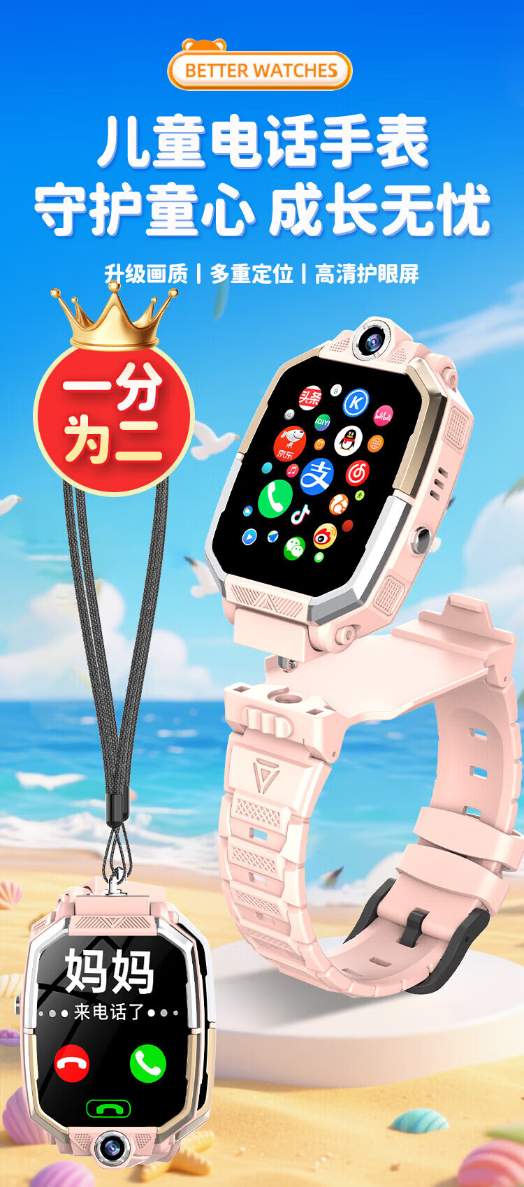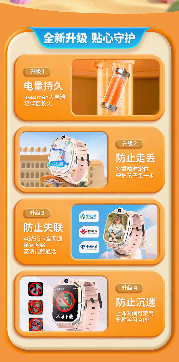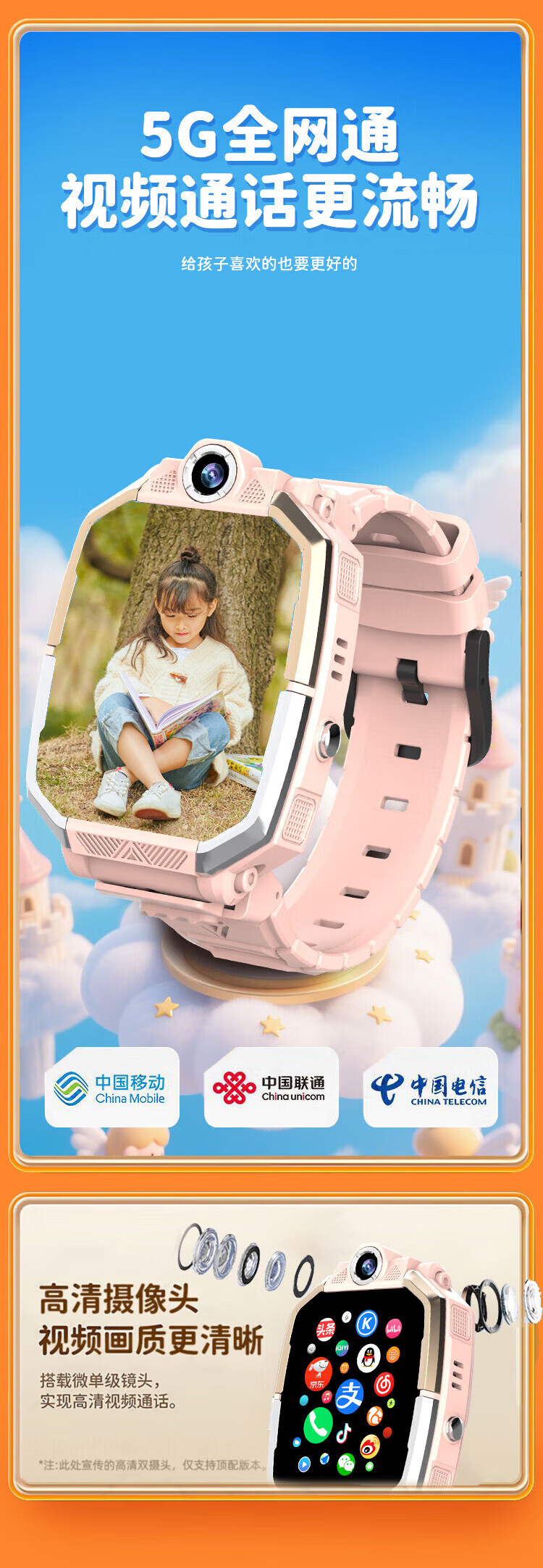 Little Genius Cool Cover 2026 New Anti-addiction 5G Full Netcom Children's Phone Watch Smart Plug-in Card Remote Monitoring Student Primary School Children 3-6-12 Years Old Positioning Waterproof Boys and Girls Supreme Blue 360 Camera WeChat + Large Memory + Large Battery + Long Standby