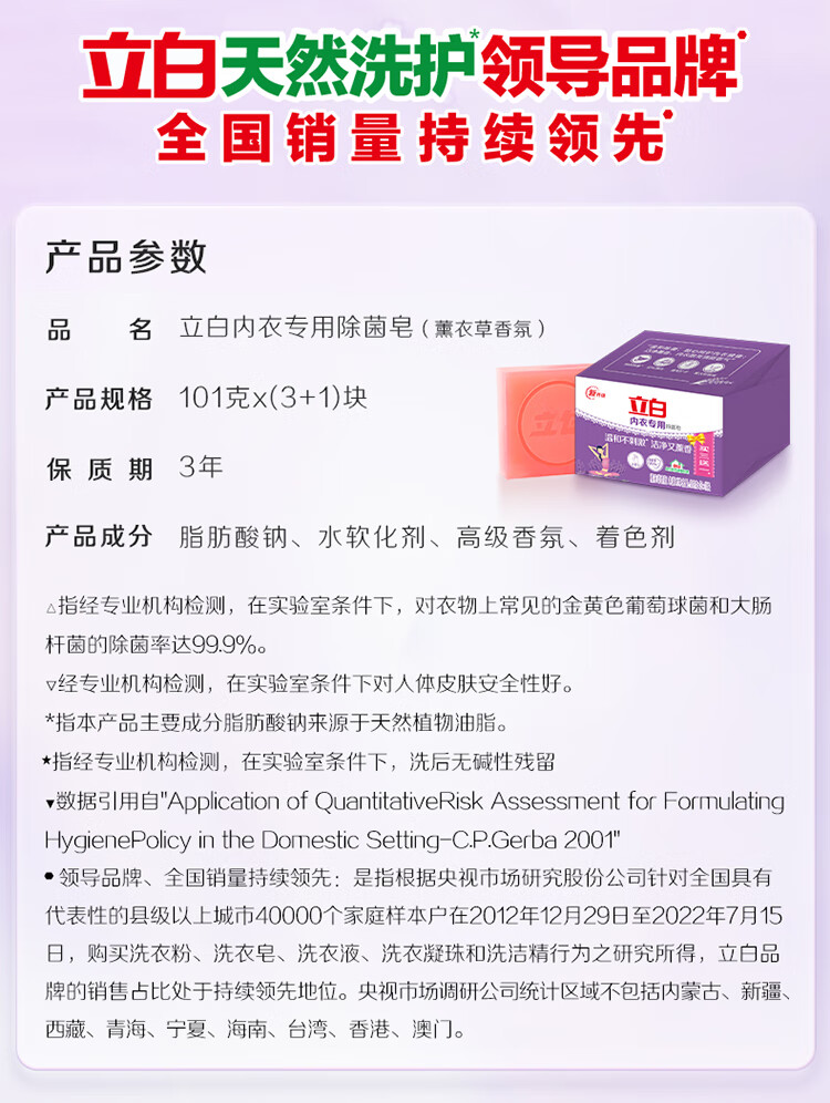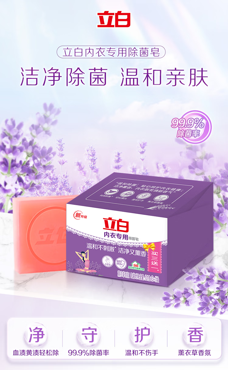 Liby Underwear Soap Women's Soap Household Underwear Antibacterial Soap Cleansing, Stain Removal and Bacteria Removal Rate 99% Sterilizing Laundry Soap Get 4 pieces Underwear Soap 101g*(3+1)