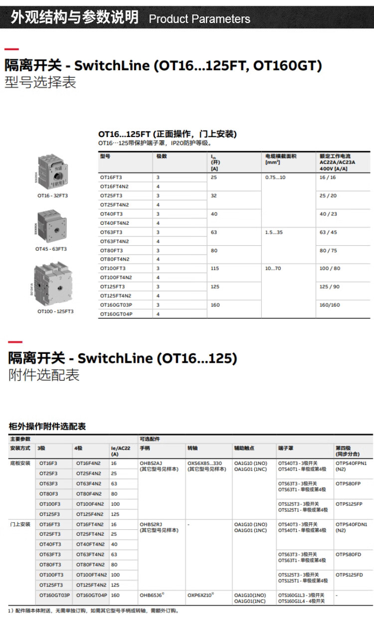 ABB isolation switch OT63FT3/OT80FT3/OT100FT3/0T16FT3/OT40FT3/12 OT40FT3