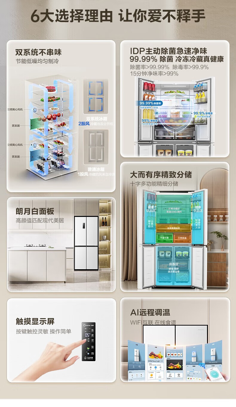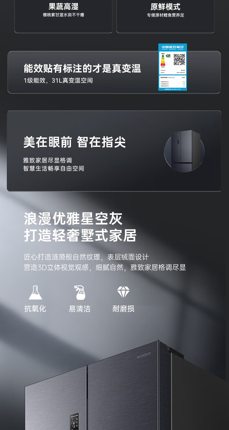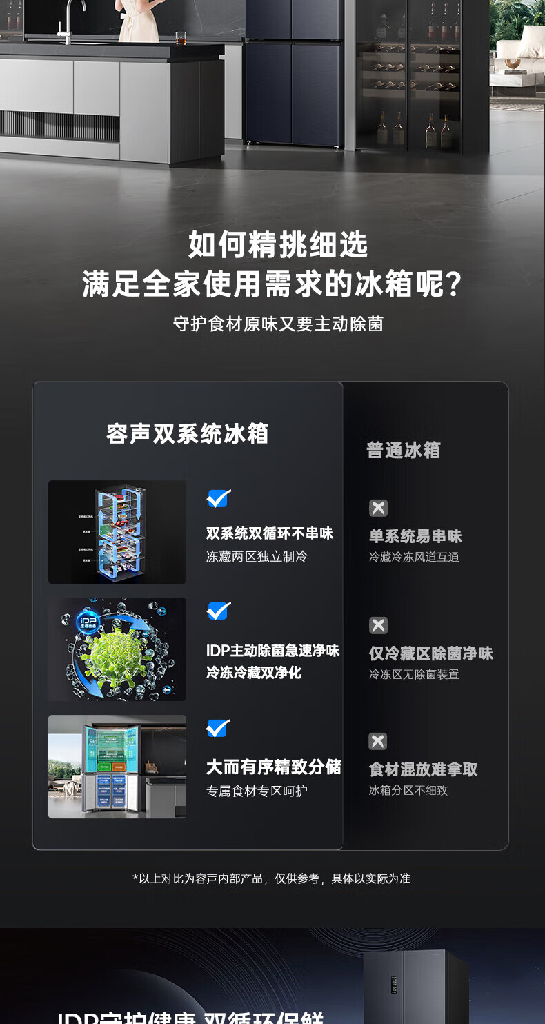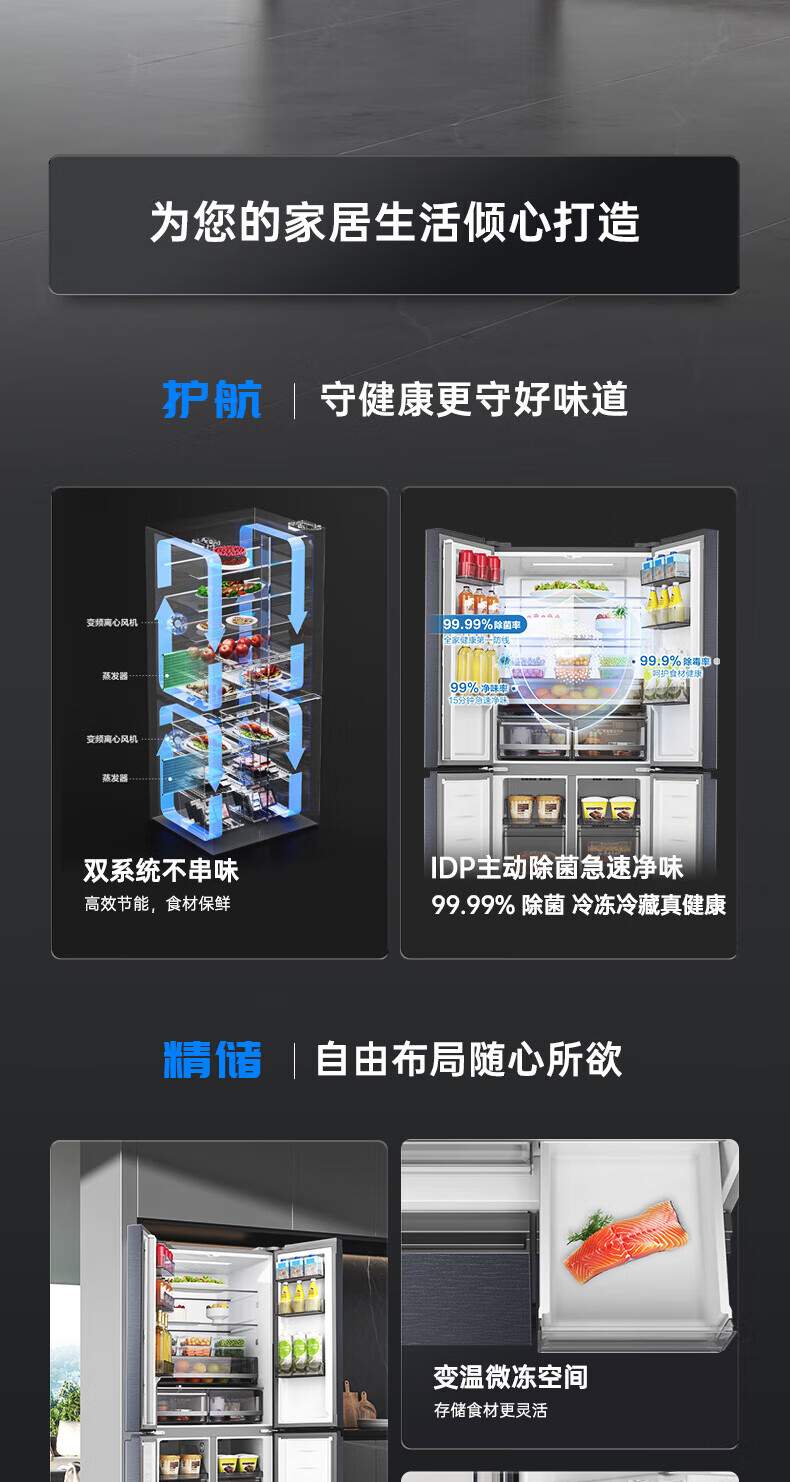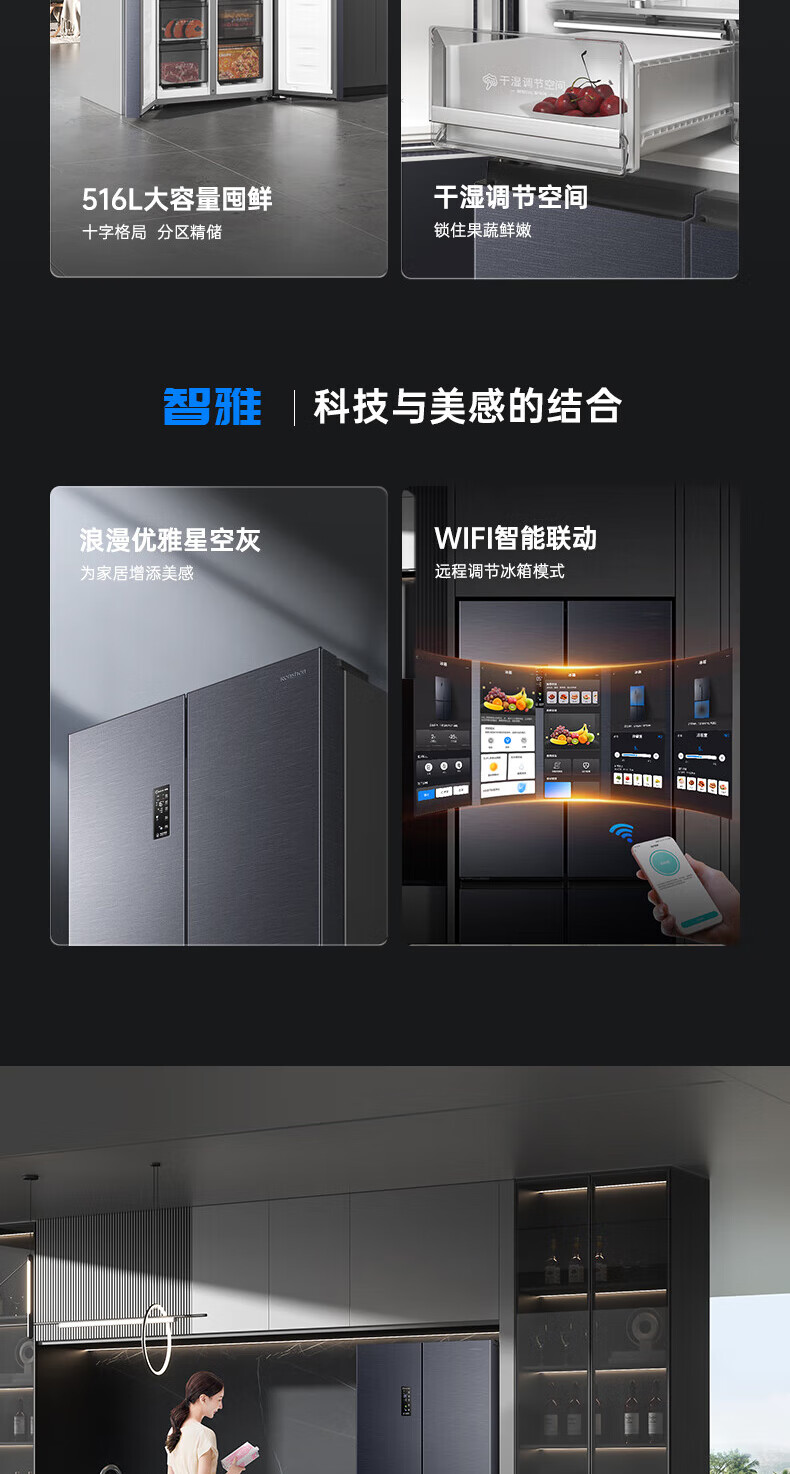Rongsheng Refrigerator 516L Dual Purification Dual System Cross Four-Door Household First-Class Energy Efficiency Air-cooled Frost-free Large Capacity Refrigerator 526 Cross Model BCD-516WD1FPA IDP Active Sterilization 516L Dual Purification Dual System Cross White