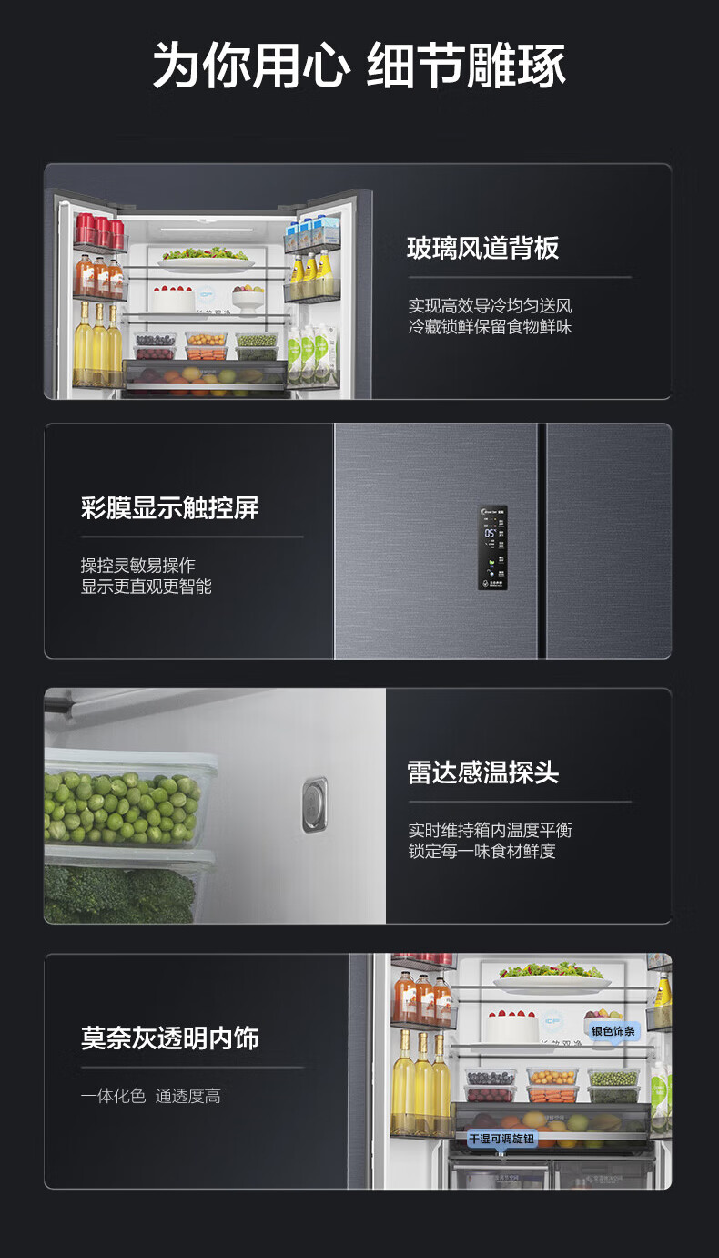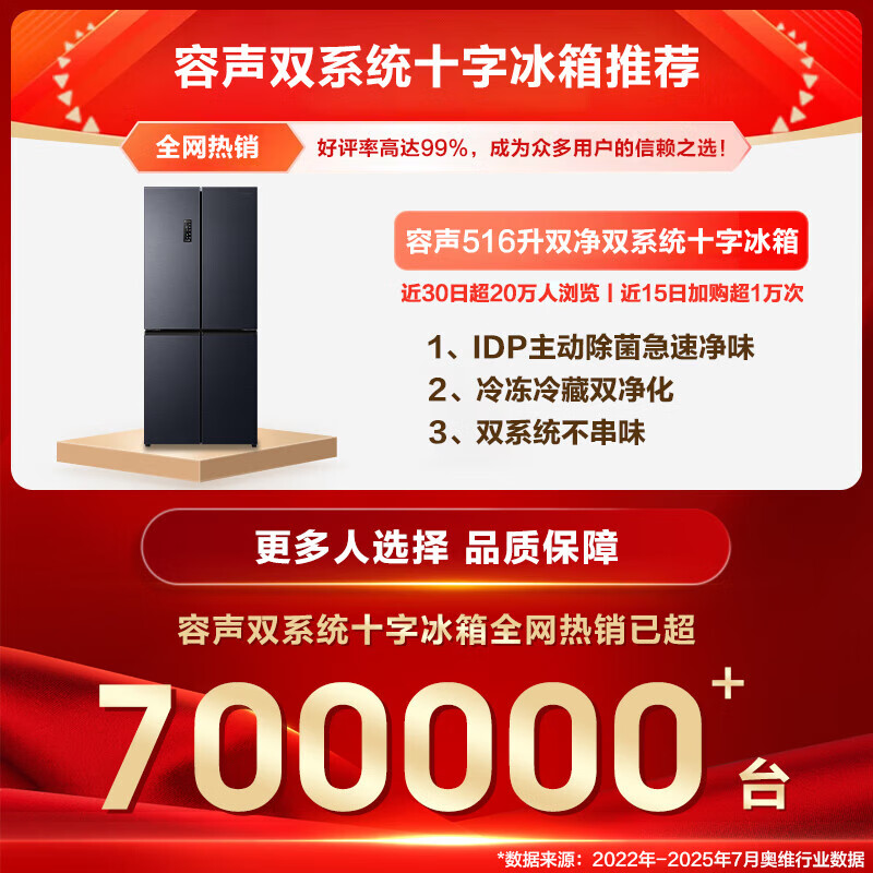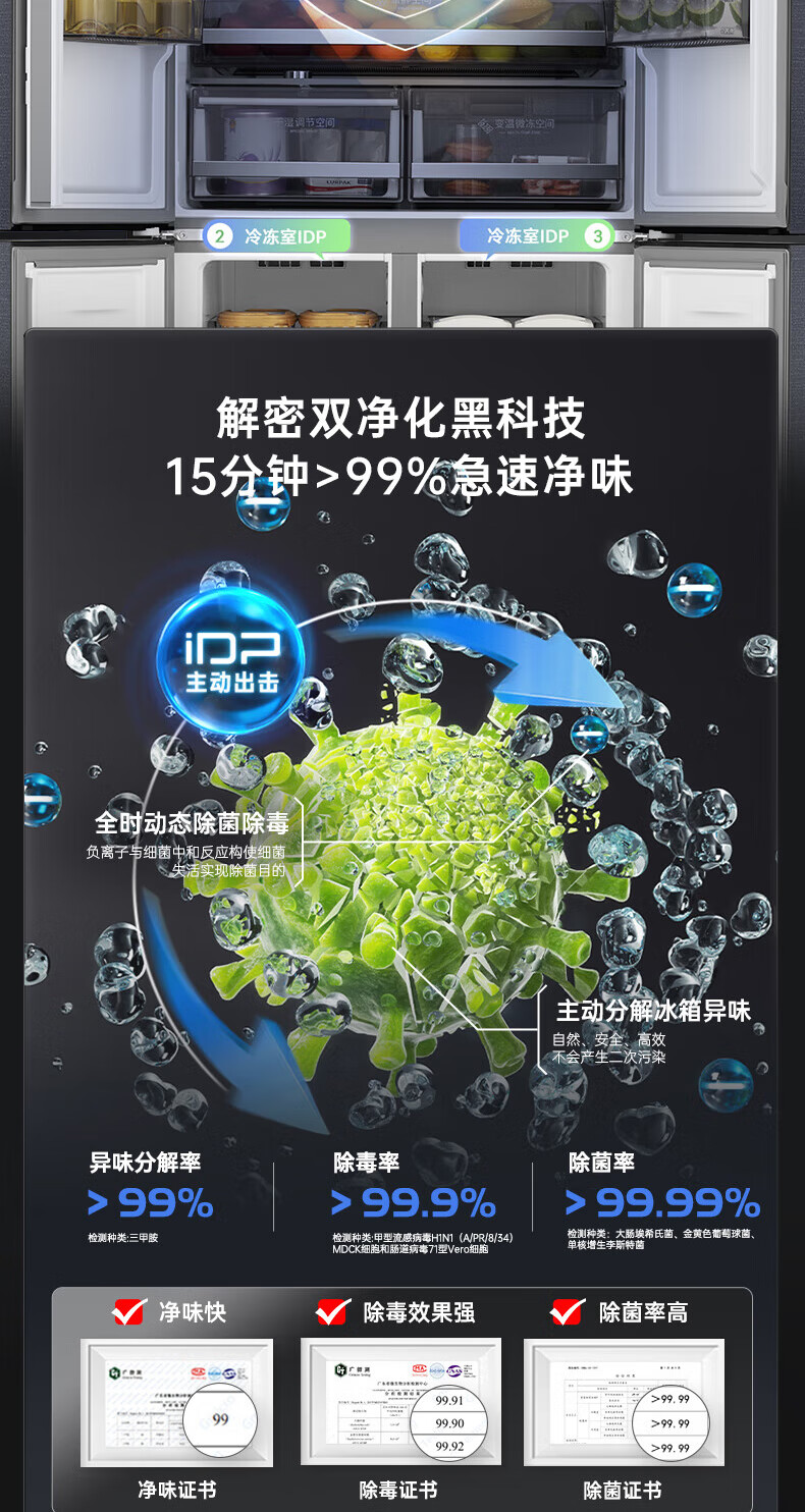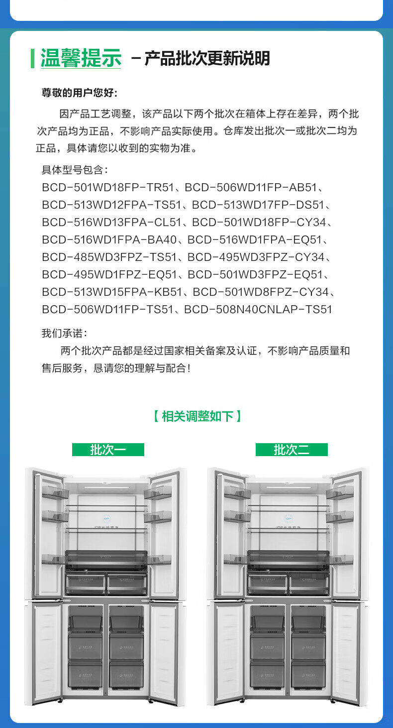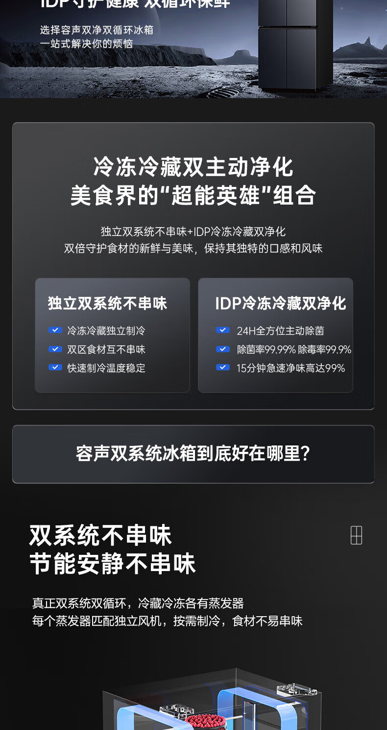 Rongsheng Refrigerator 516L Dual Purification Dual System Cross Four-Door Household First-Class Energy Efficiency Air-cooled Frost-free Large Capacity Refrigerator 526 Cross Model BCD-516WD1FPA IDP Active Sterilization 516L Dual Purification Dual System Cross White