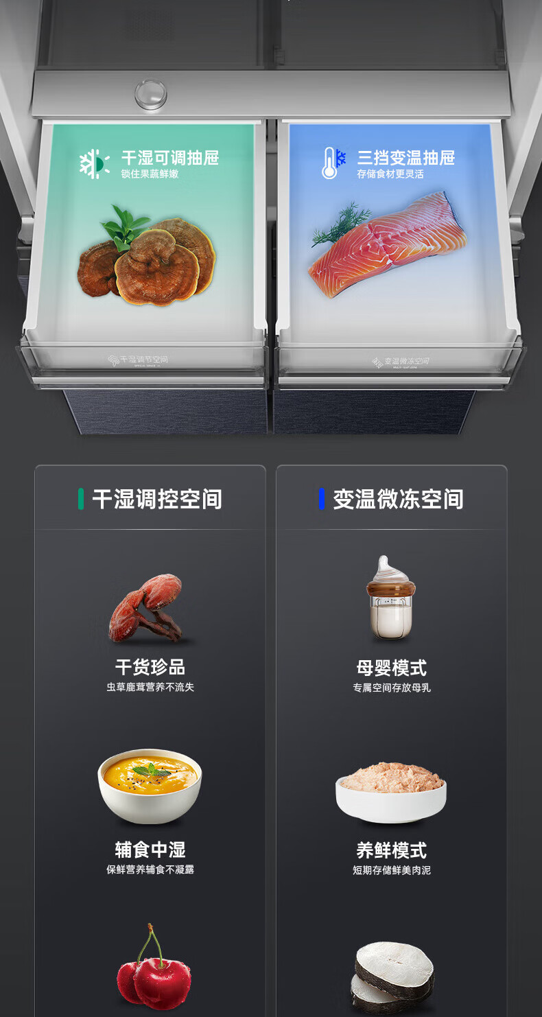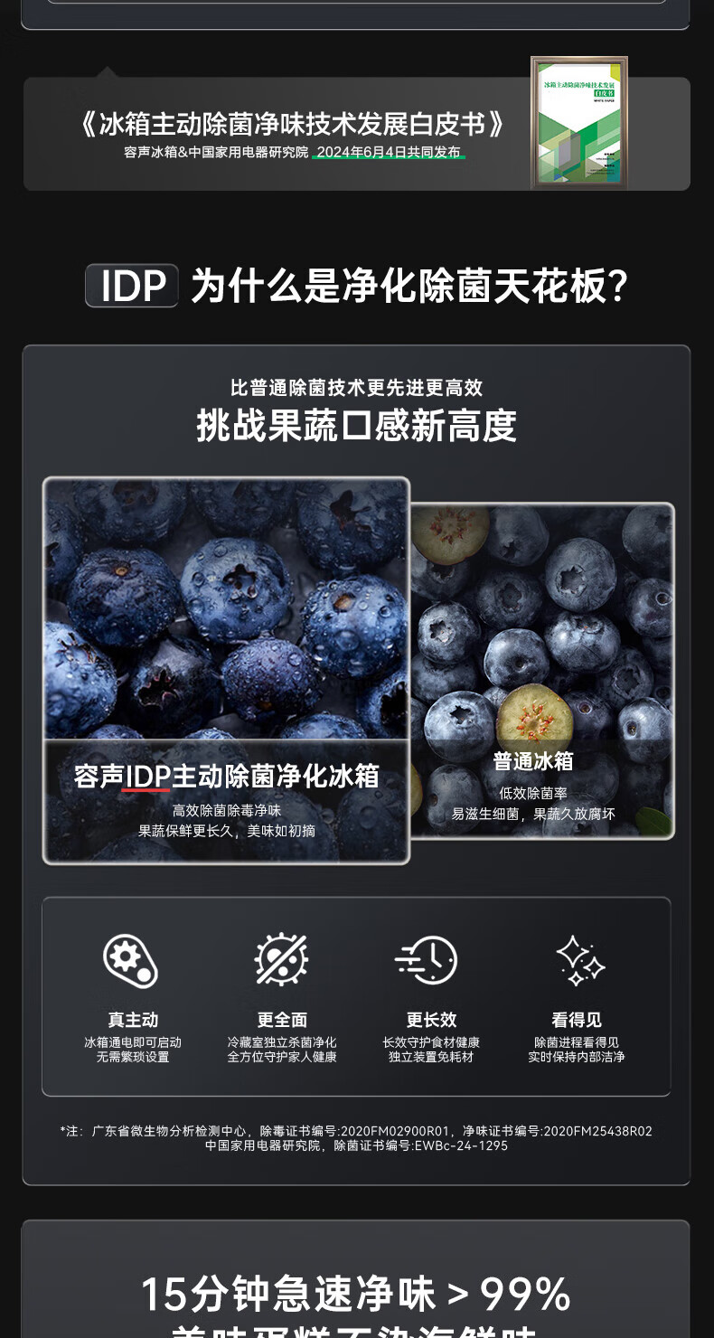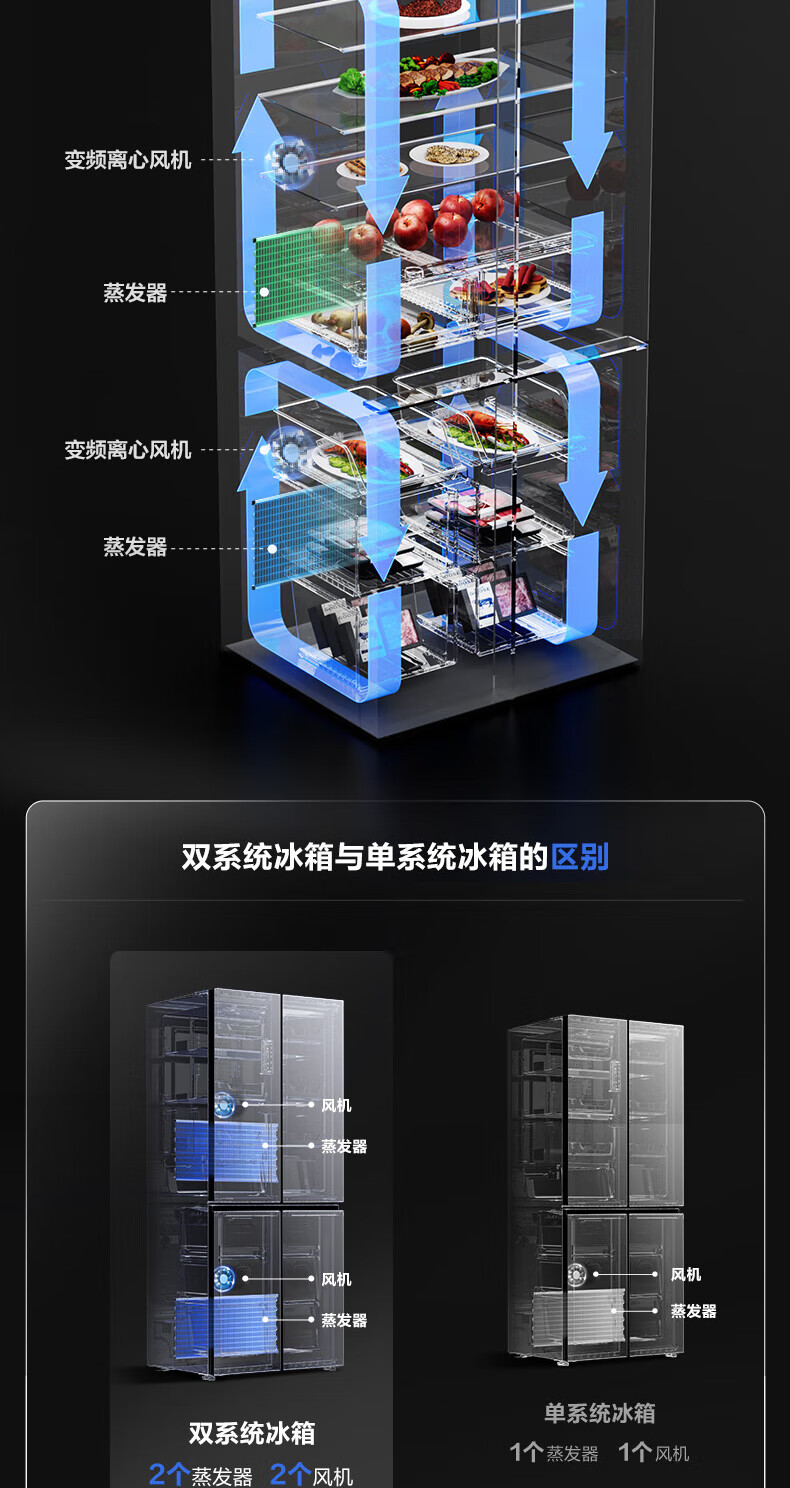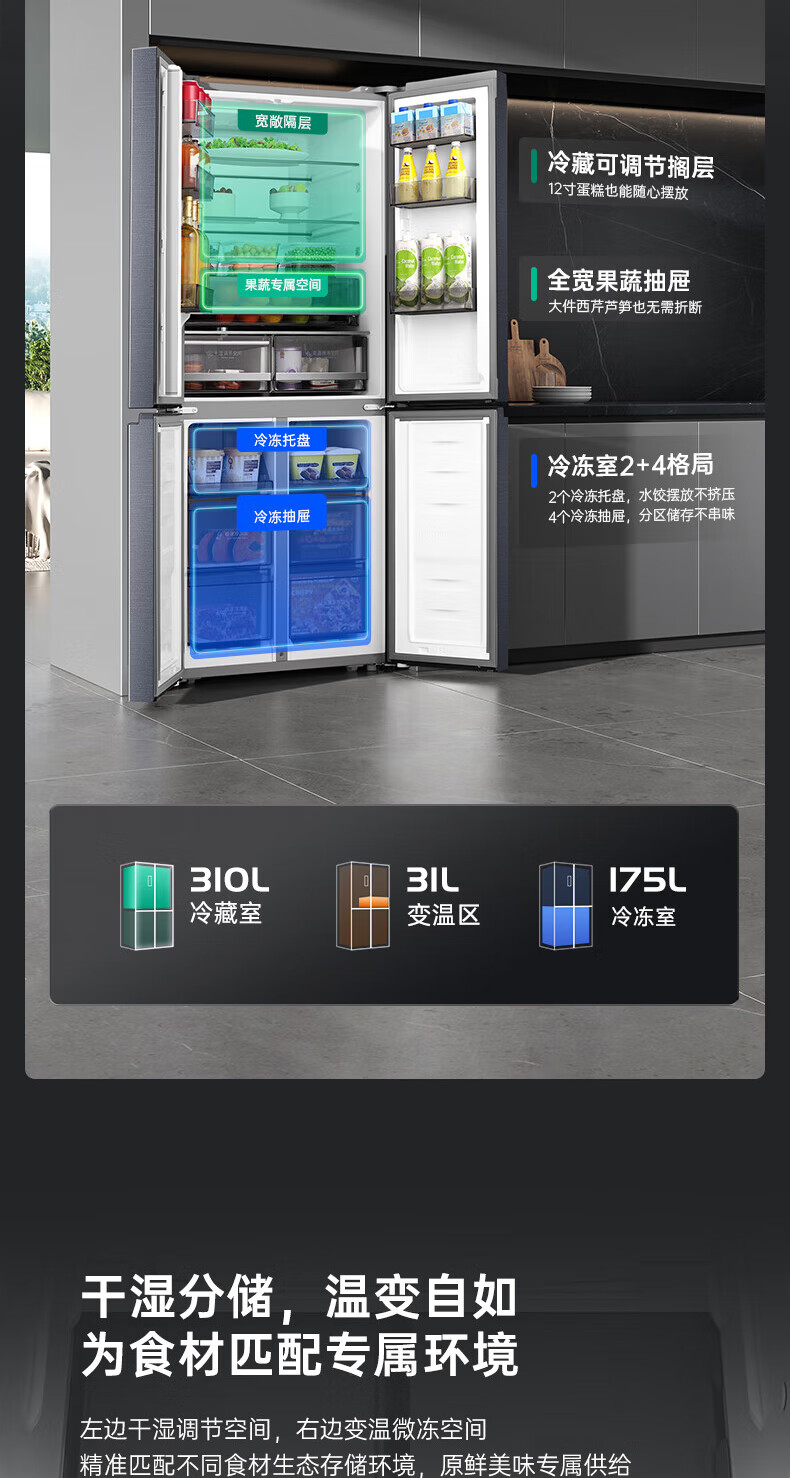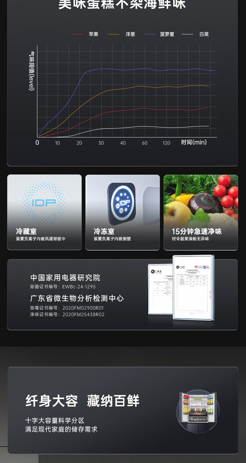 Rongsheng Refrigerator 516L Dual Purification Dual System Cross Four-Door Household First-Class Energy Efficiency Air-cooled Frost-free Large Capacity Refrigerator 526 Cross Model BCD-516WD1FPA IDP Active Sterilization 516L Dual Purification Dual System Cross White
