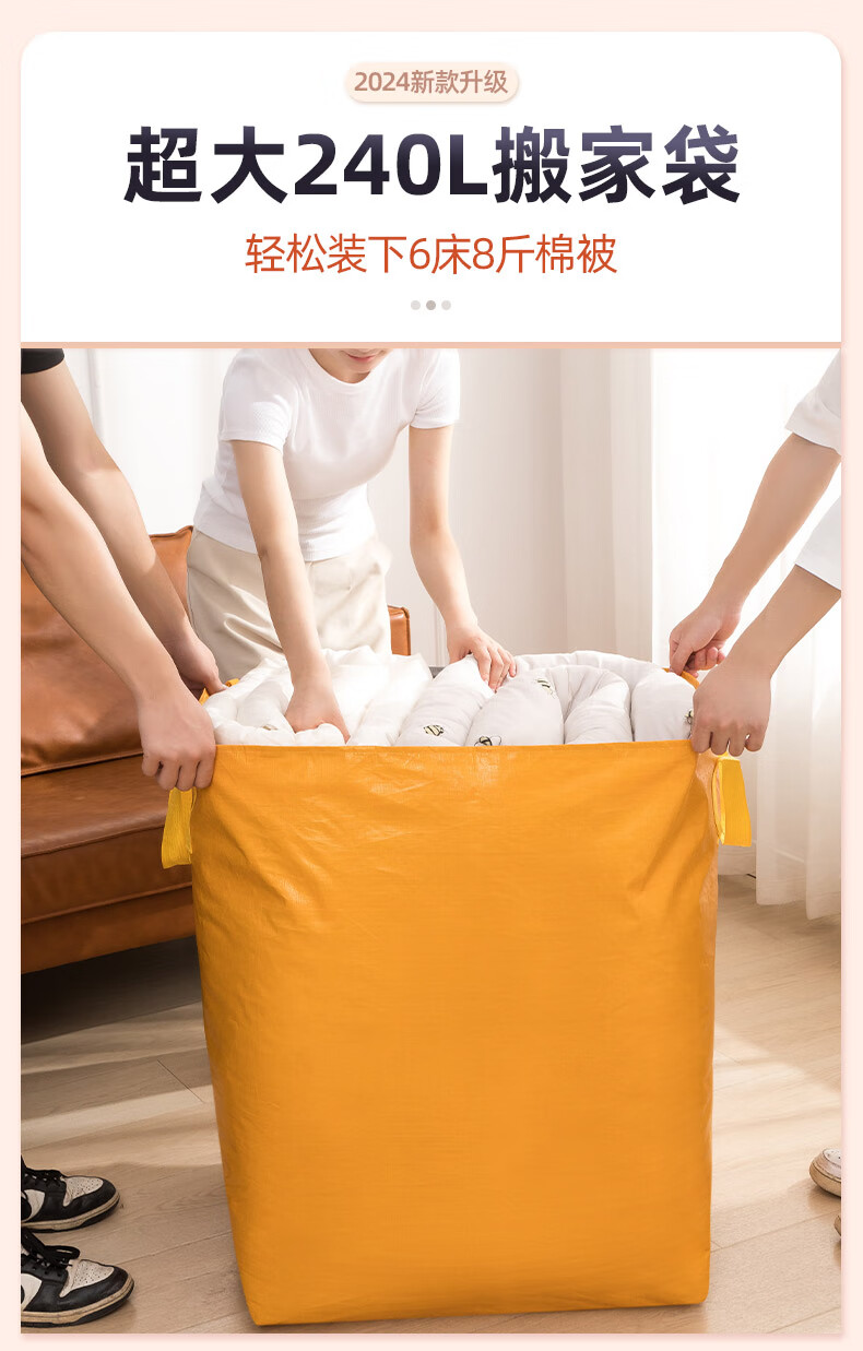 Miling Large Capacity Moving Packing Bag Dormitory Storage Artifact Organizing Box Carton Woven Snakeskin Luggage Express Organizing Yellow - Extra Large 180L Load-bearing/Thickened Waterproof