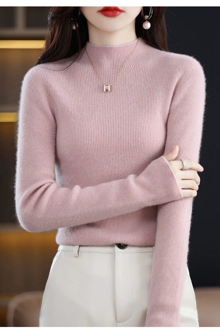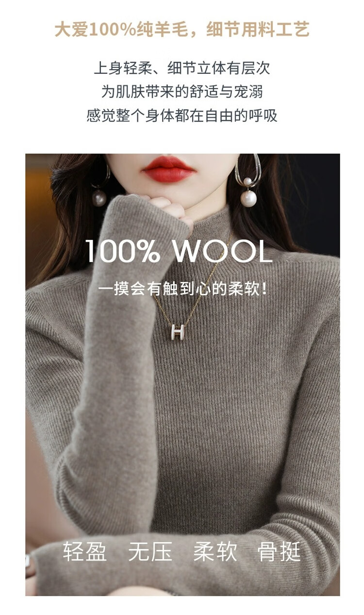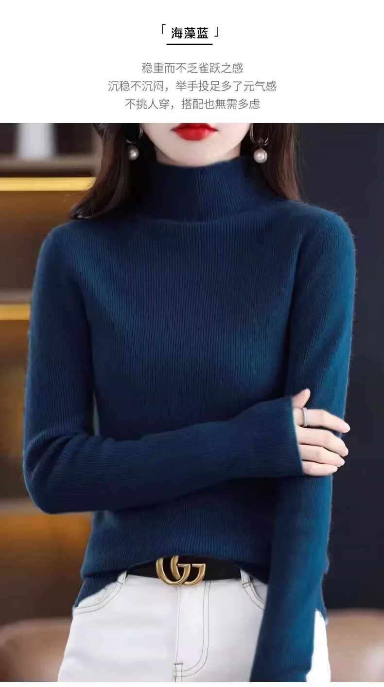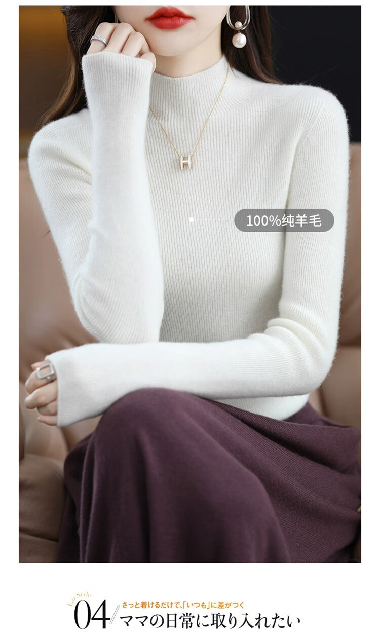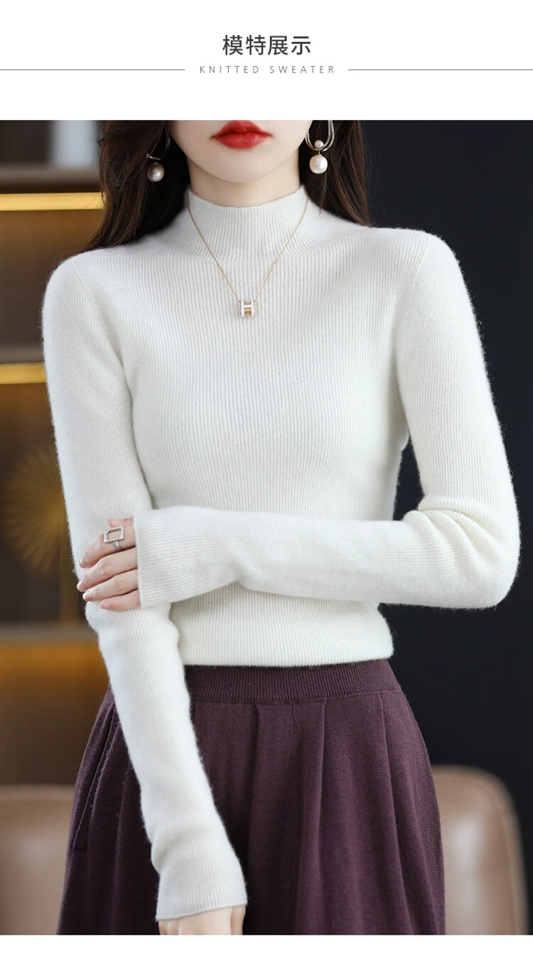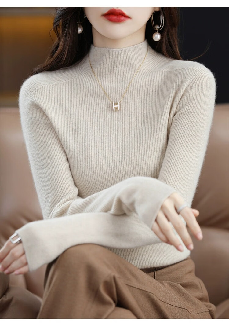 LangSha 100% pure wool sweater for women half turtleneck autumn and winter thickened tight warm sweater with knitted base layer camel XL