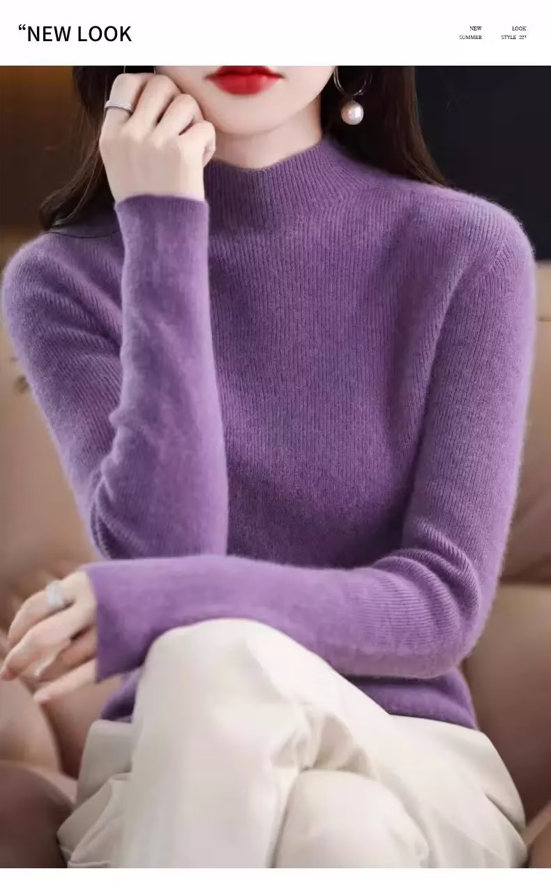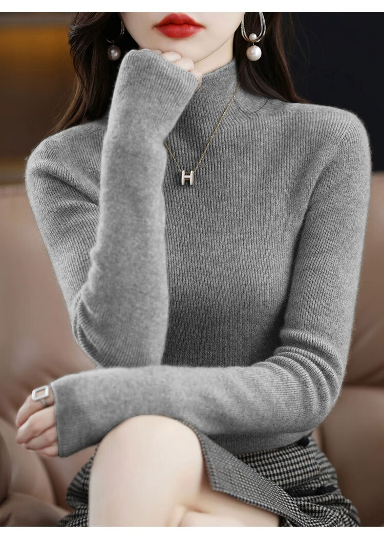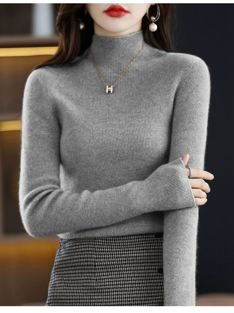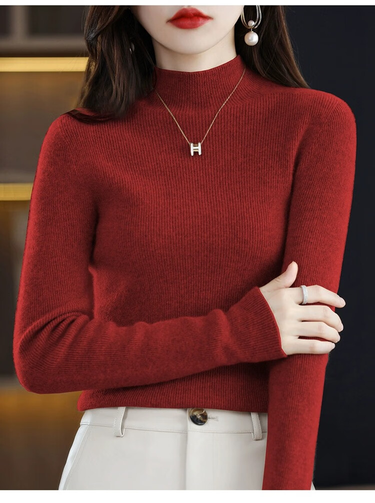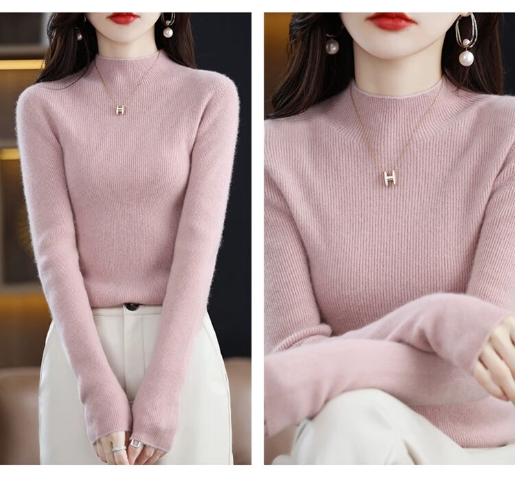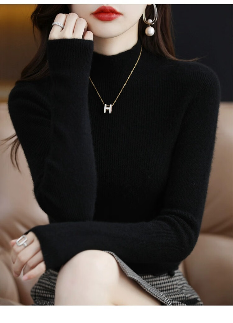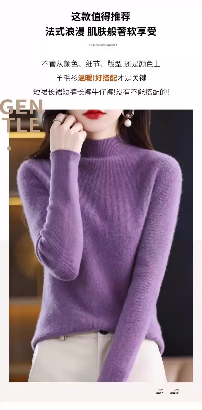 LangSha 100% pure wool sweater for women half turtleneck autumn and winter thickened tight warm sweater with knitted base layer camel XL