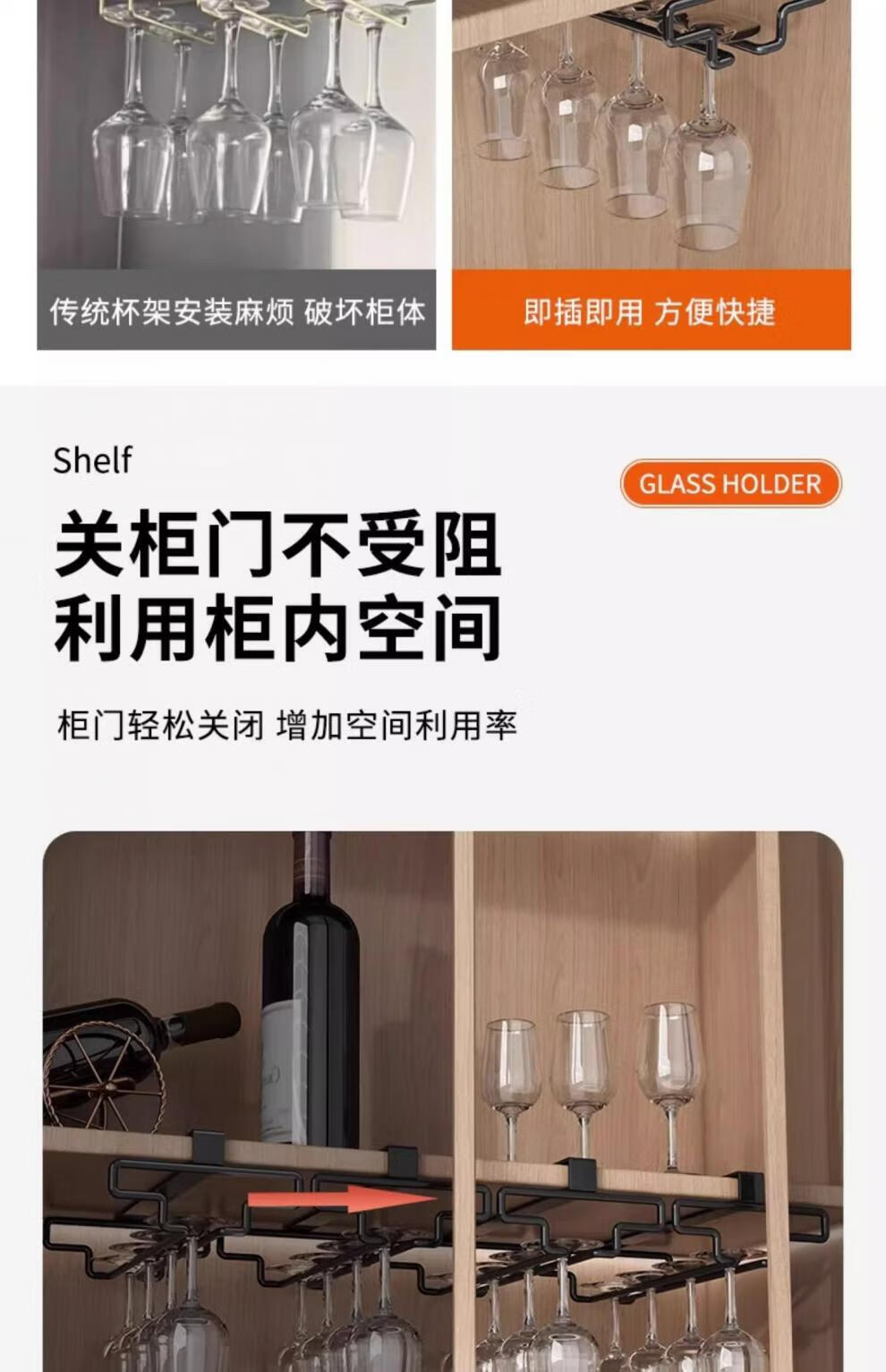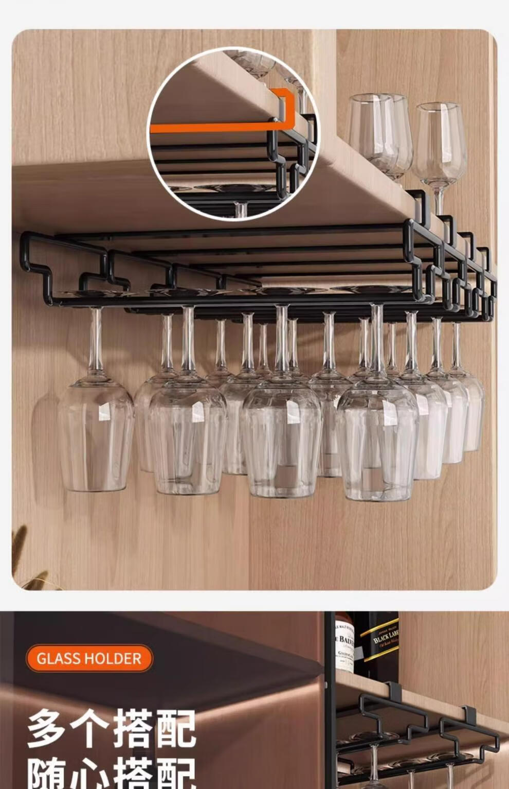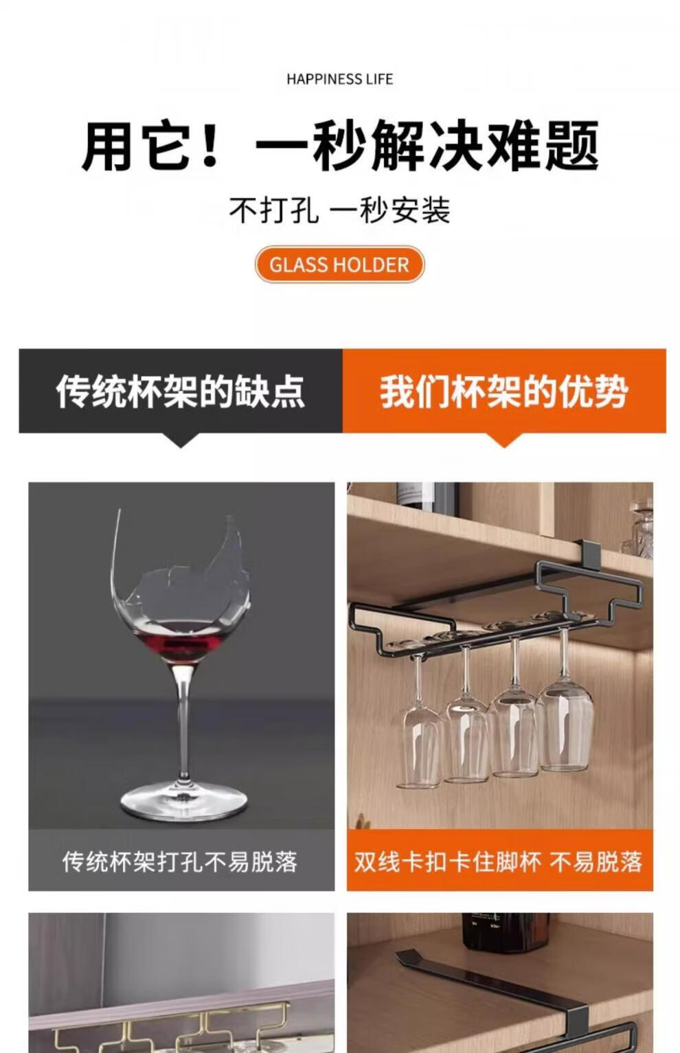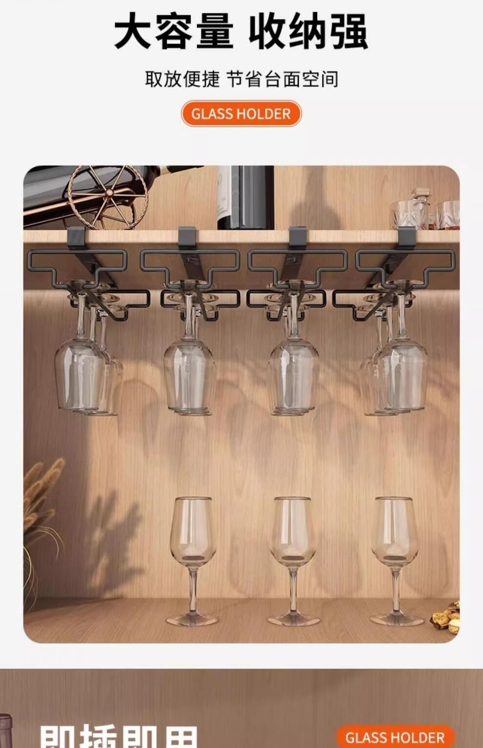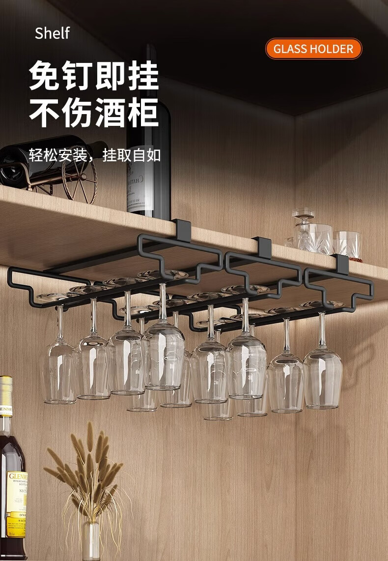 No-punch red wine glass holder, household nail-free wine glass upside-down rack, wine cabinet, goblet storage rack, hanging light luxury ornaments, black red wine glass holder*1