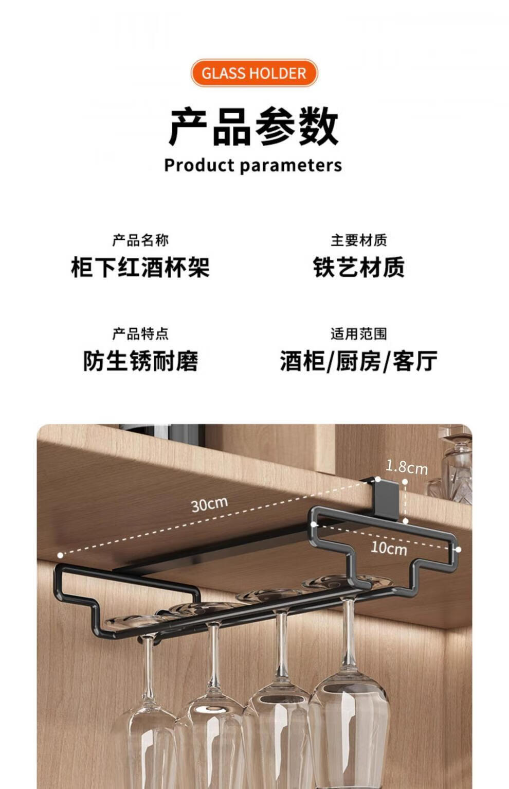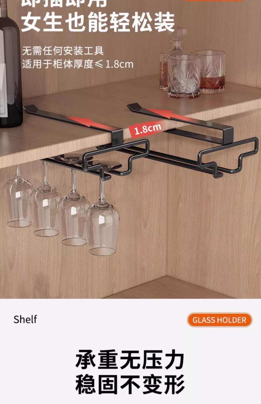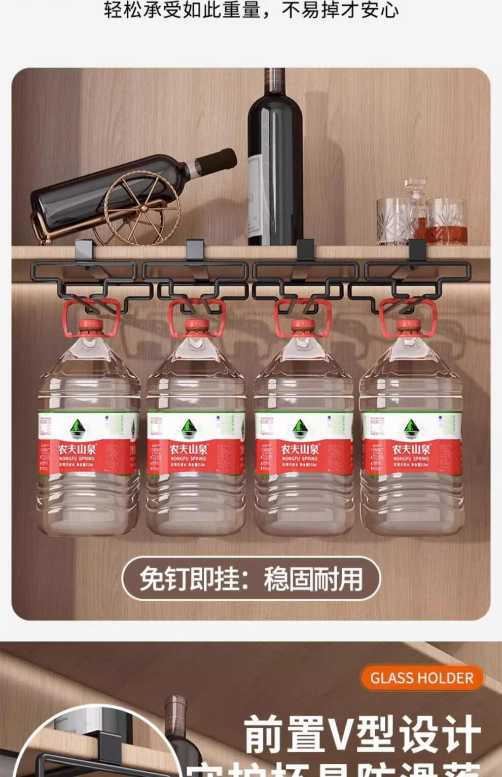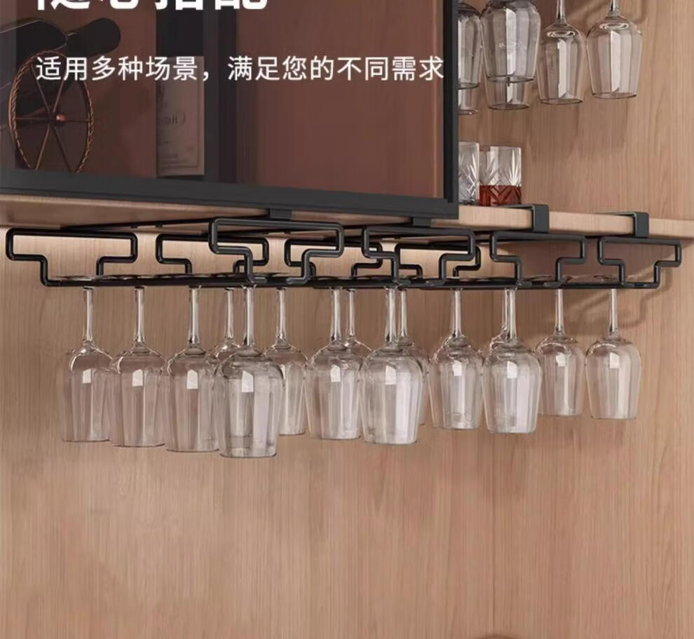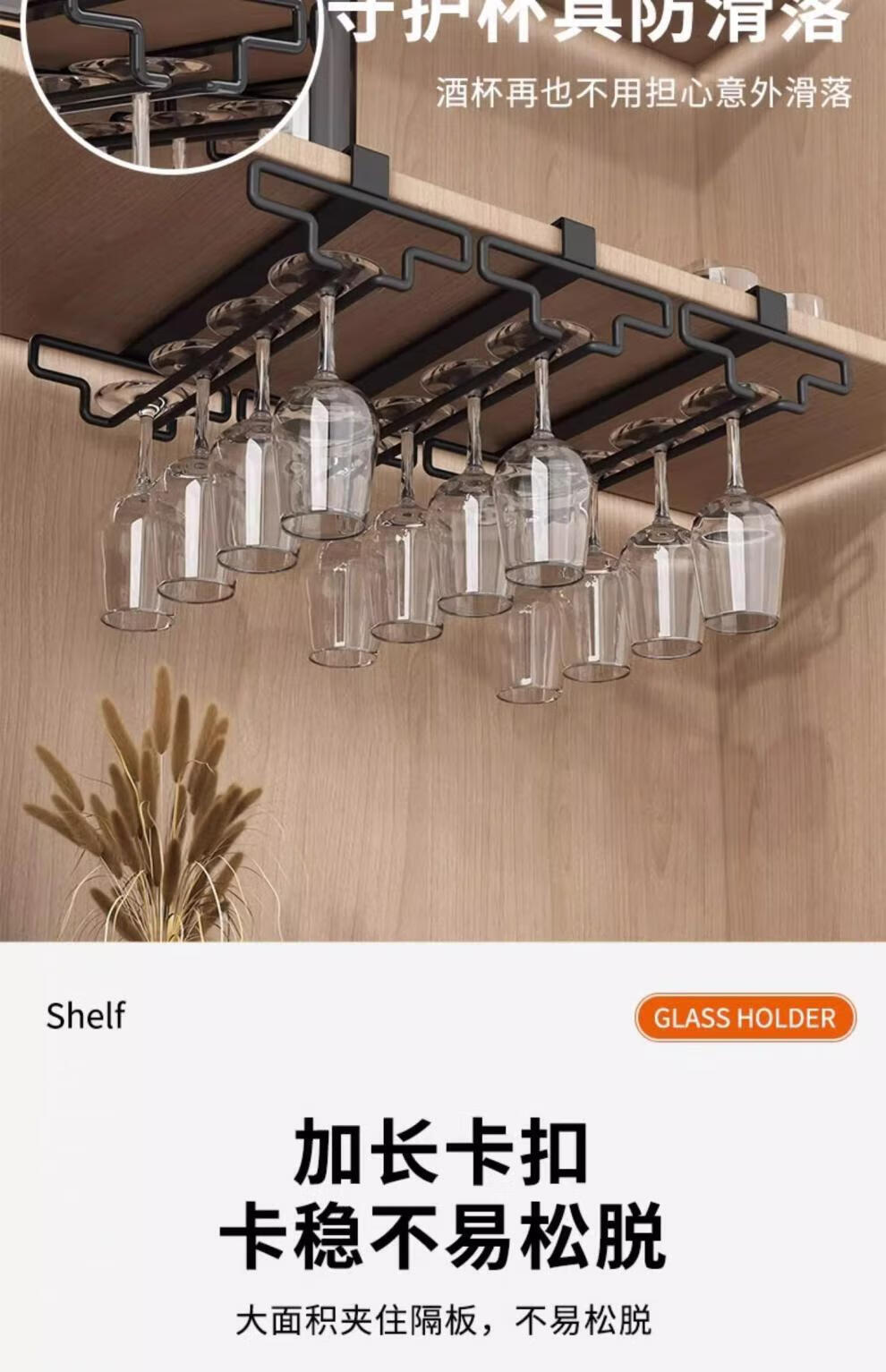 No-punch red wine glass holder, household nail-free wine glass upside-down rack, wine cabinet, goblet storage rack, hanging light luxury ornaments, black red wine glass holder*1