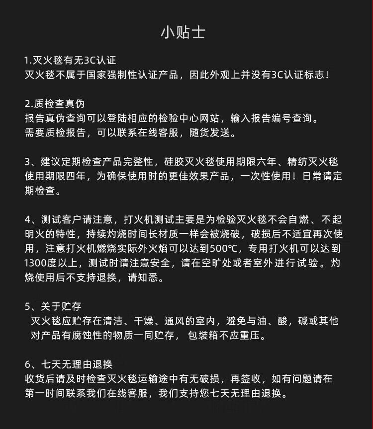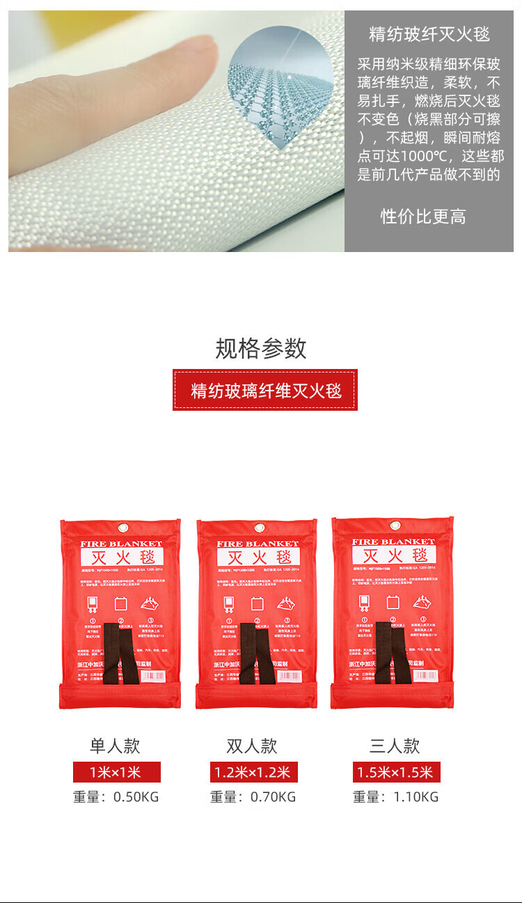 Zhongjia Woan fire-fighting special fire-extinguishing blanket kitchen household fire-fighting certification fiberglass escape fire blanket commercial restaurant national standard EU CE certification | worsted fiberglass fire-extinguishing blanket 1 meter