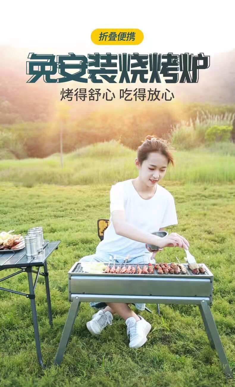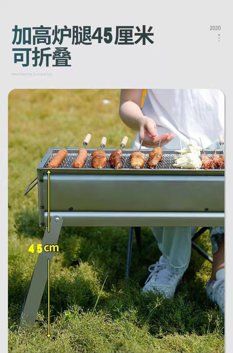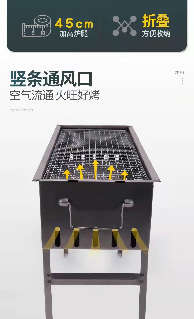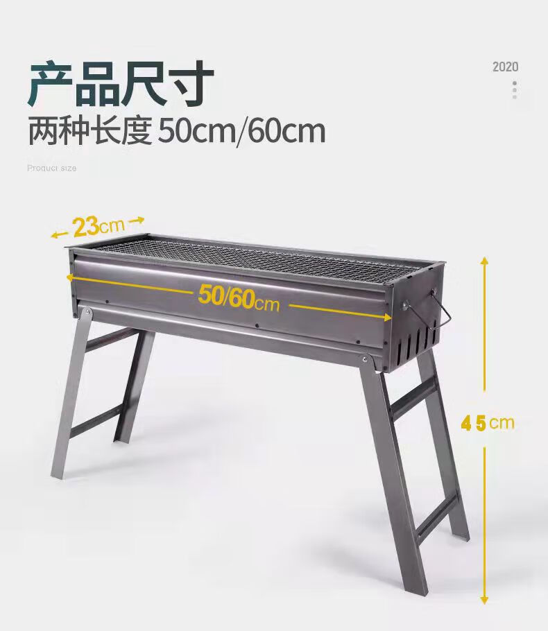 Zhewei barbecue grill household barbecue grill charcoal outdoor rack outdoor extended carbon grill barbecue tools complete set barbecue grill length 48CM with single oven + grill net
