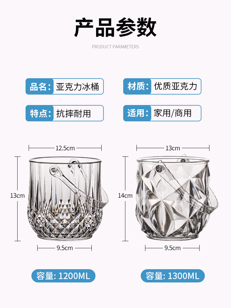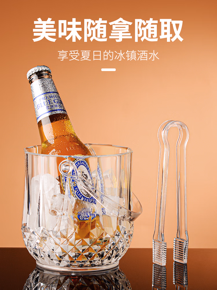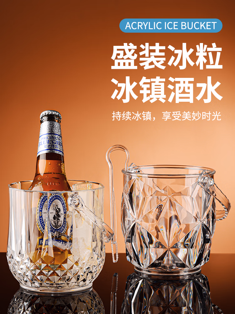 Du Zhunyu ice bucket ice bucket container bar ktv commercial acrylic storage bucket household small beer bucket storage bucket thickened diamond model 1 + ice clip