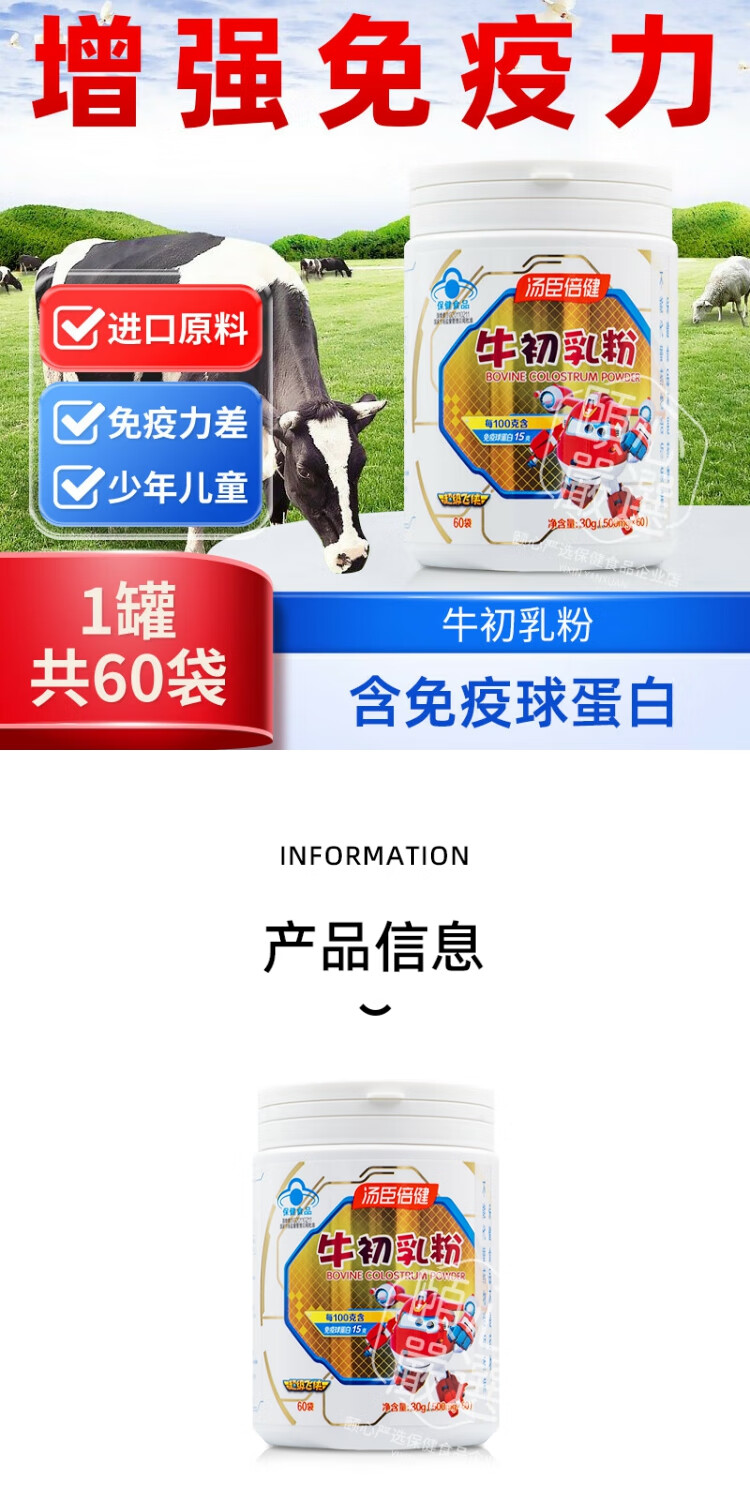 Tomson By-Health Bovine Colostrum Powder 60 Bags Immunity-Enhancing Globulin Children and Elderly Protein Genuine 60 Bags*1 Can (Expires in July 26)