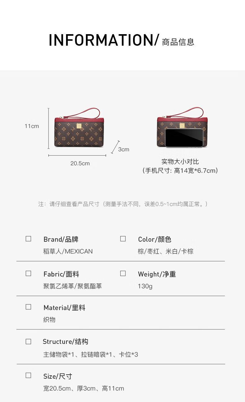 Scarecrow handbag for women, fashionable women's mobile phone bag, small bag, temperament card bag, mother's wallet, exquisite clutch bag, brown_maroon red