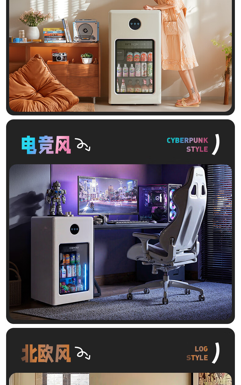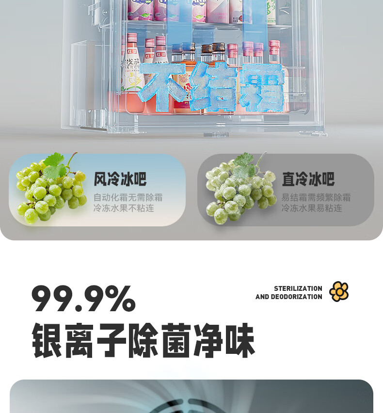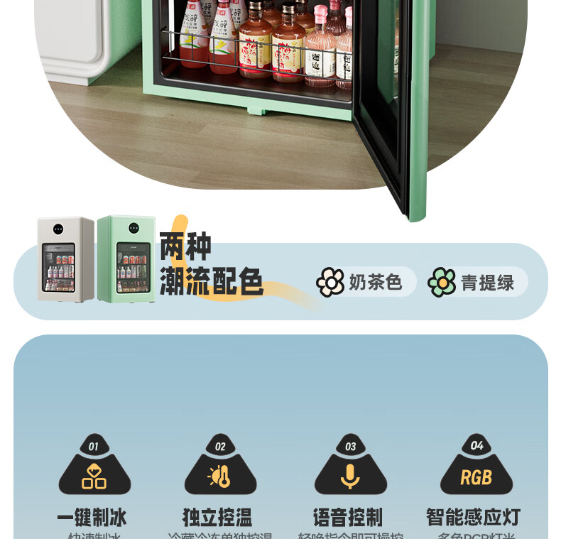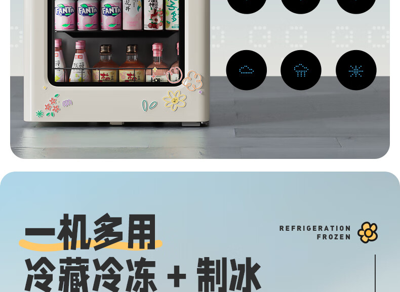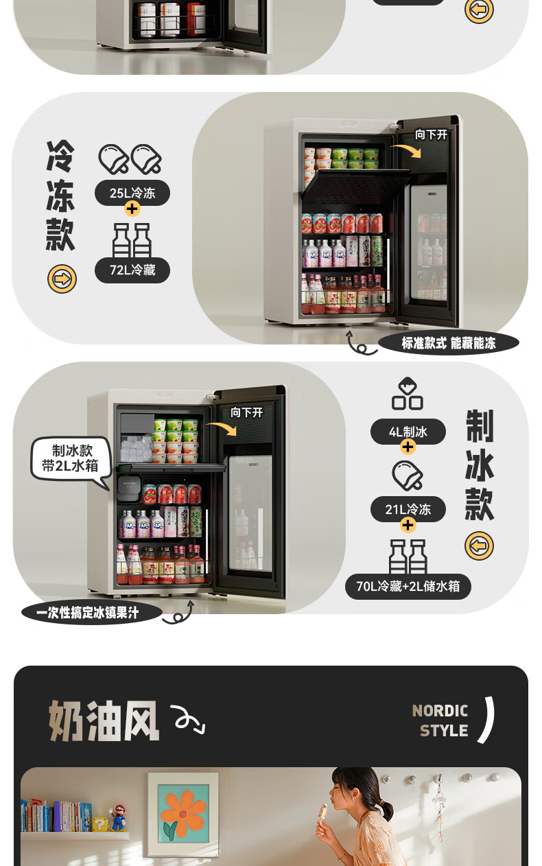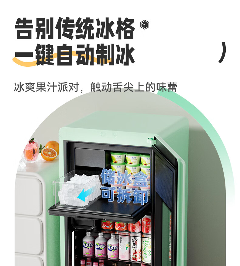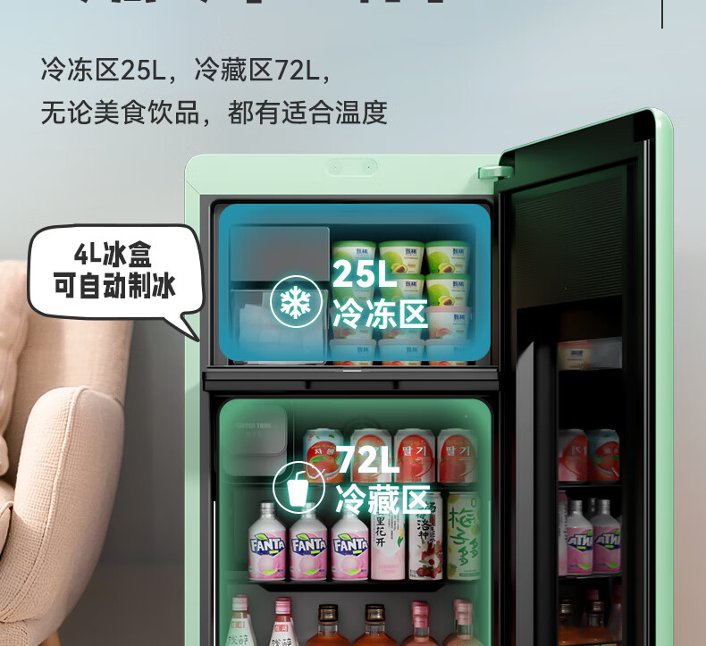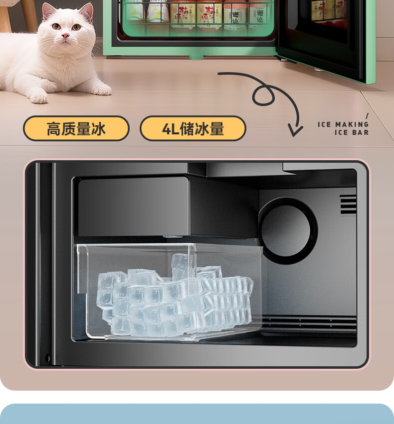 He Jiagong German quality ice bar air-cooled frost-free home living room office e-sports room retro small refrigerator automatic ice making 97max milk tea color