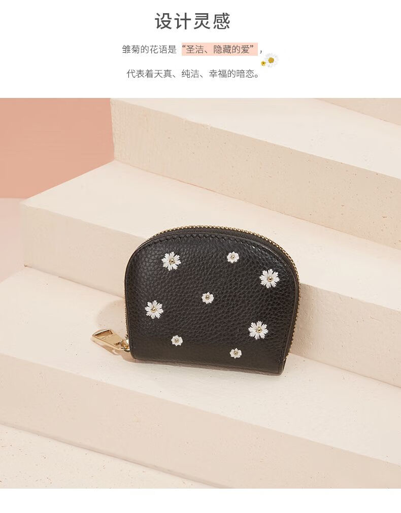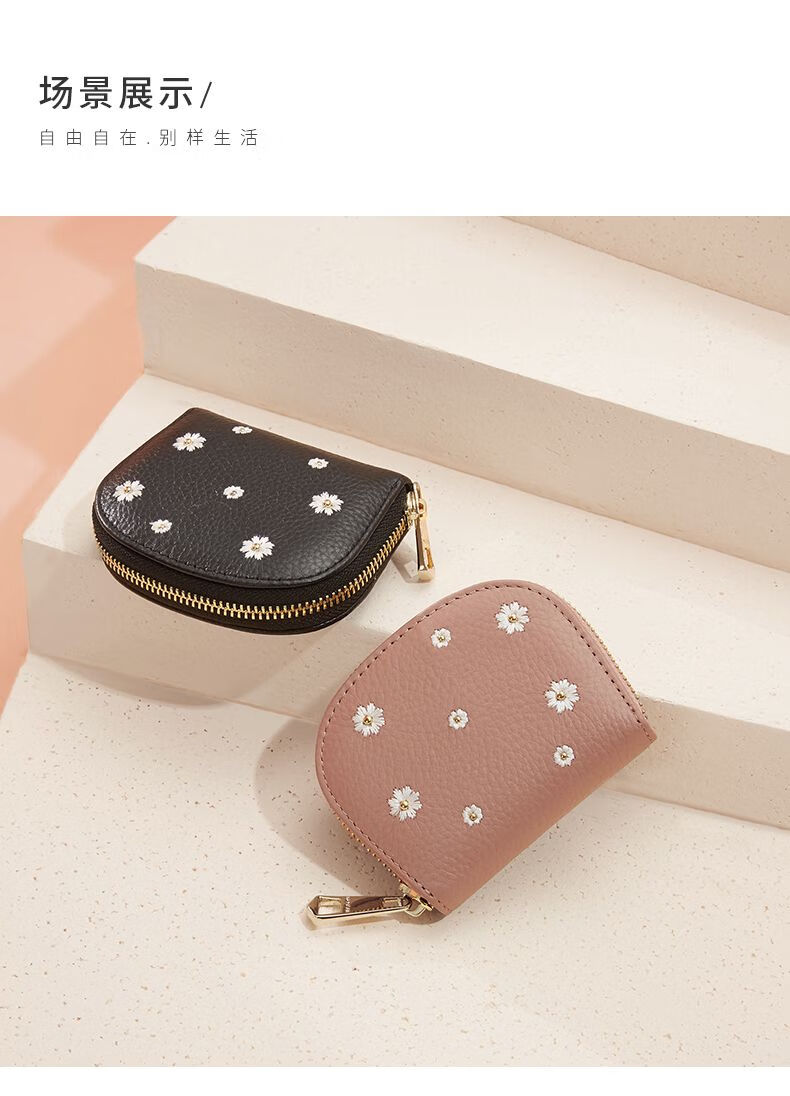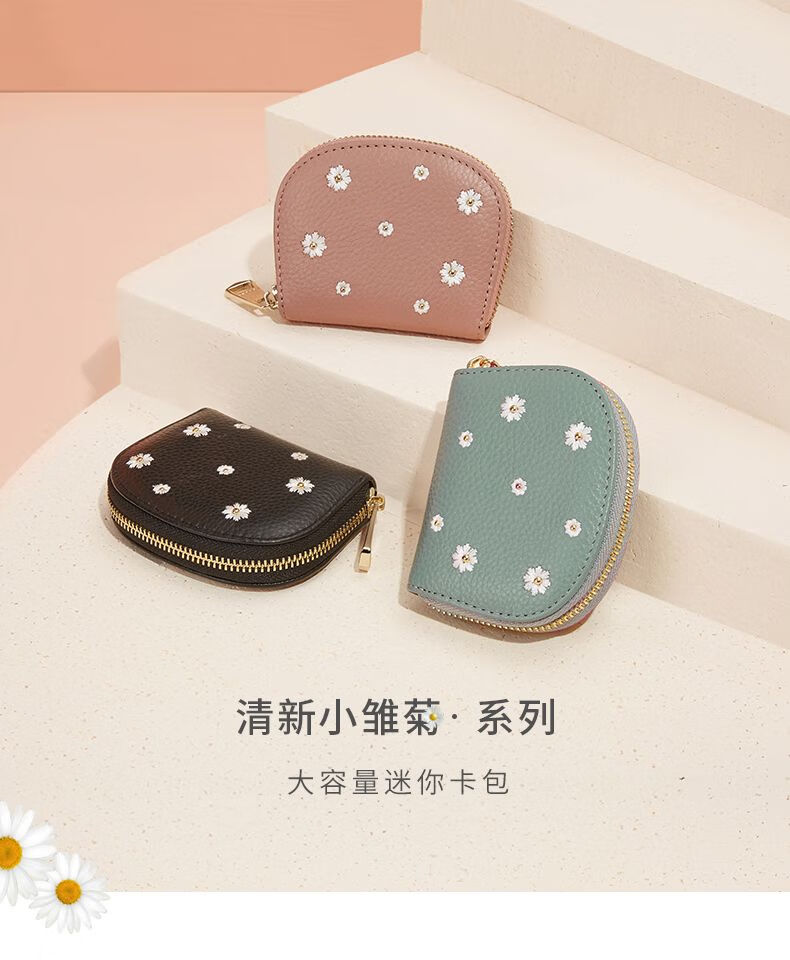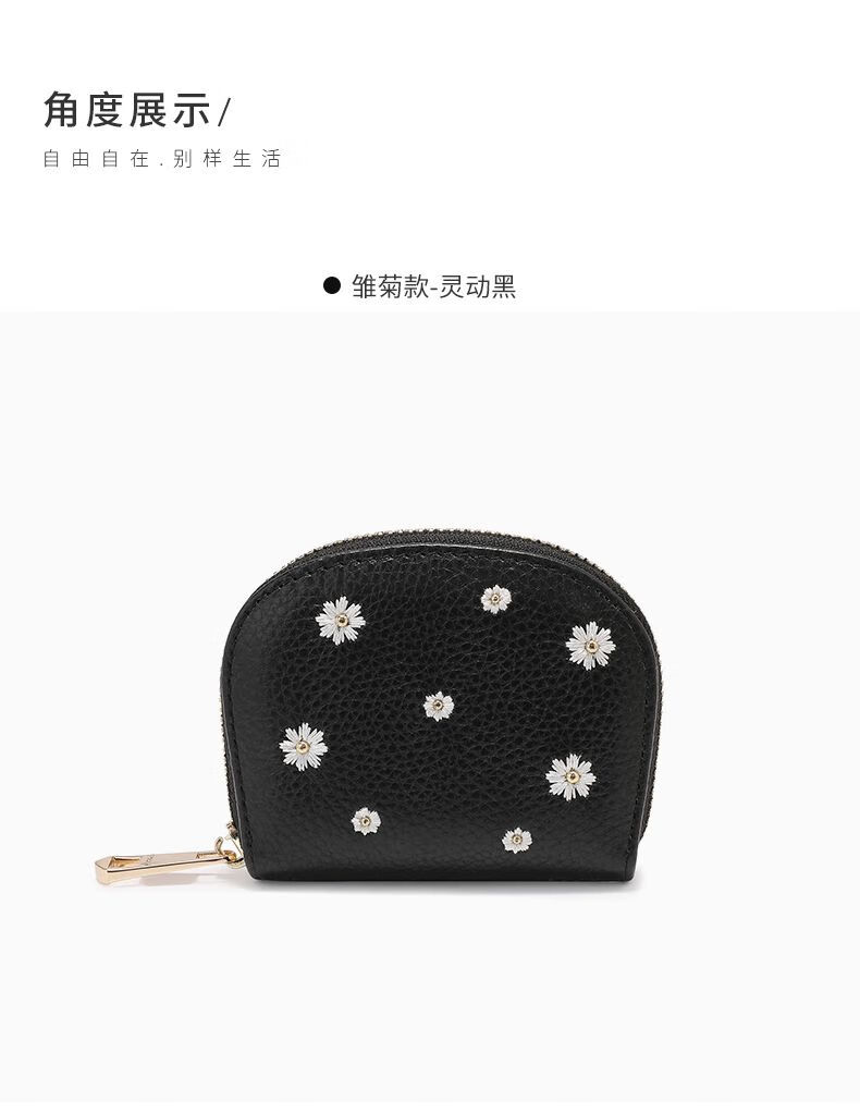 Scarecrow Wallet Women's 2025 New Cute Genuine Leather Multi-Function Card Holder Mini Small Cowhide Short Coin Purse Black-Daisy Style