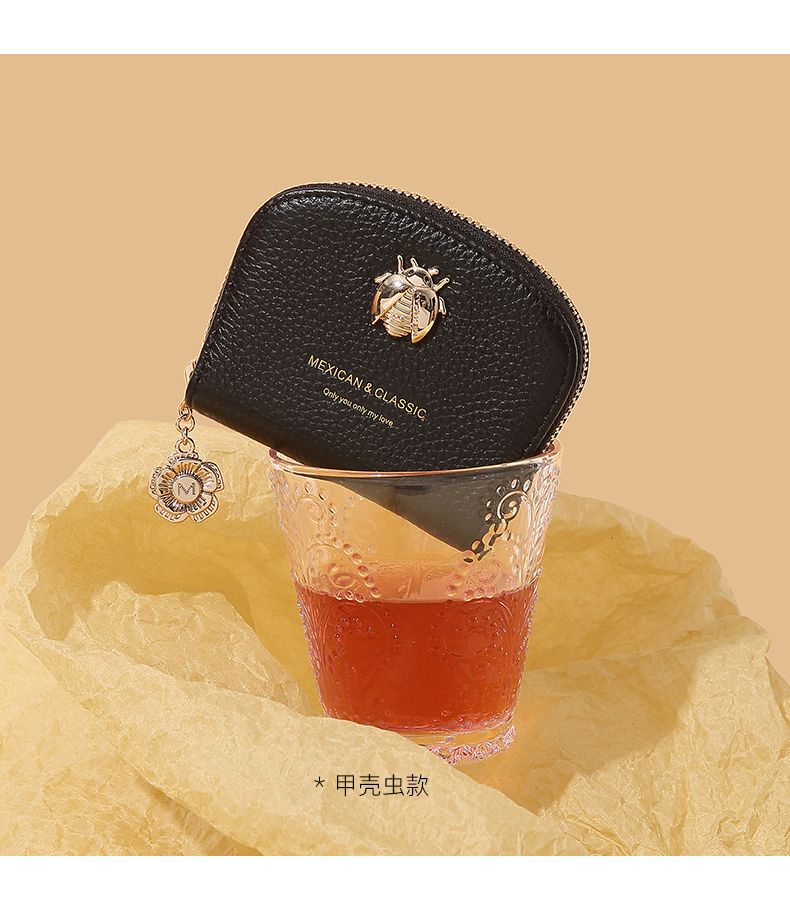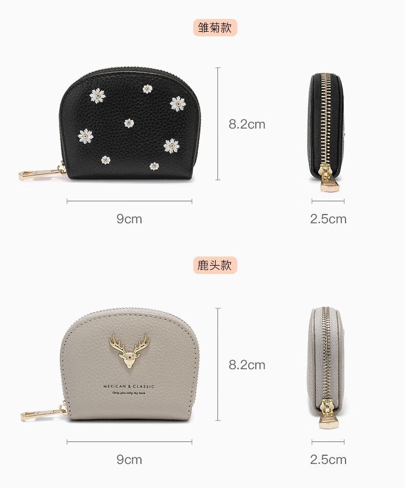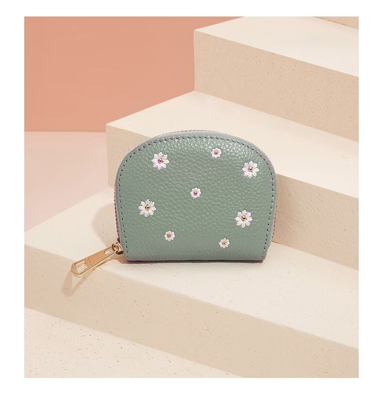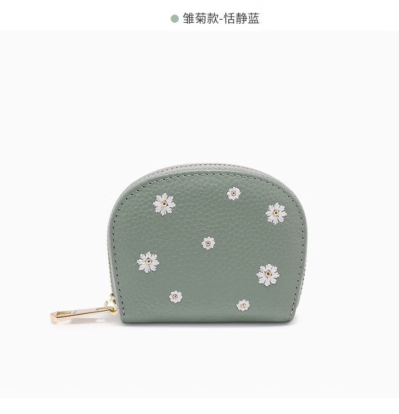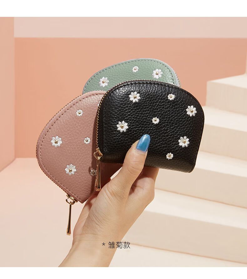 Scarecrow Wallet Women's 2025 New Cute Genuine Leather Multi-Function Card Holder Mini Small Cowhide Short Coin Purse Black-Daisy Style