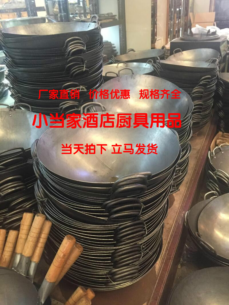 Hong's hand-made thickened 1.3 thick double-ear wok uncoated wrought iron traditional hand-made pot chef's pot commercial iron pot (1.3 thick) 52cm
