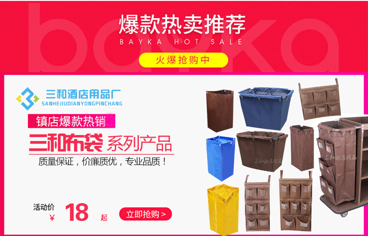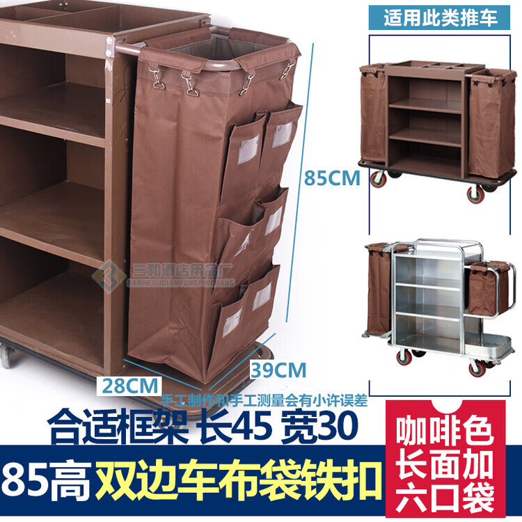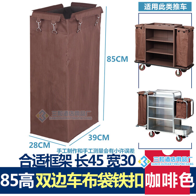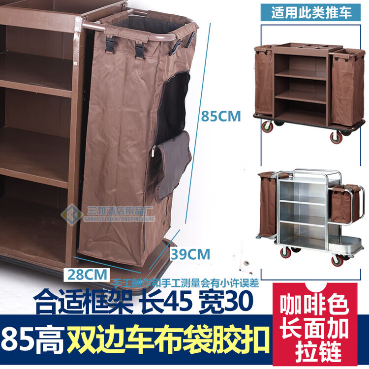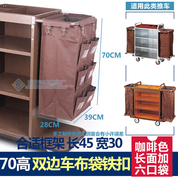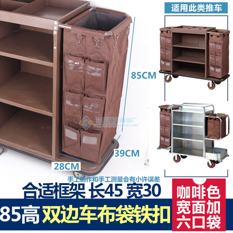 Xinrongda hotel linen cart bag room work cart linen bag cleaning garage door cart bag storage canvas rag bag 50 high double-sided cart bag brown plastic buckle