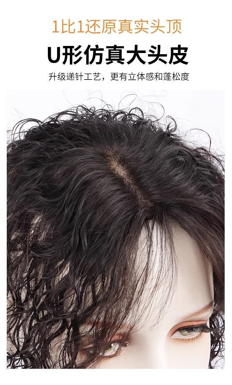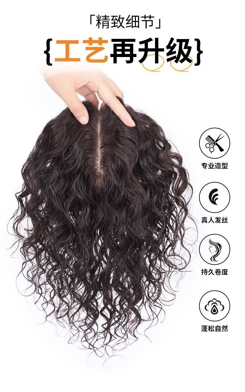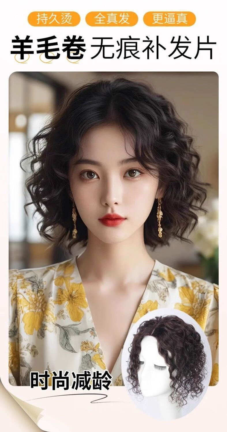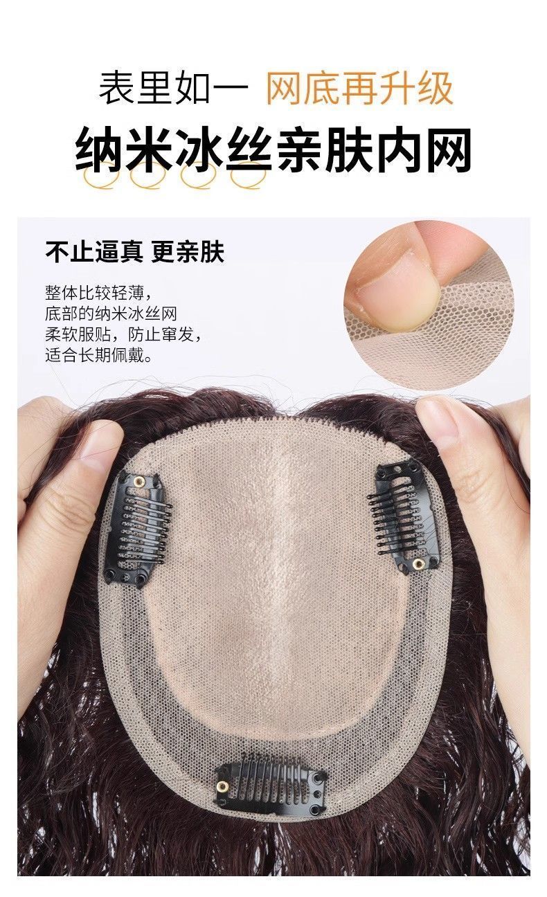 Tangni's top-of-the-head replacement wig for small curly hair, medium-parted wig for women to cover white hair and increase hair volume, fluffy wool curly replacement wig, nano ice mesh 11*13, brown and black 25cm