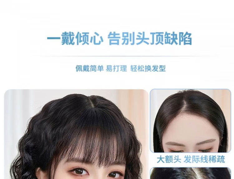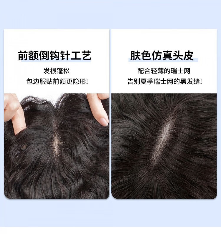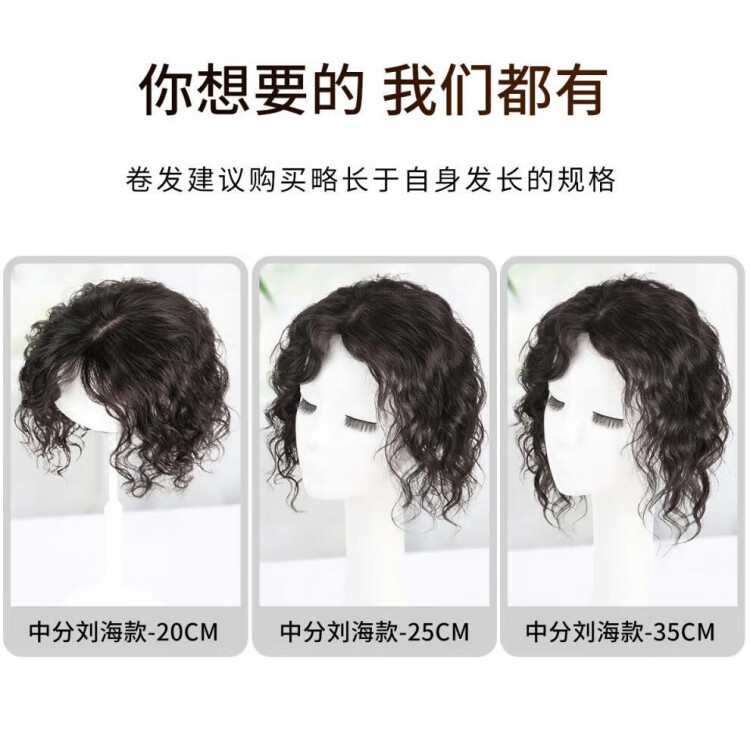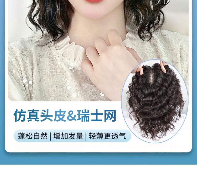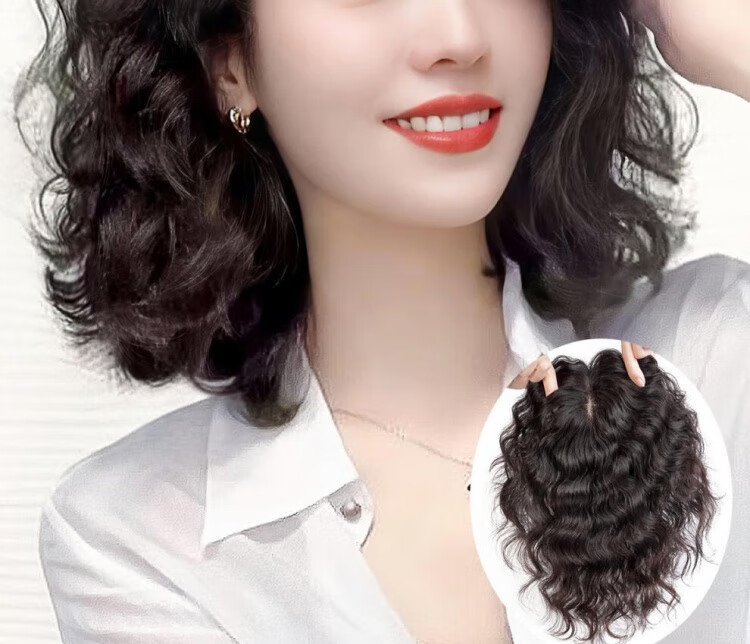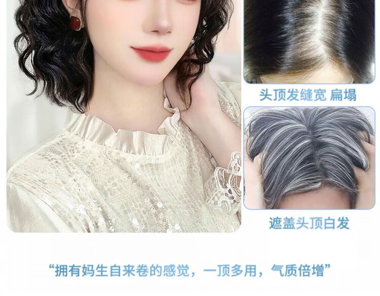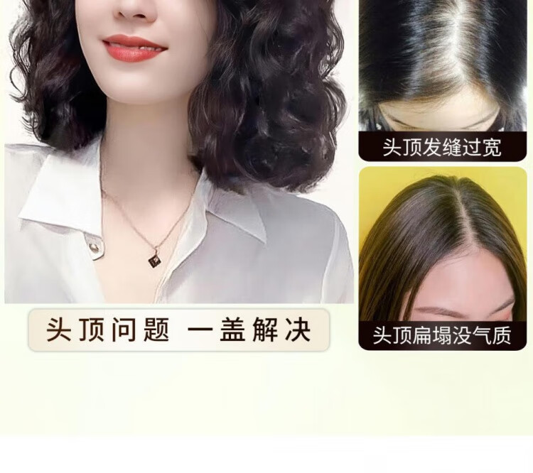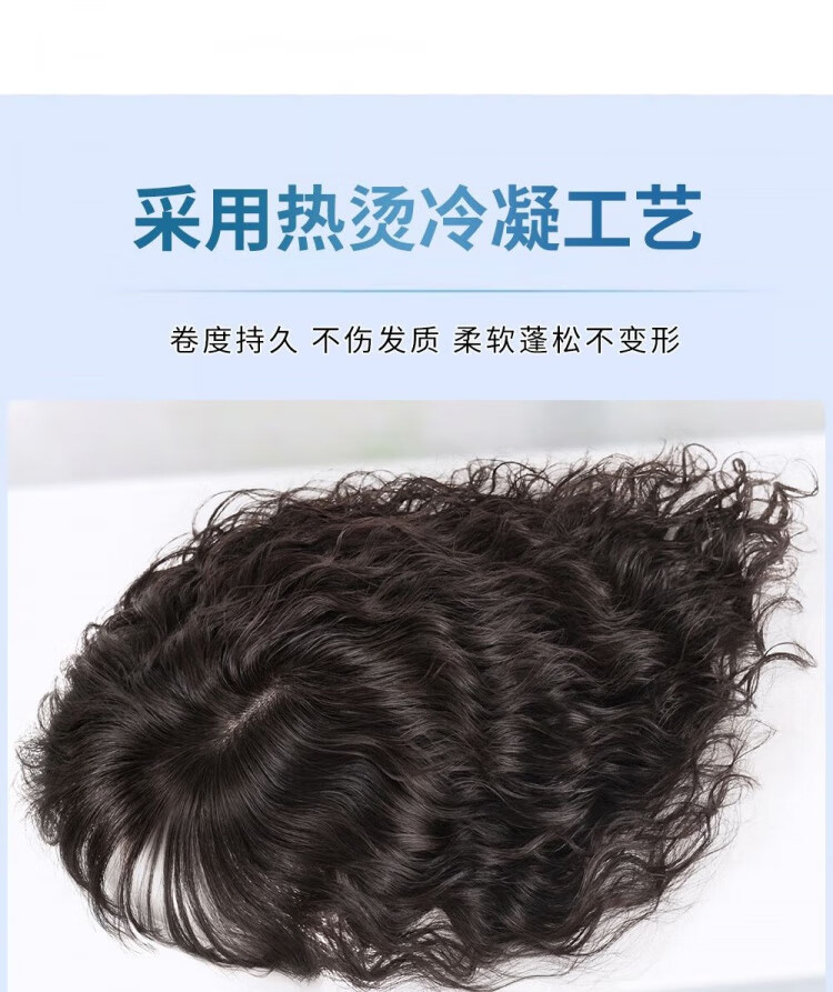 Tangni's top-of-the-head replacement wig for small curly hair, medium-parted wig for women to cover white hair and increase hair volume, fluffy wool curly replacement wig, nano ice mesh 11*13, brown and black 25cm